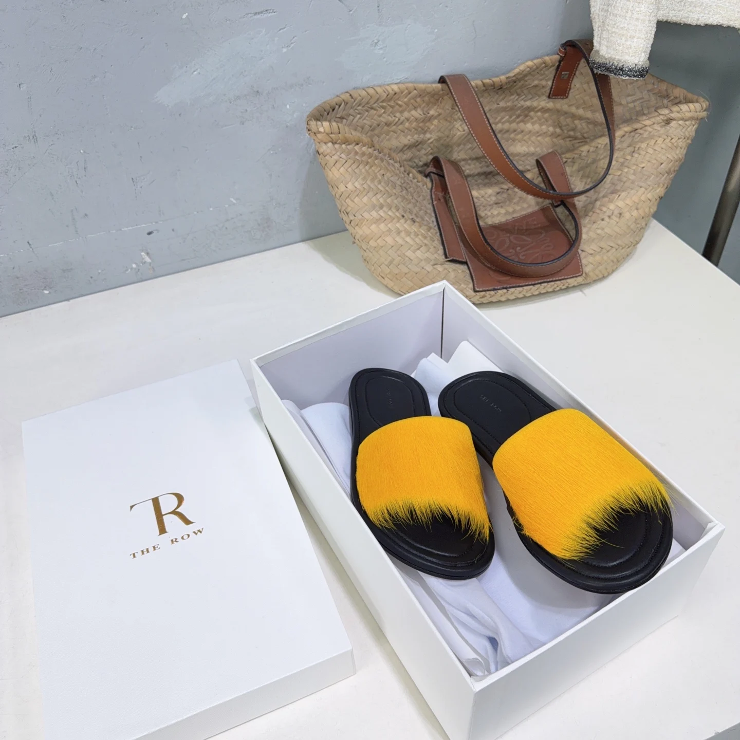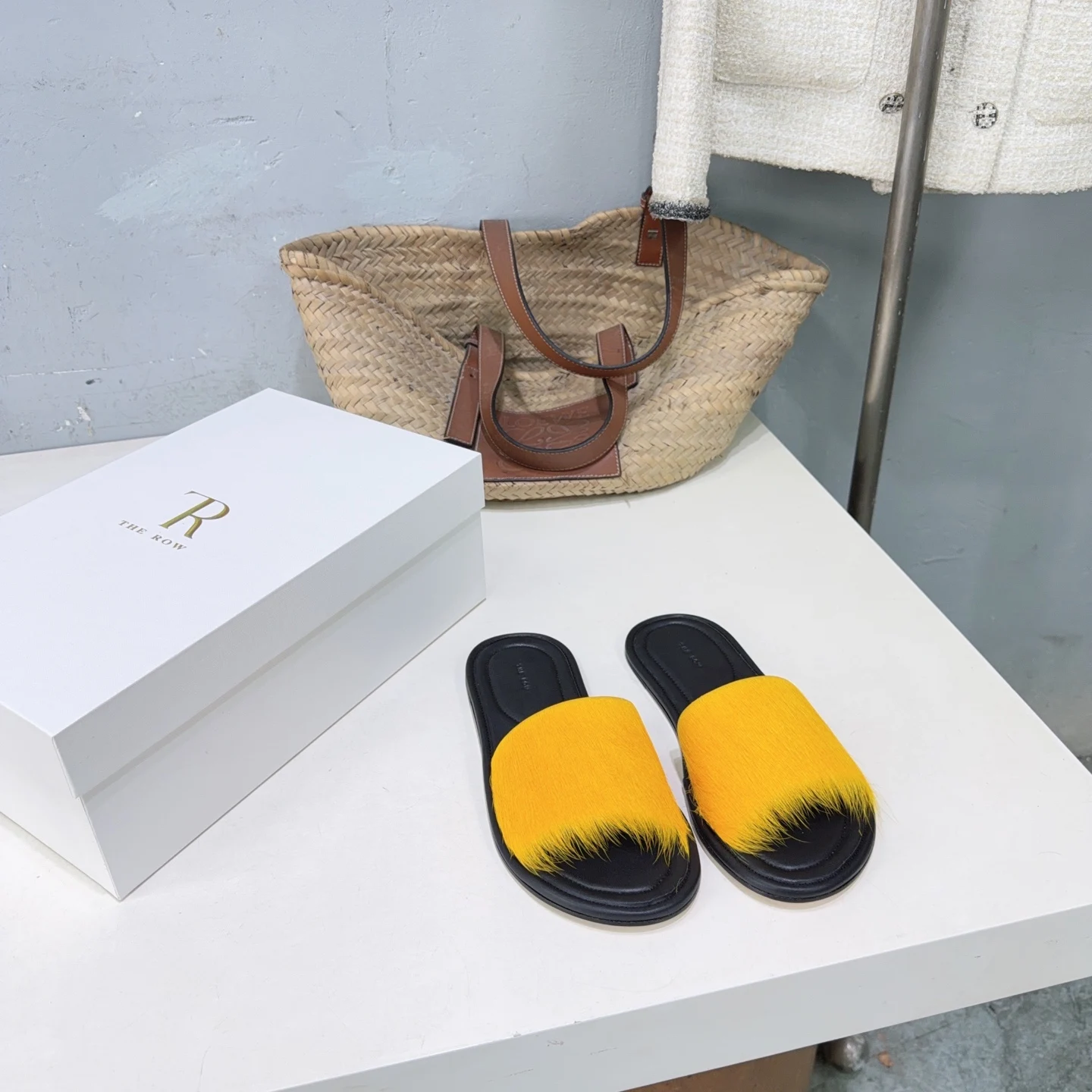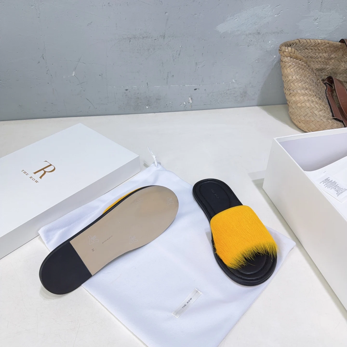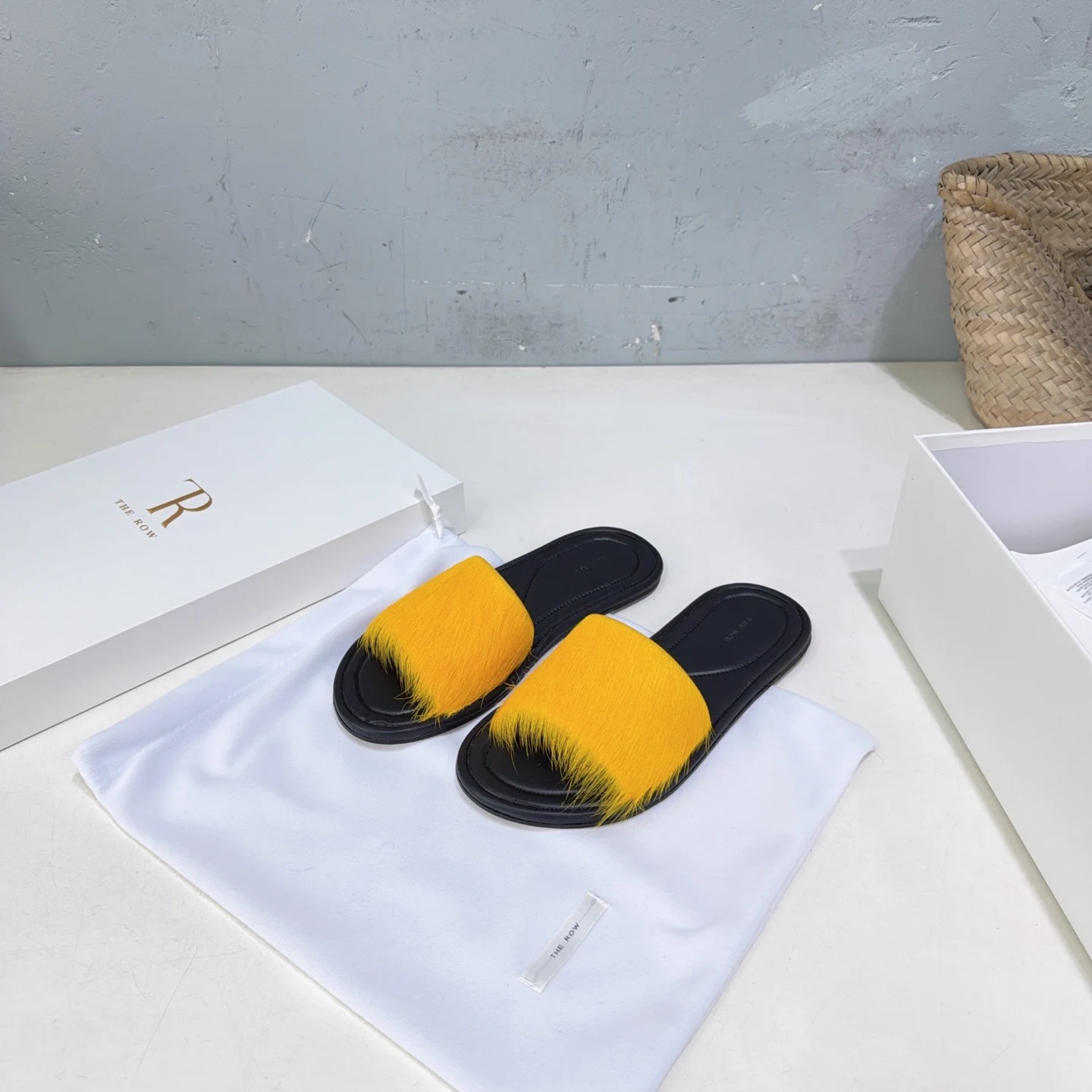The niche trendy brand THE ROW s new spring/summer 2026 collection features simple minimalist mink fur beach flat sandals!