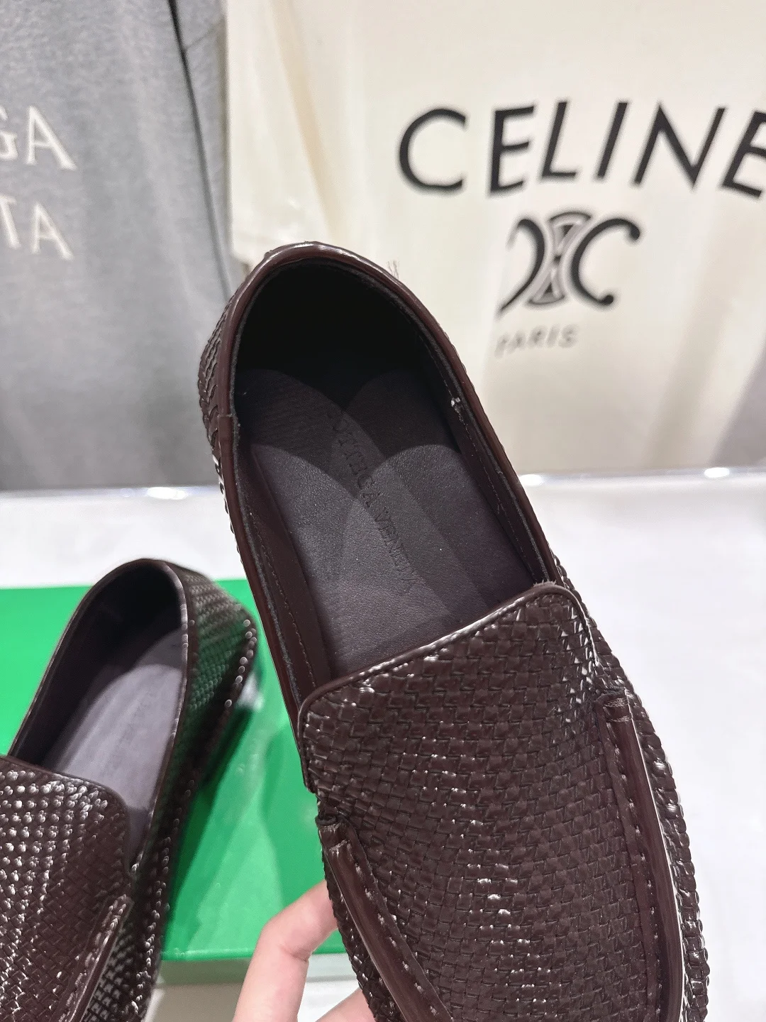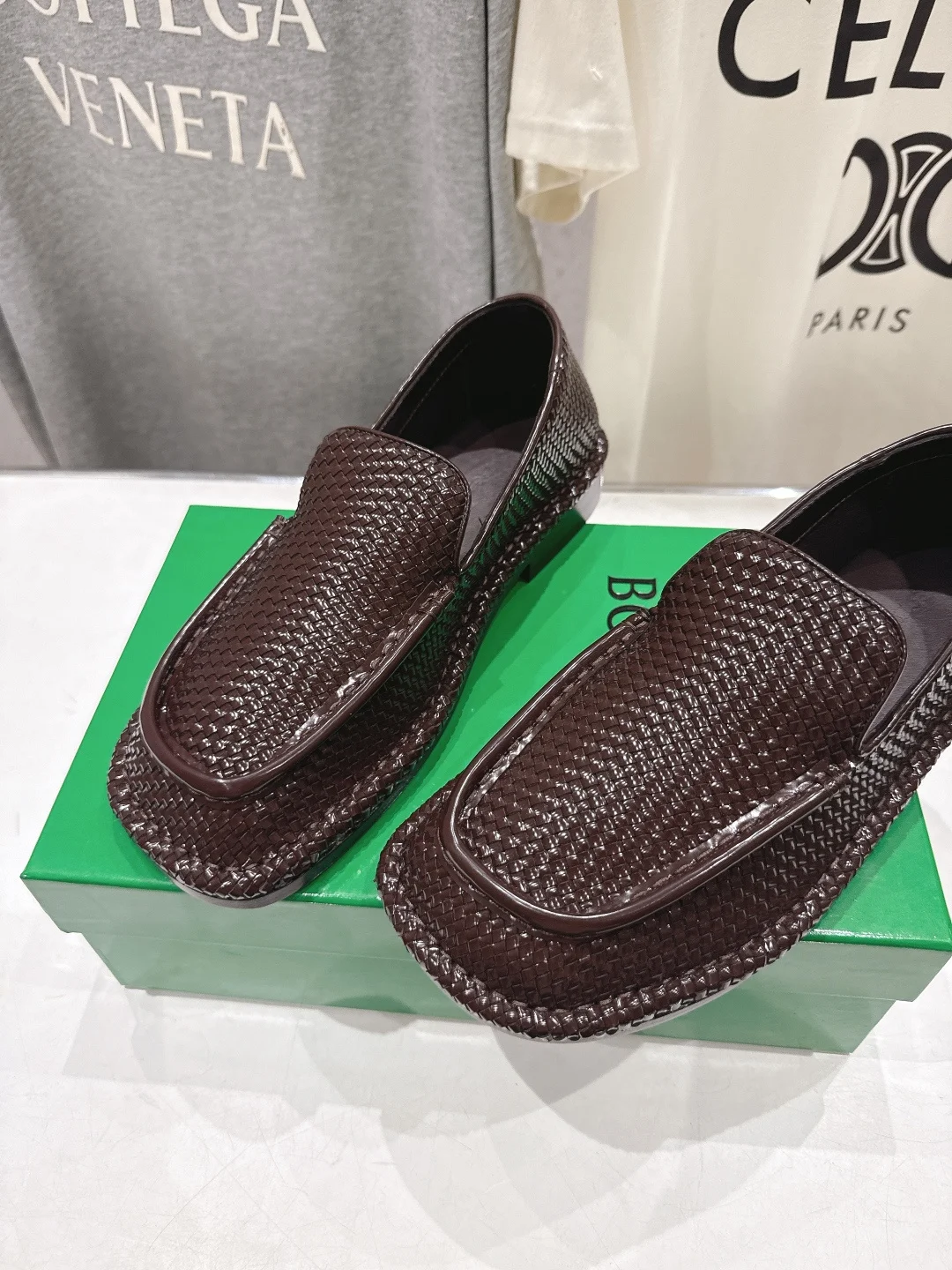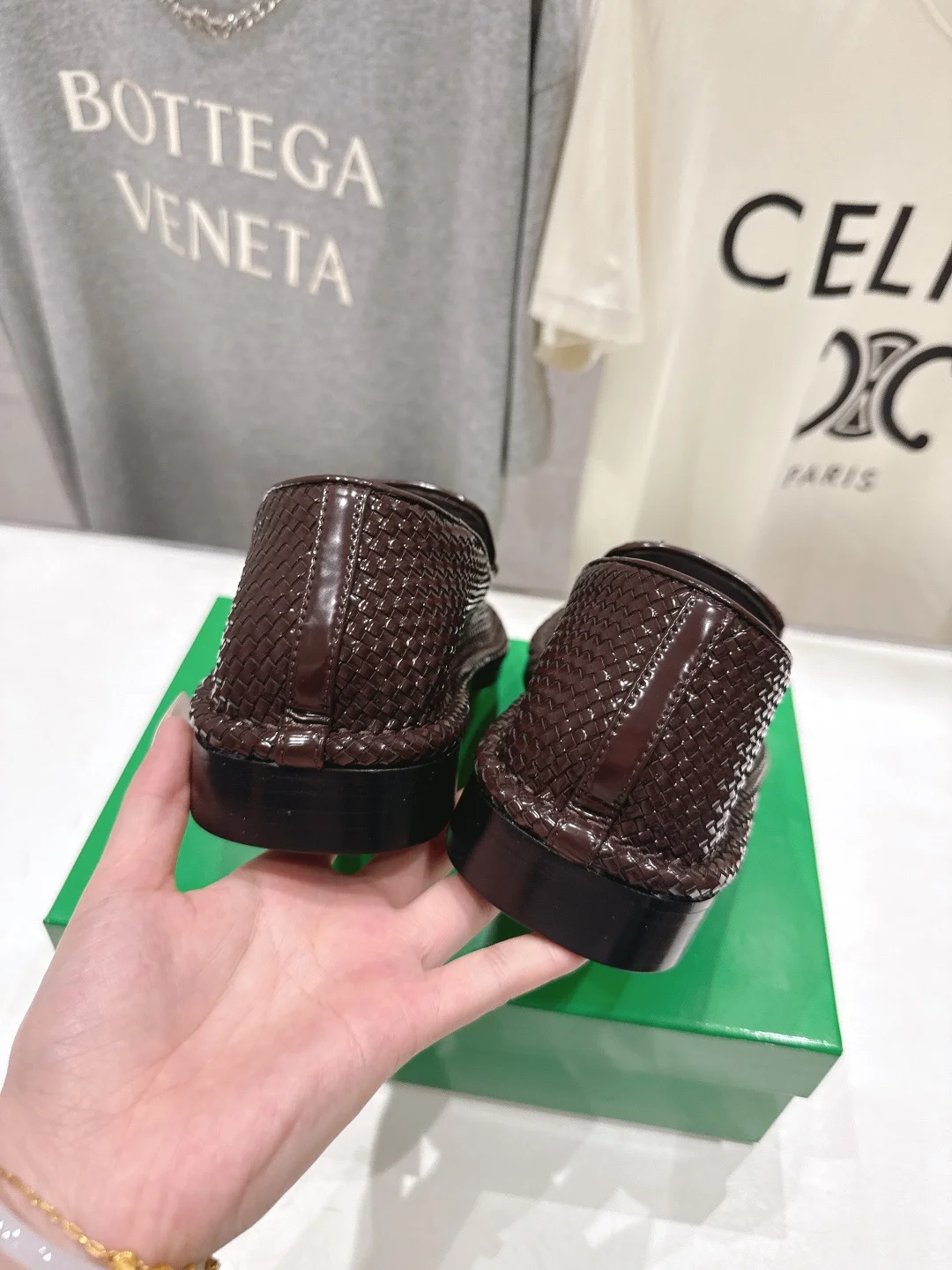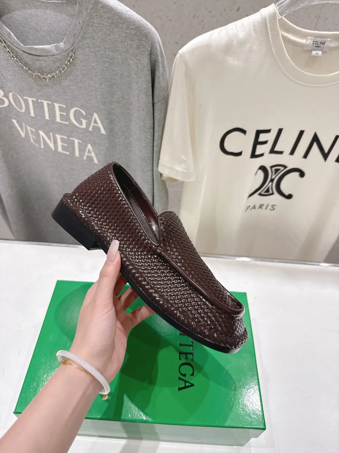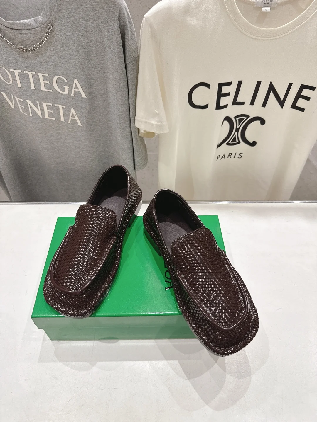 Bottega Veneta/BV F065 2026ss new genuine leather hand-woven Astaire slip-on flat loafers for couples, original one-to-one craftsmanship