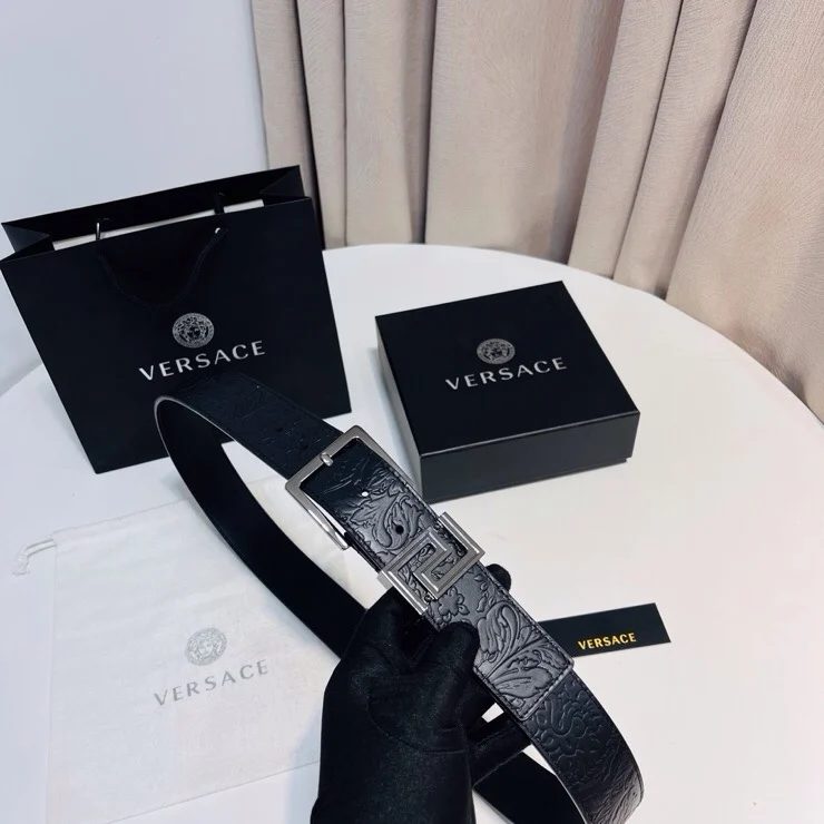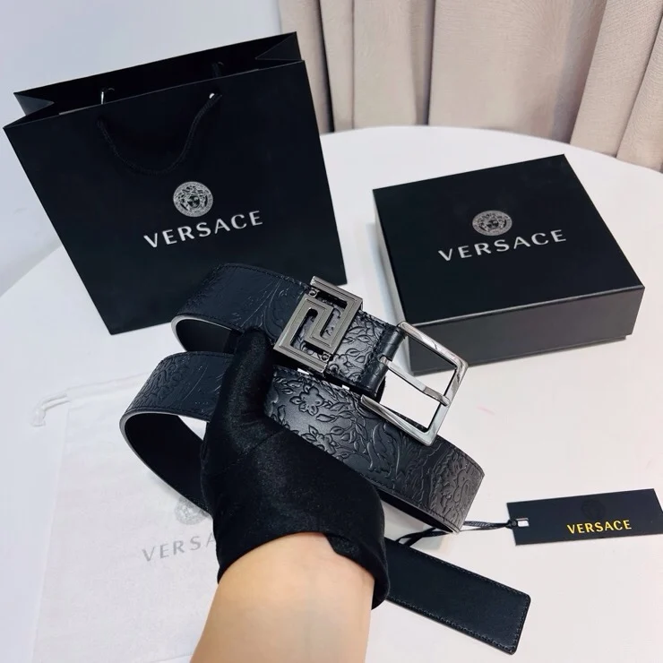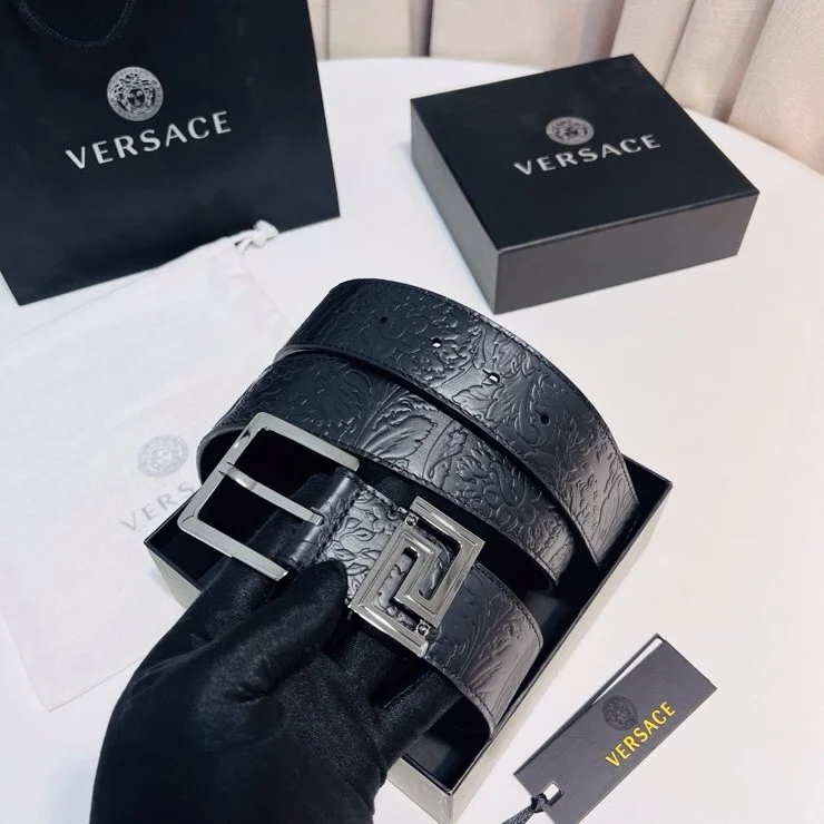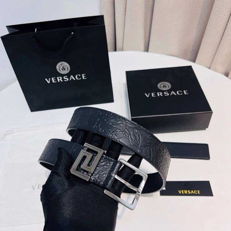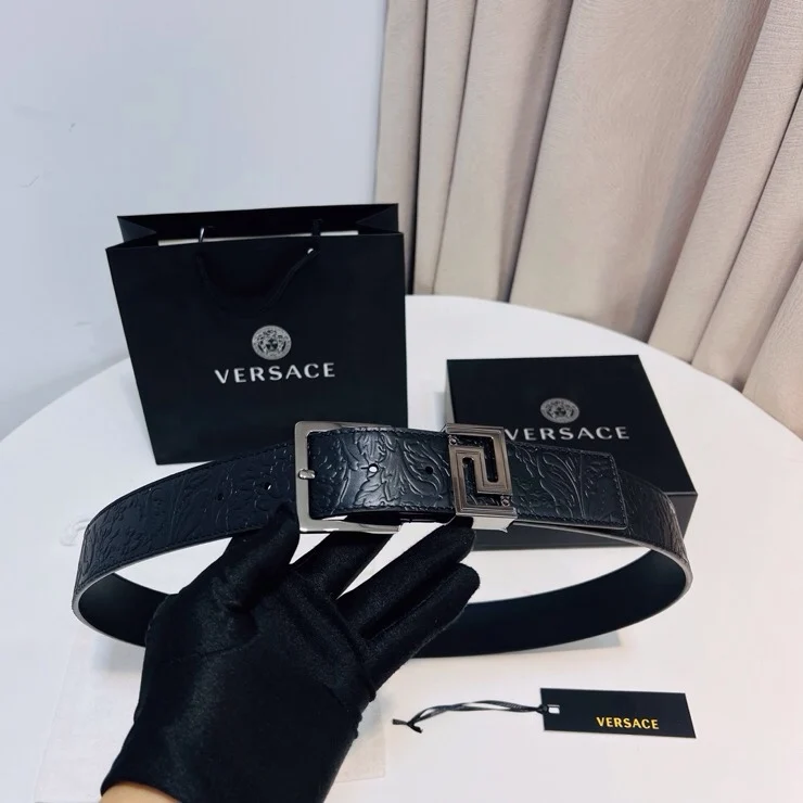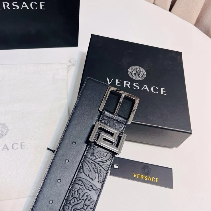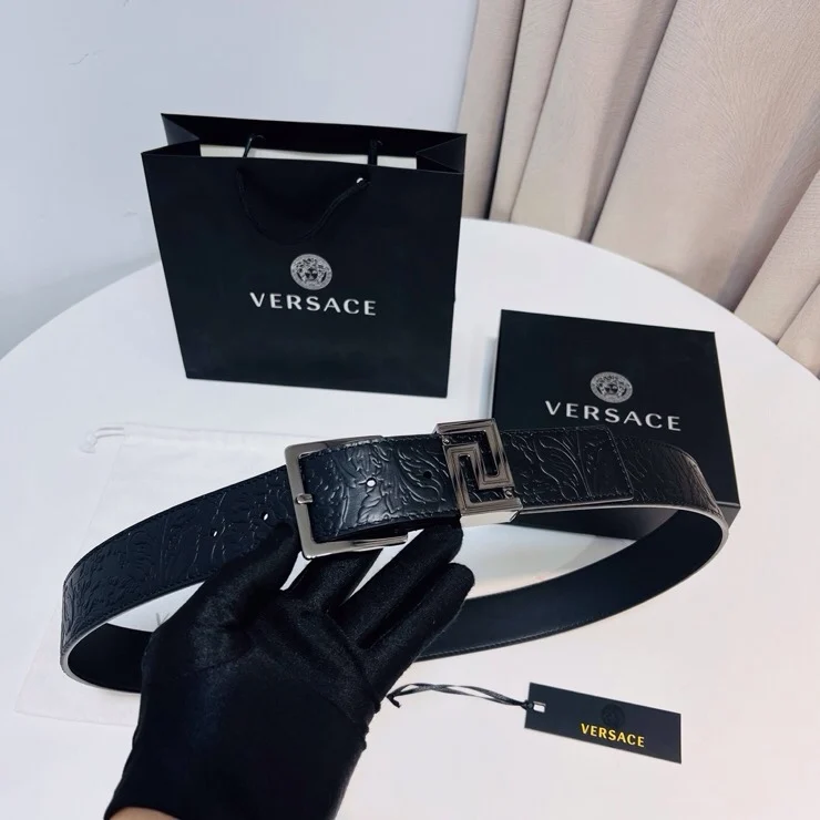 Versace new top layer cowhide belt, adorned with Greca Goddess belt buckle, 4.0cm.