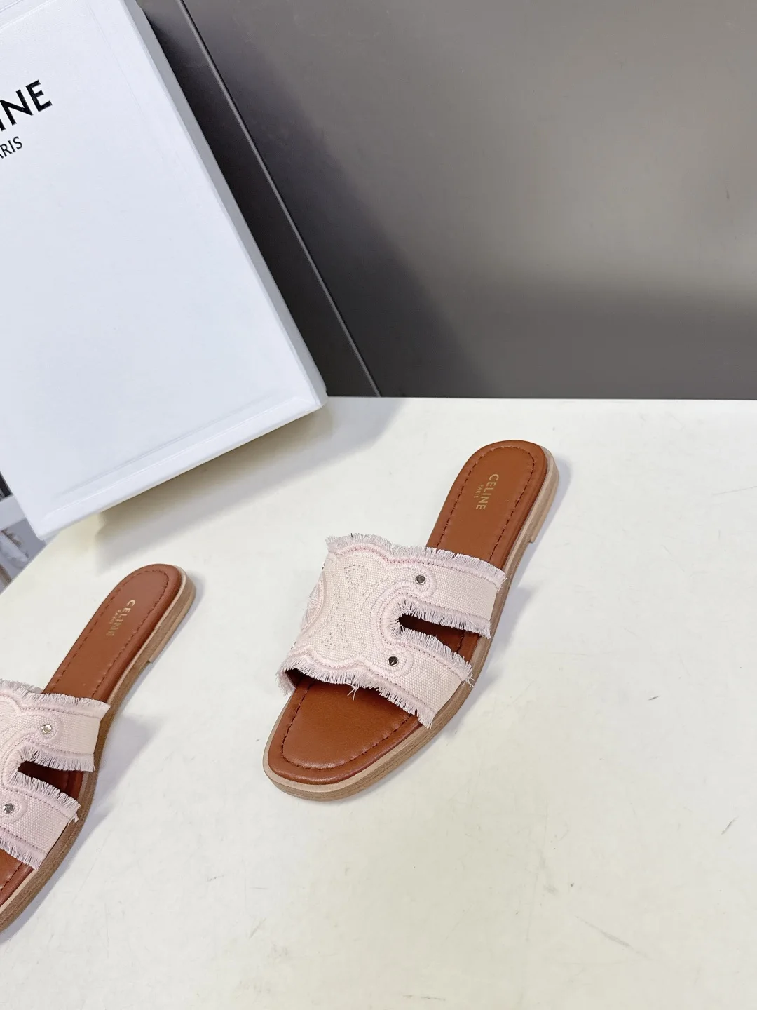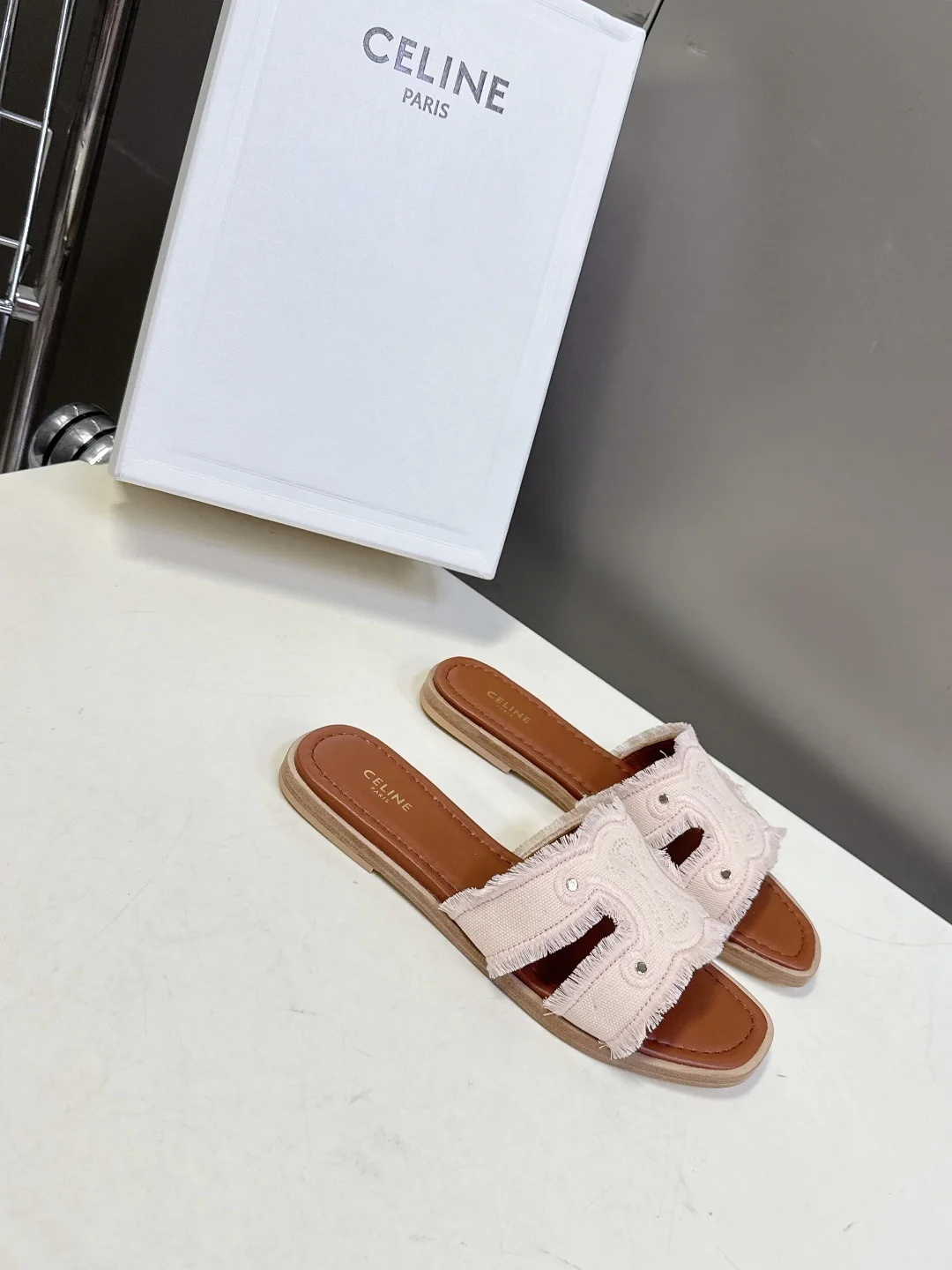 Celine Spring/Summer latest retro Arc de Triomphe fashionable slippers, absolutely original purchase development, still the highest output restoring the original custom washed denim material, inner leather, original mold genuine leather outsole with anti-slip bottom plate Size: 35-40
