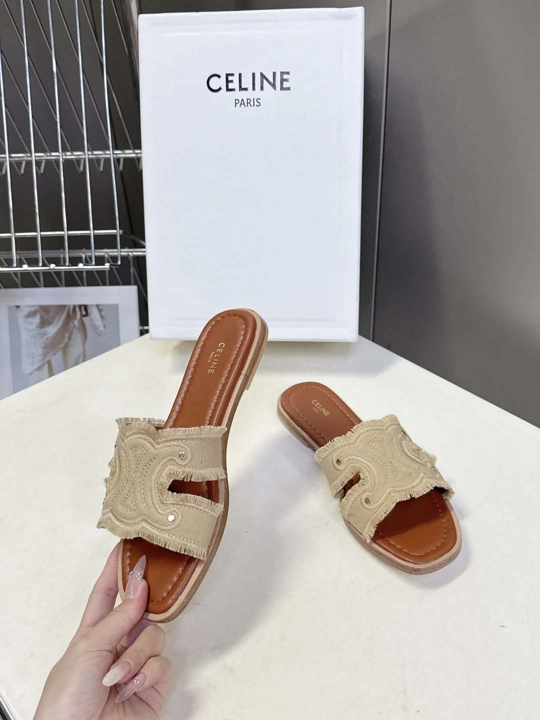 Celine Spring/Summer latest retro Arc de Triomphe fashionable slippers, absolutely original purchase development, still the highest output restoring the original customized washed..