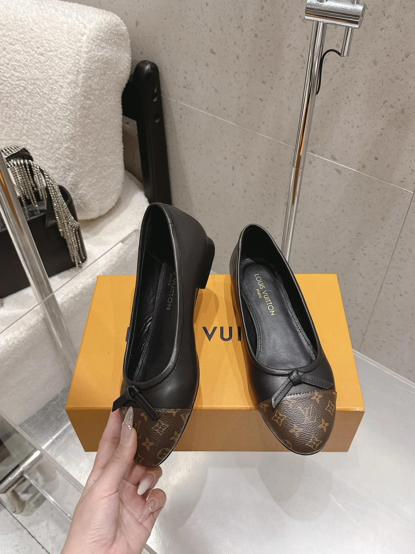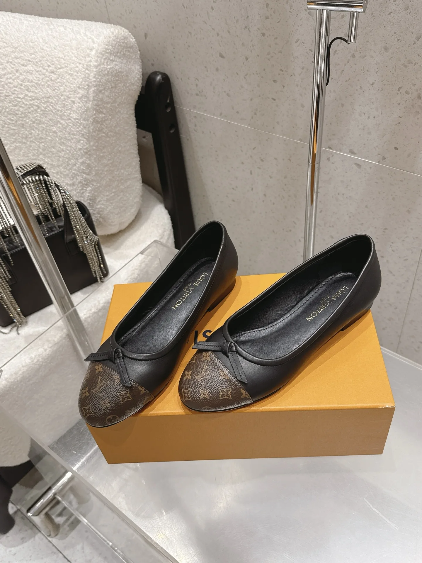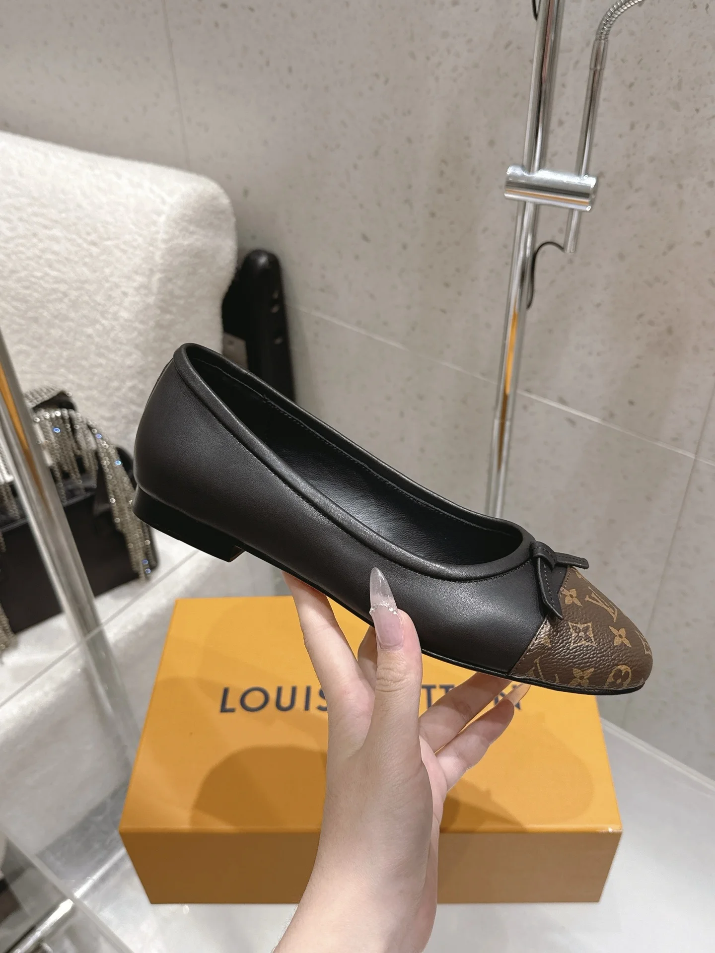 Louis Vuitton Old flower ballet shoes with bow color-blocking flat women s shoes