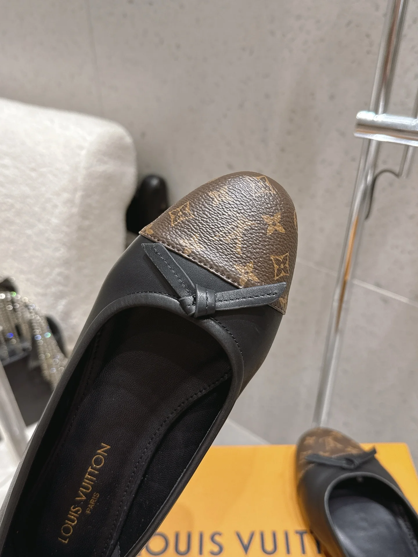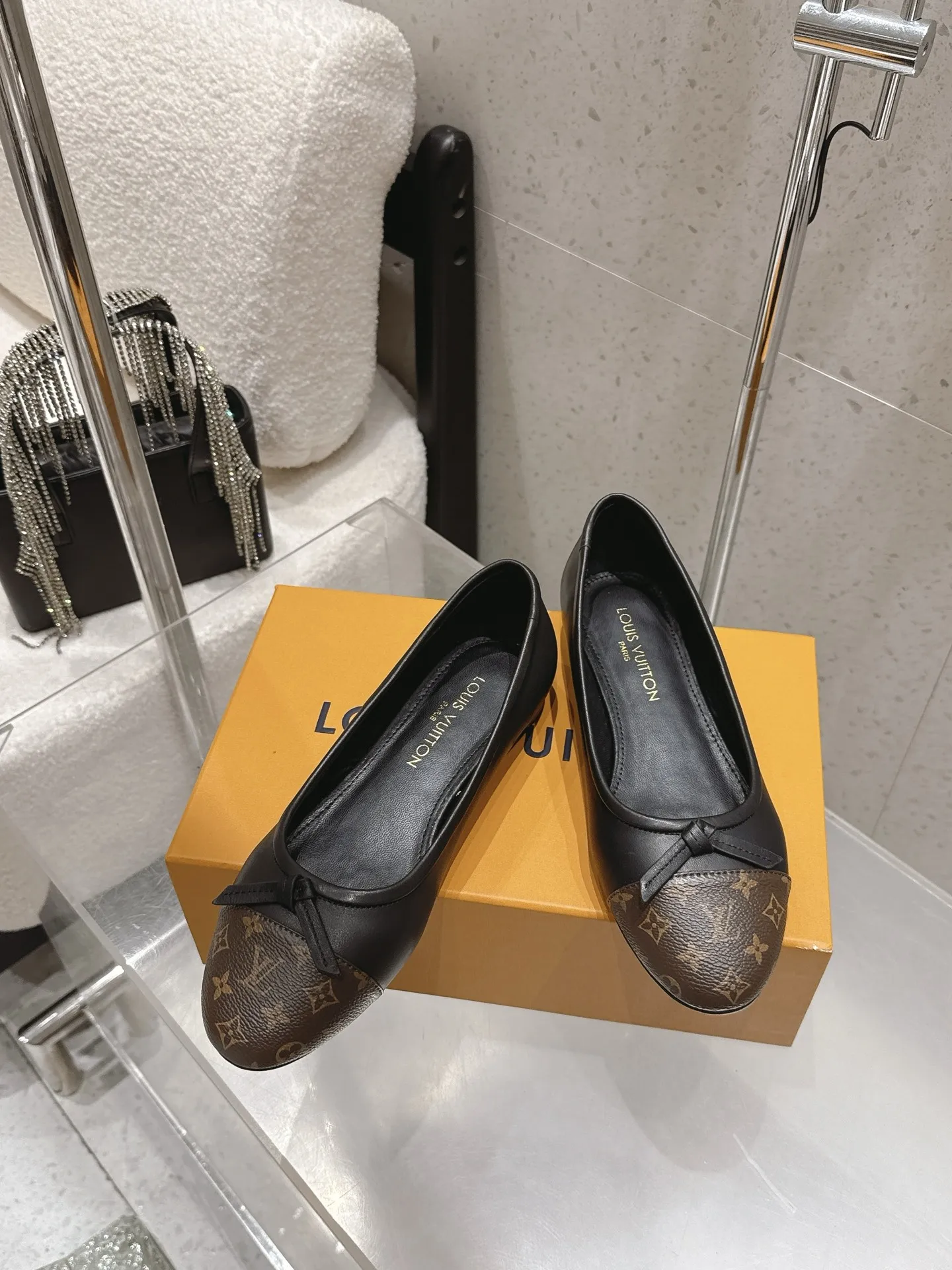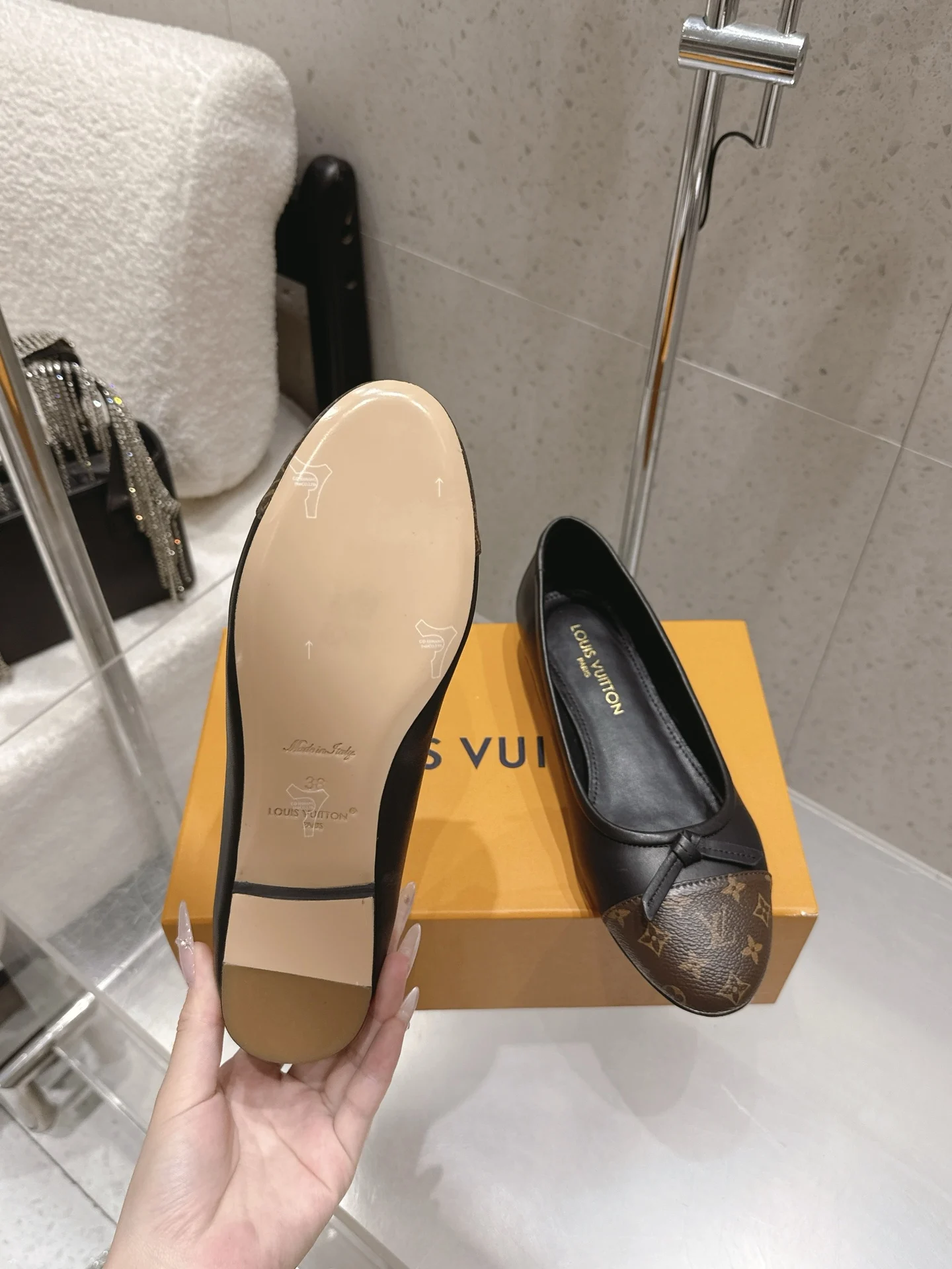 Louis Vuitton Old flower ballet shoes with bow color-blocking flat women s shoes