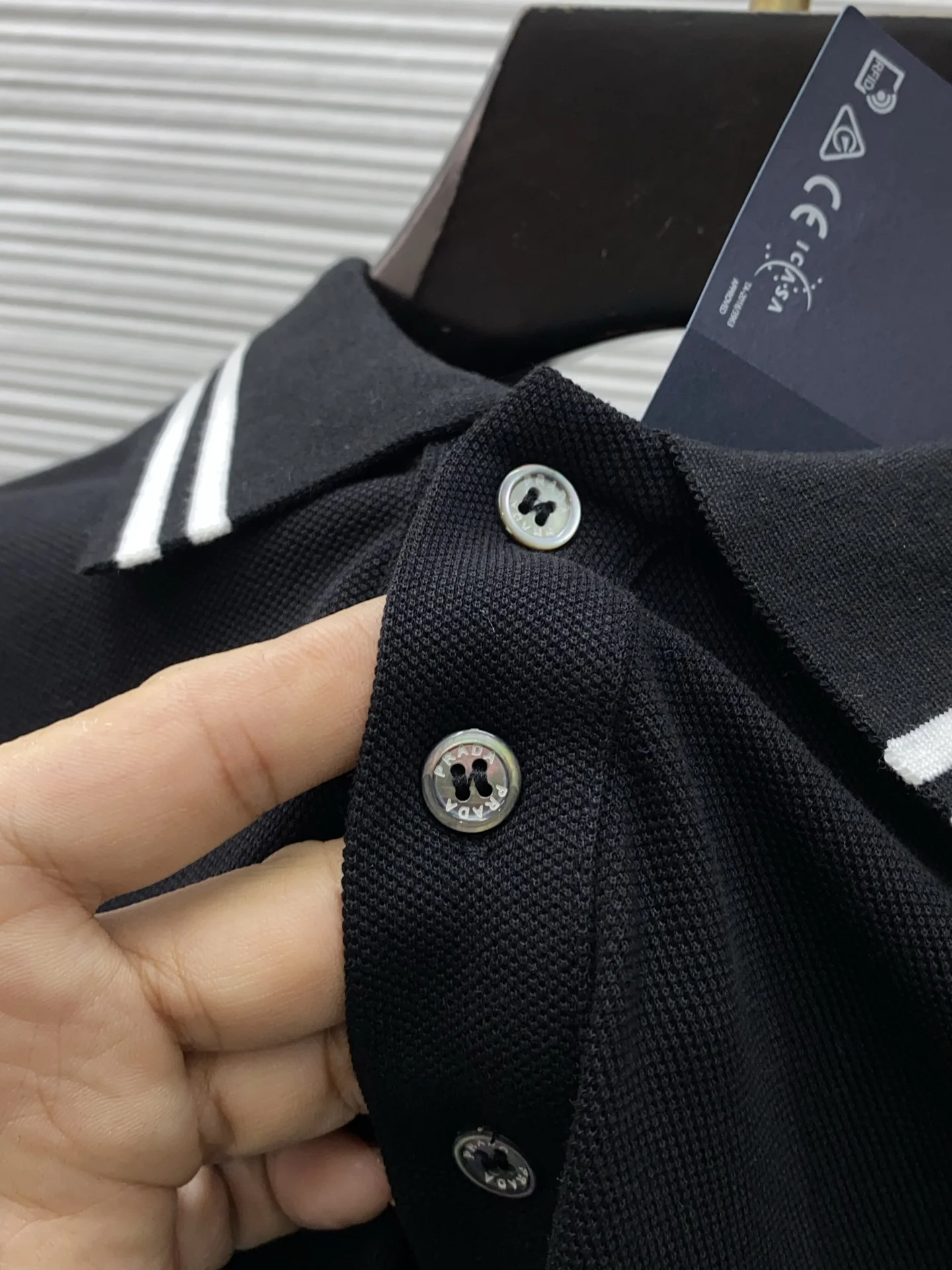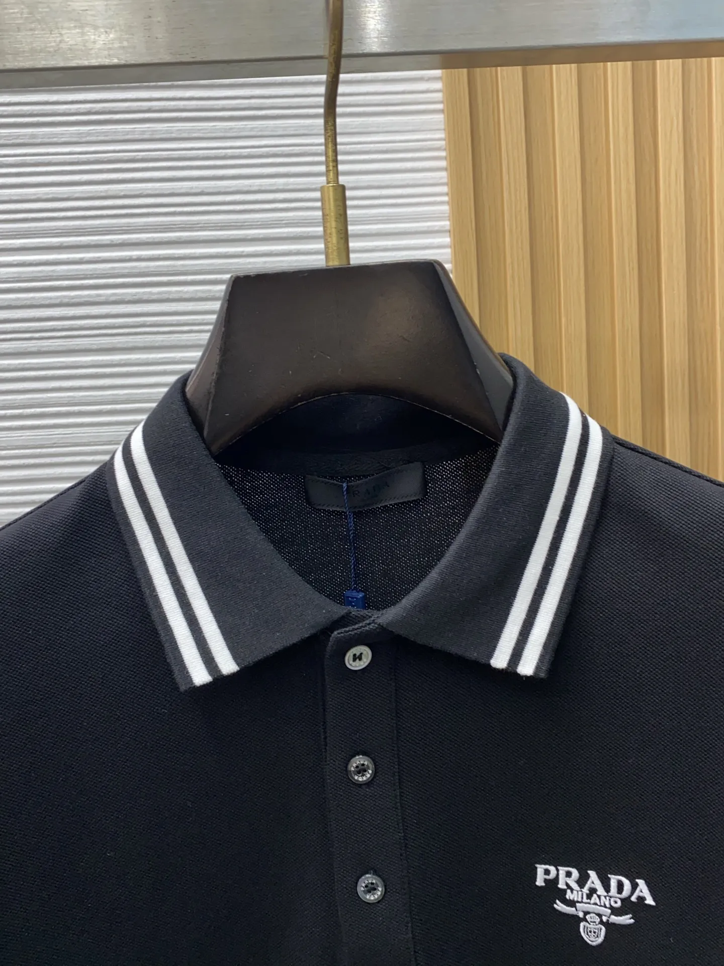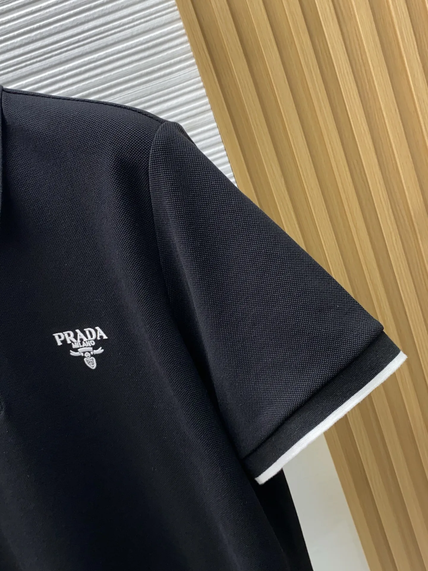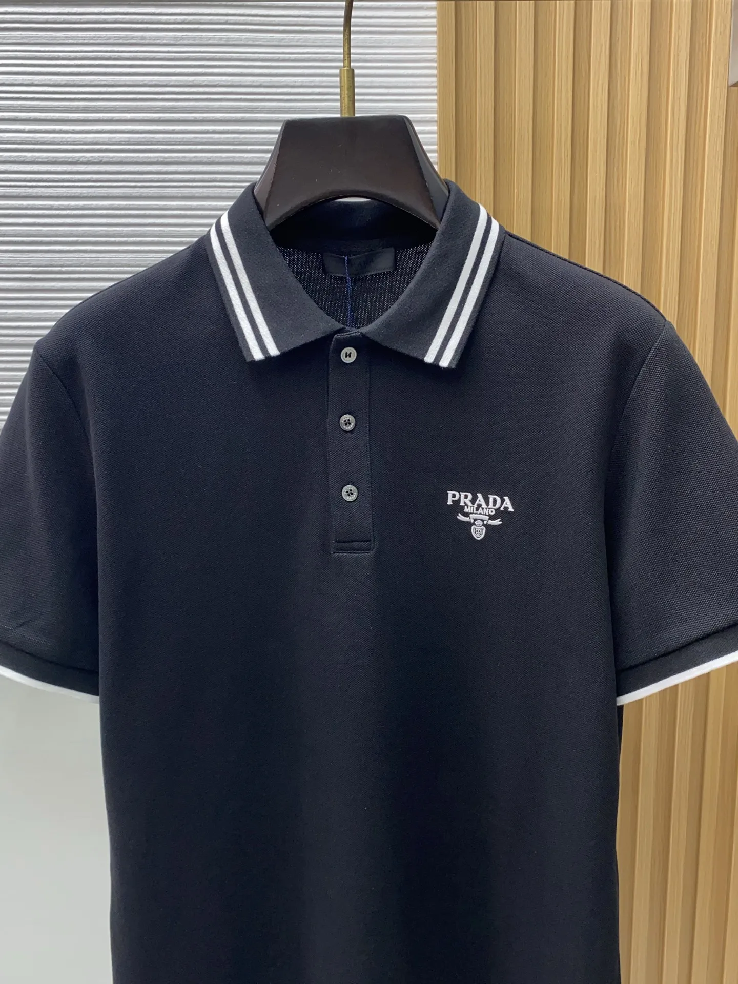 Prada 2026s classic fashion collar scissor collar guest Polo shirt short sleeve, trade company channel order, simple and atmospheric, fashionable and versatile, with impeccable appearance! Made of guest-supplied imported custom-woven pure cotton pique fabric, soft, structured, breathable, and comfortable. It drapes well on the body, is not easily deformed, and is less prone to fading! The clean and fresh basic Polo shirt style, with a small yet structured pointed collar, is stylish and fashionable, perfectly combining casual and business! Fashionable and versatile! M-3xL (model is 173 cm, 143 lbs wearing size L)