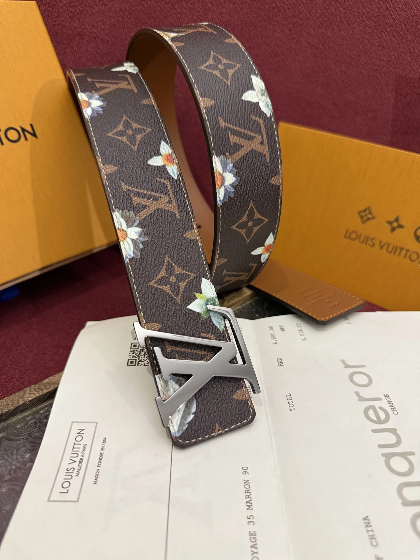 The LV Initiales Monogram Flower reversible belt features a Monogram print and contrasting floral design on one side, while flipping it reveals an elegant plain leather surface. T..