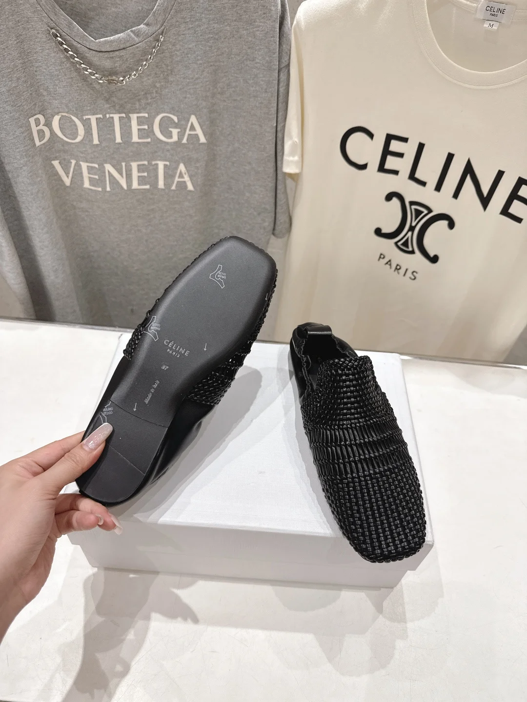 CELINE* F035 2026ss New Style Mary Jane Retro Woven Casual Loafers Flat Shoes