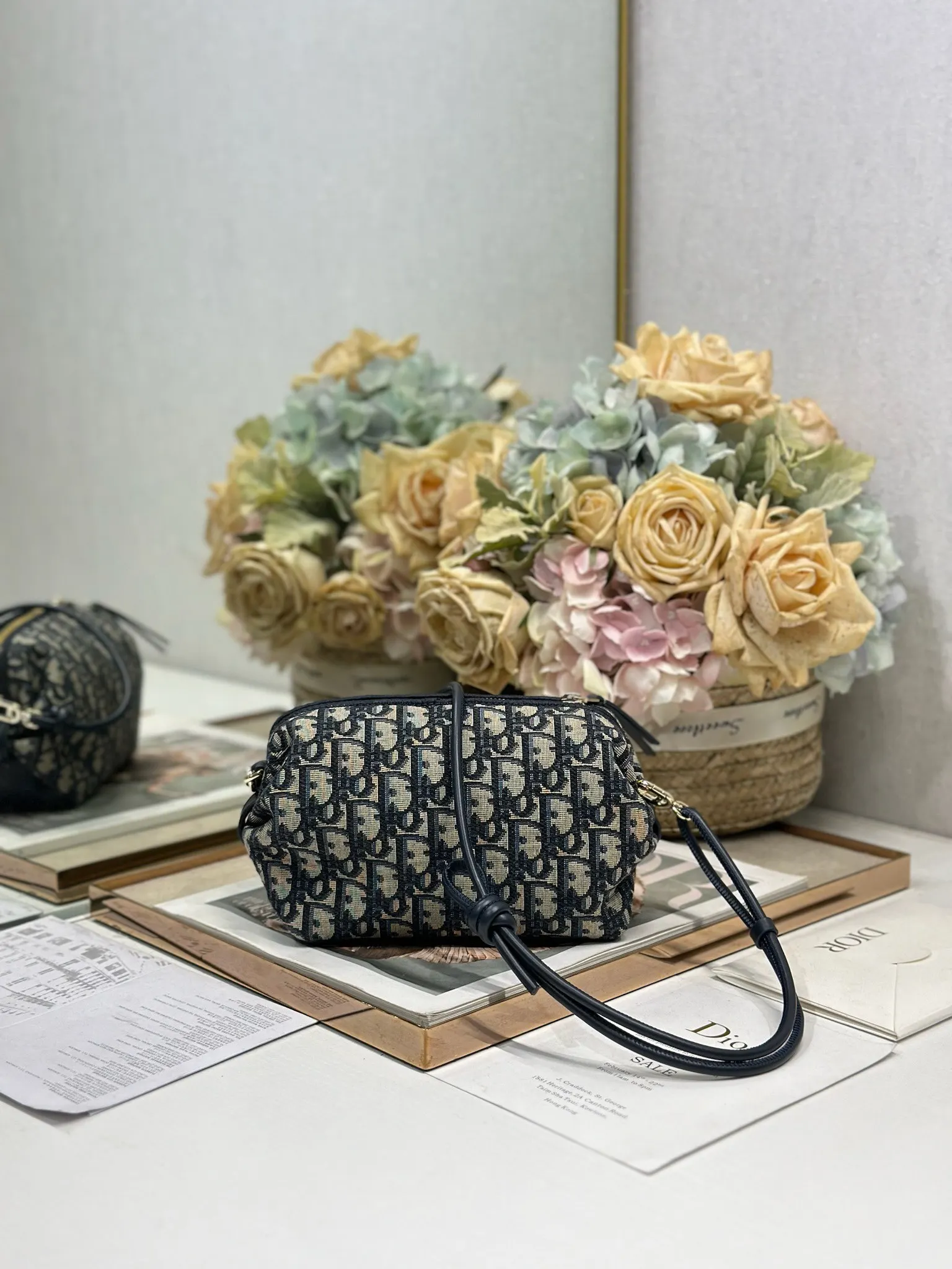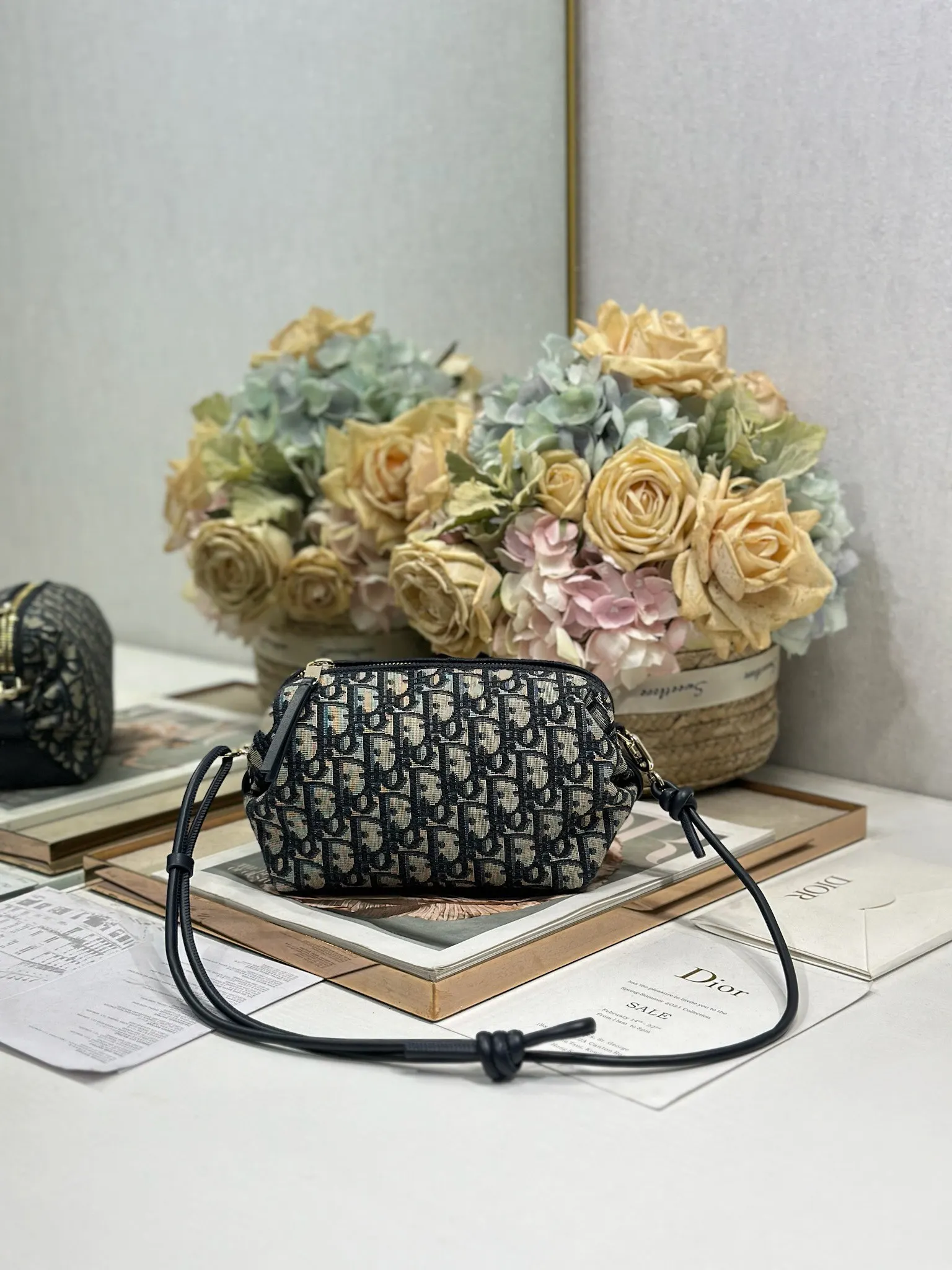 Dior S3900 Blue Canvas and Leather Clutch Bag Women s Crossbody Bag