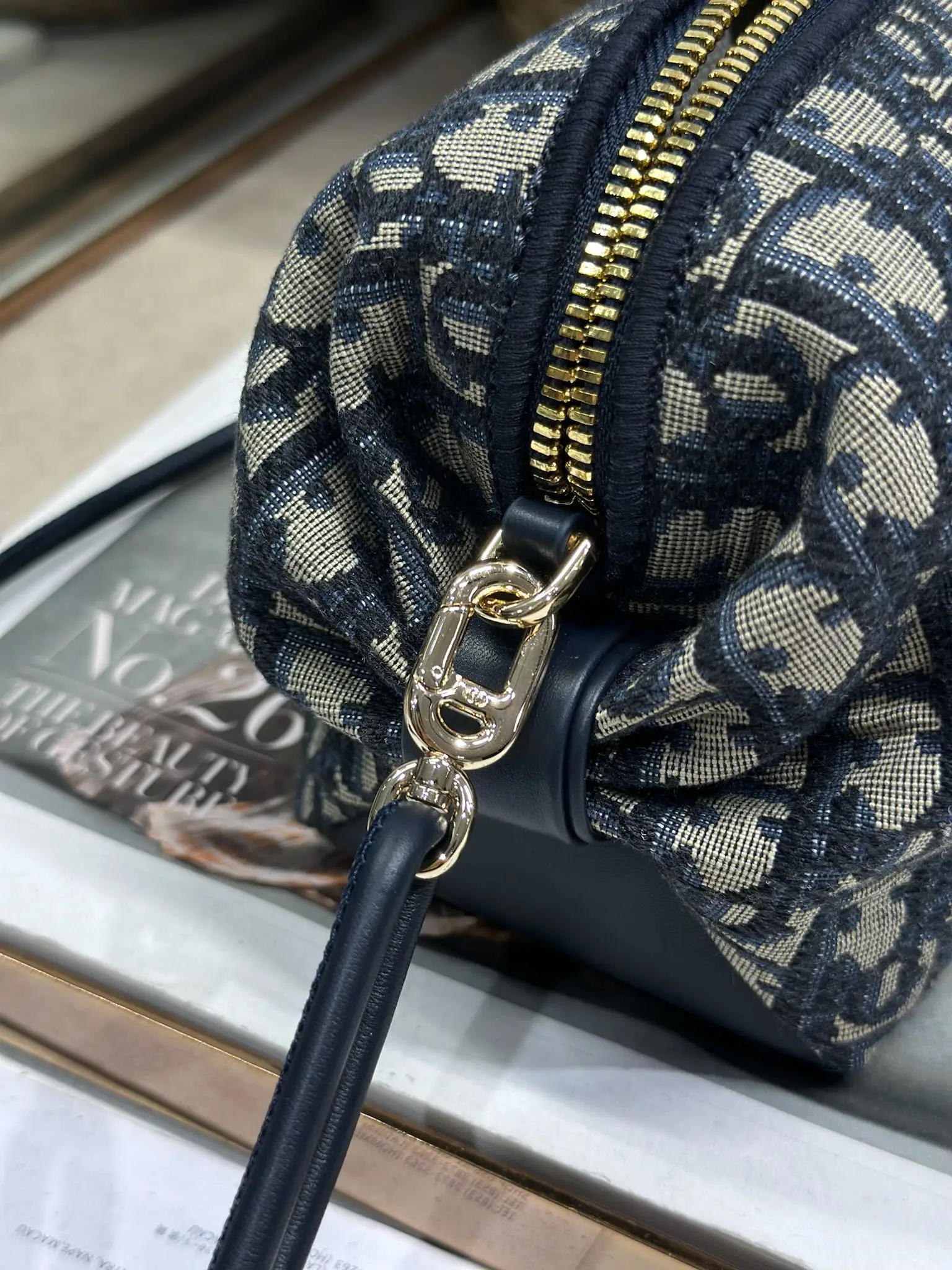 Dior Bow Clutch Blue Fabric with Leather This Dior Bow clutch pays tribute to Dior s heritage, showcasing the brand s elegant signature and exquisite craftsmanship. The soft Obliq..