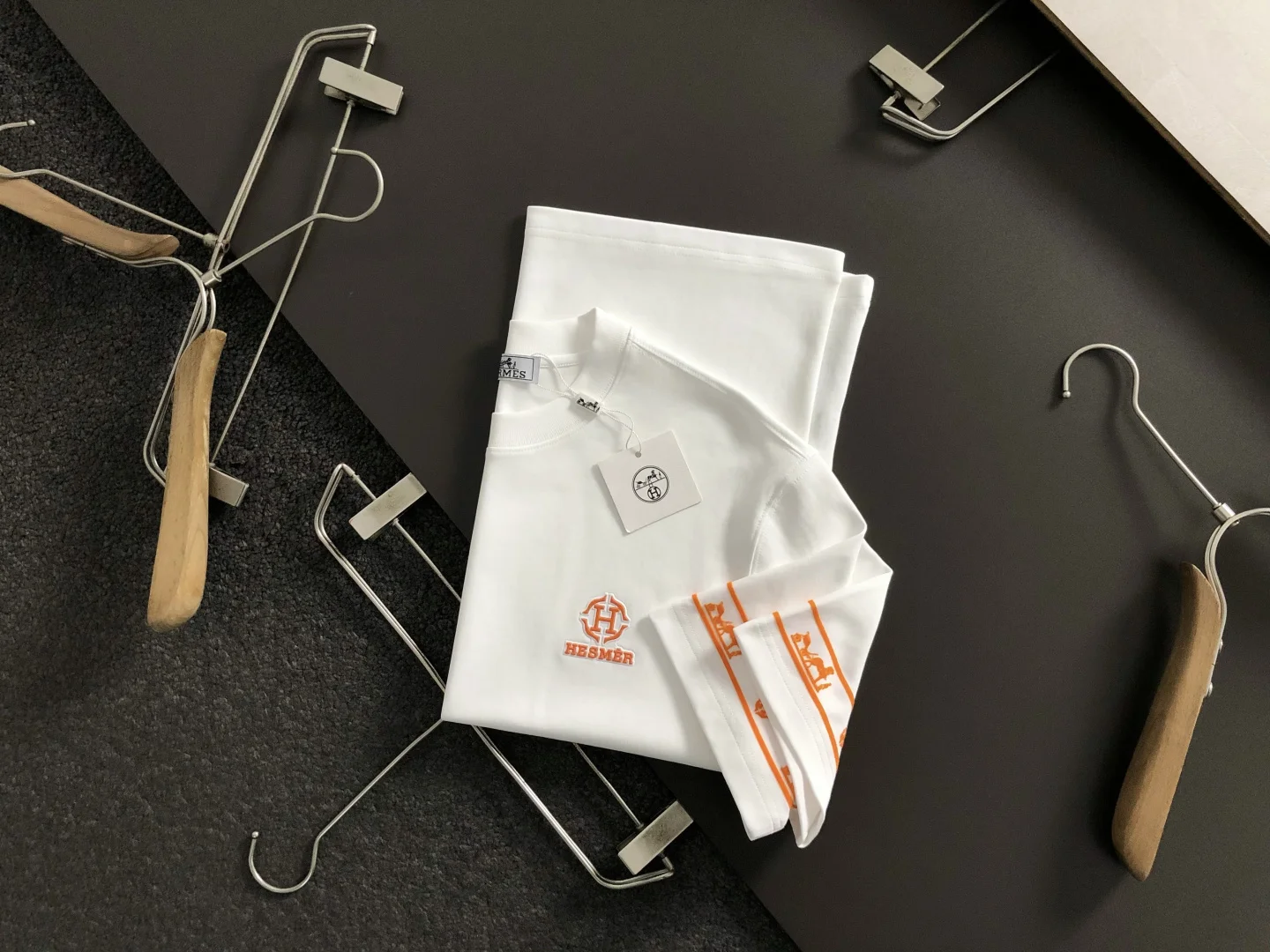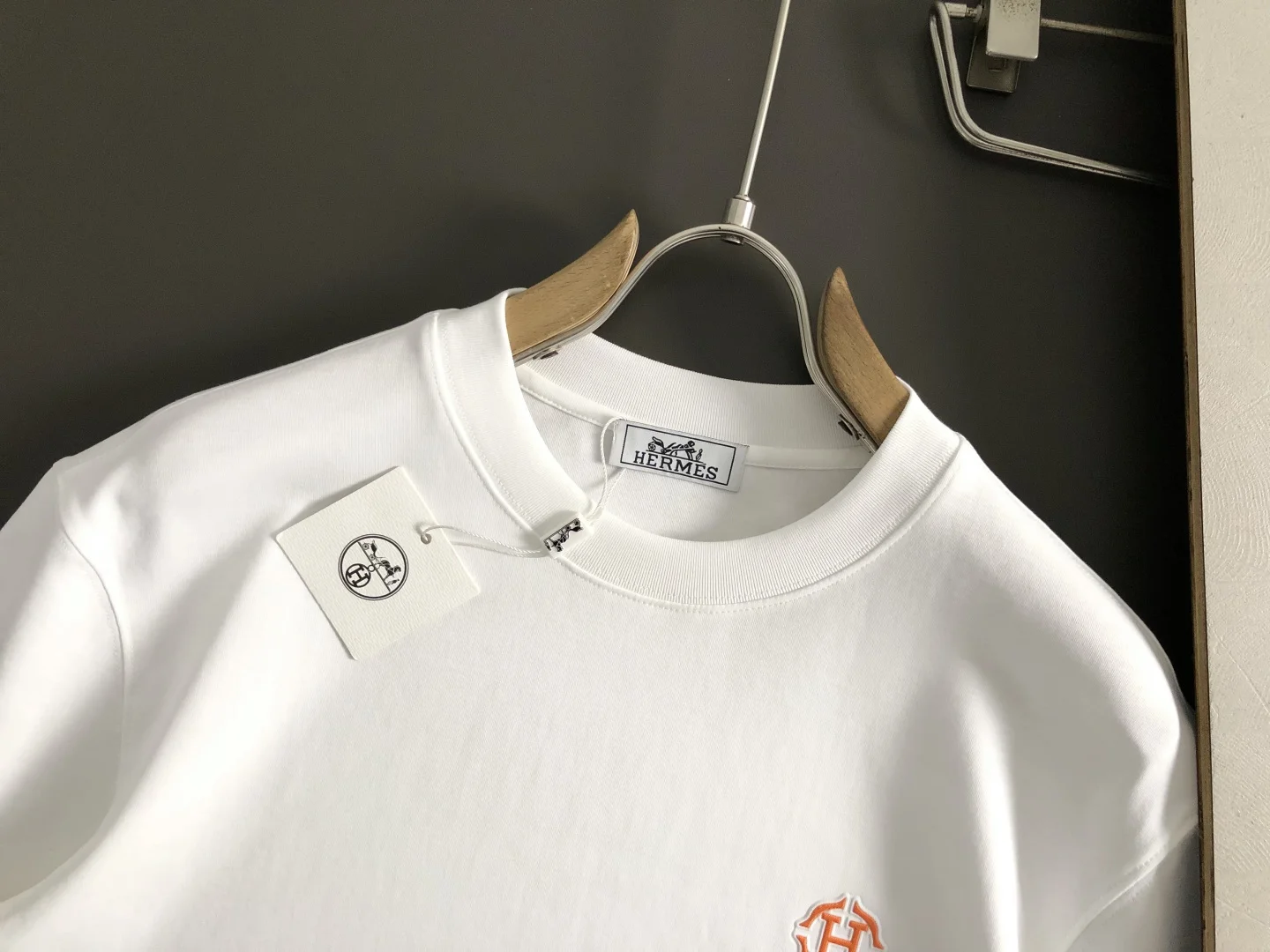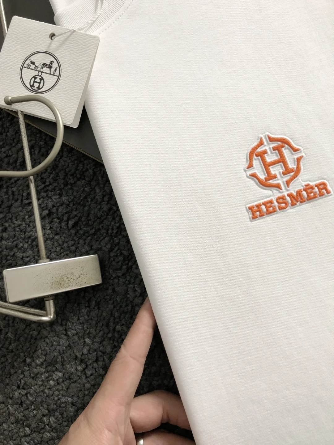2026 Spring/Summer short sleeves, featuring an orange H rubber printing flocking print as the main tone, cleverly incorporating contrasting solid colors to break the monotony of traditional short sleeves, showcasing individuality and nonchalance. The three-dimensional cut fits the body shape, with a clean and stylish design that effortlessly elongates the leg lines, creating a casual and relaxed style. Colors: Black, White