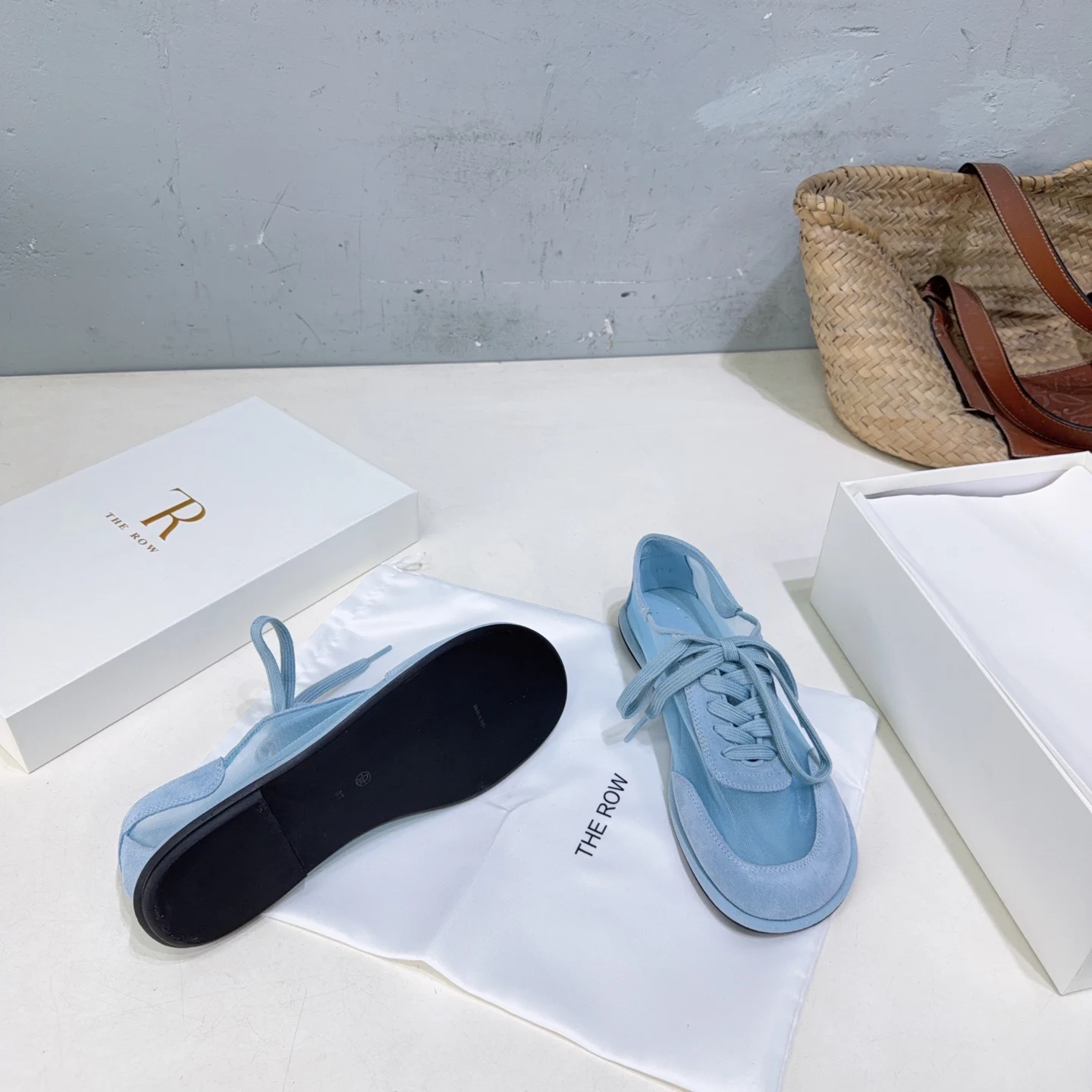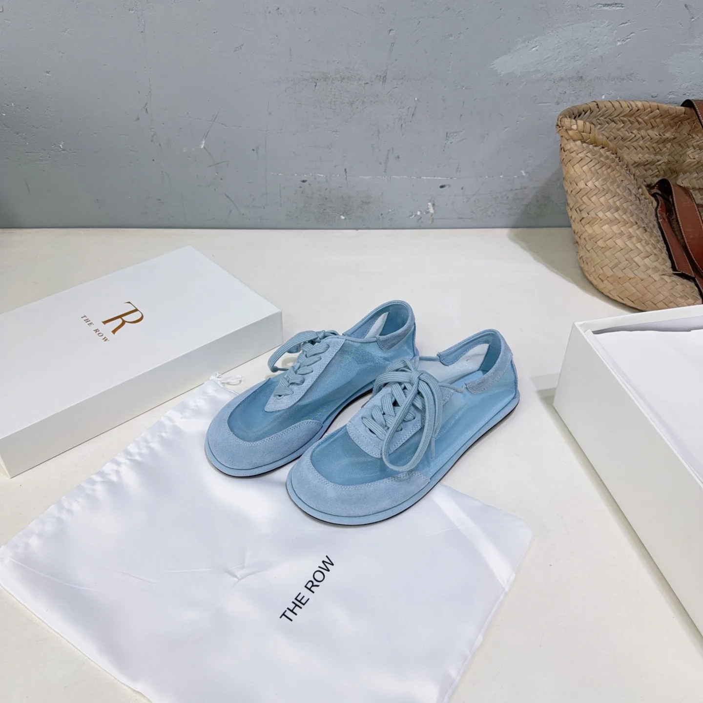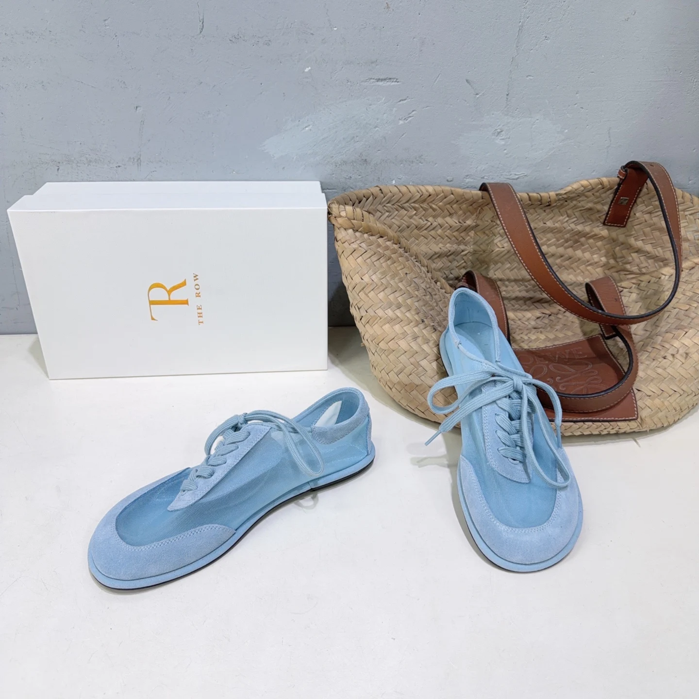 THE ROW Simple mesh color-blocking lace-up flat casual shoes women s casual shoes