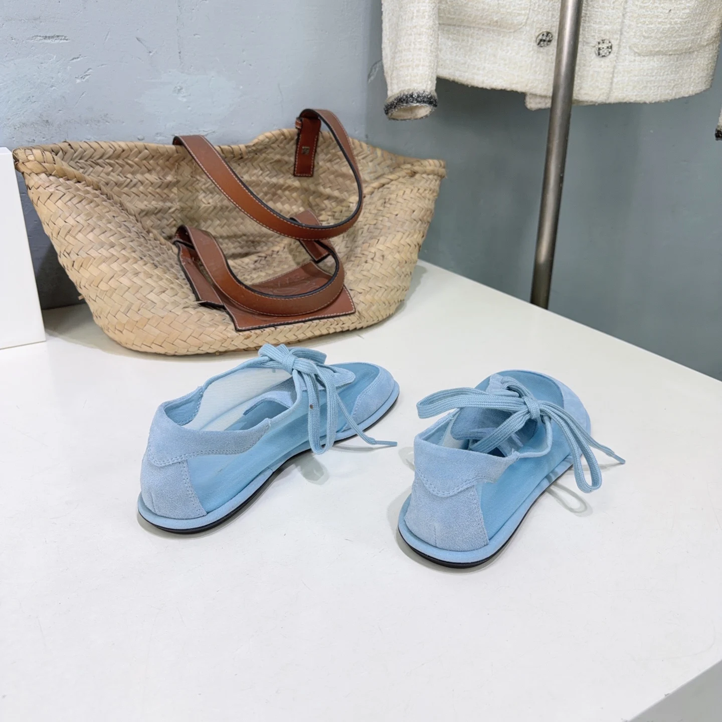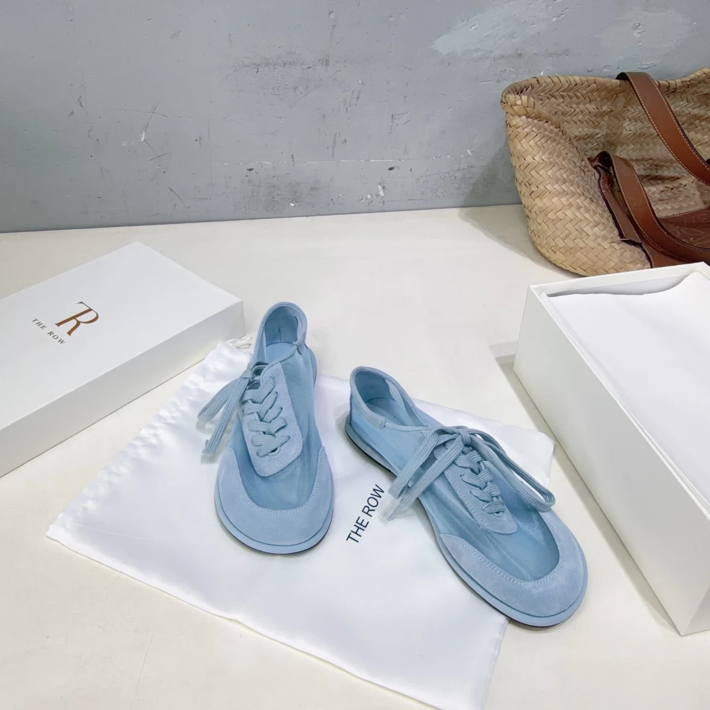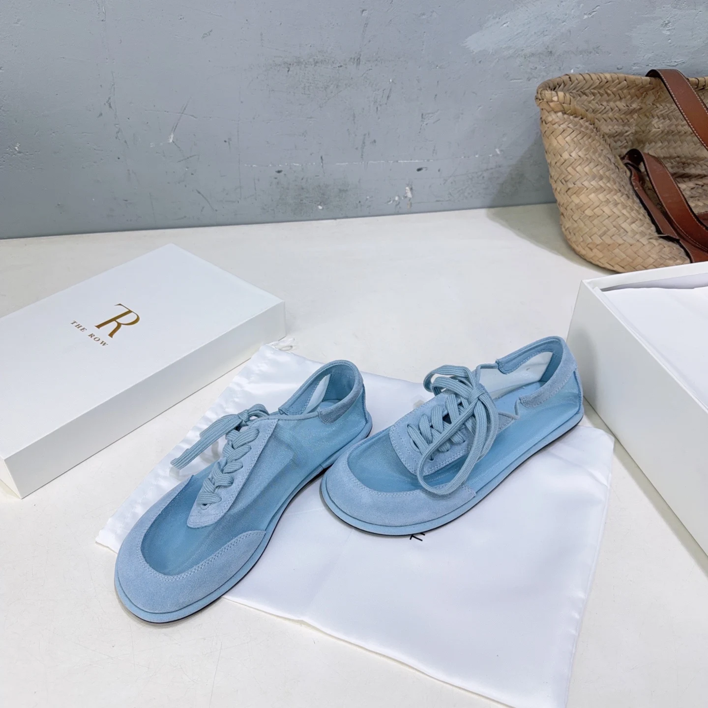 THE ROW Simple mesh color-blocking lace-up flat casual shoes women s casual shoes