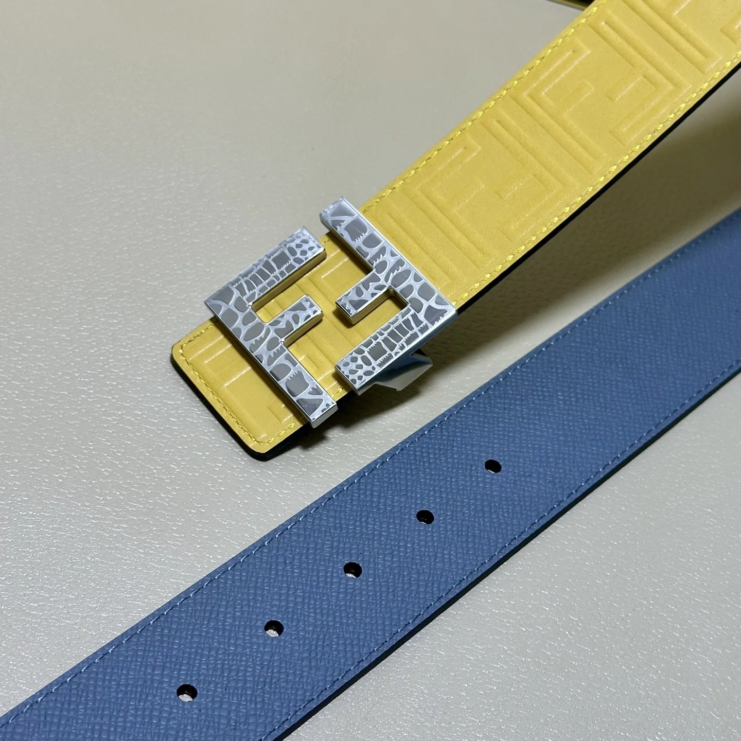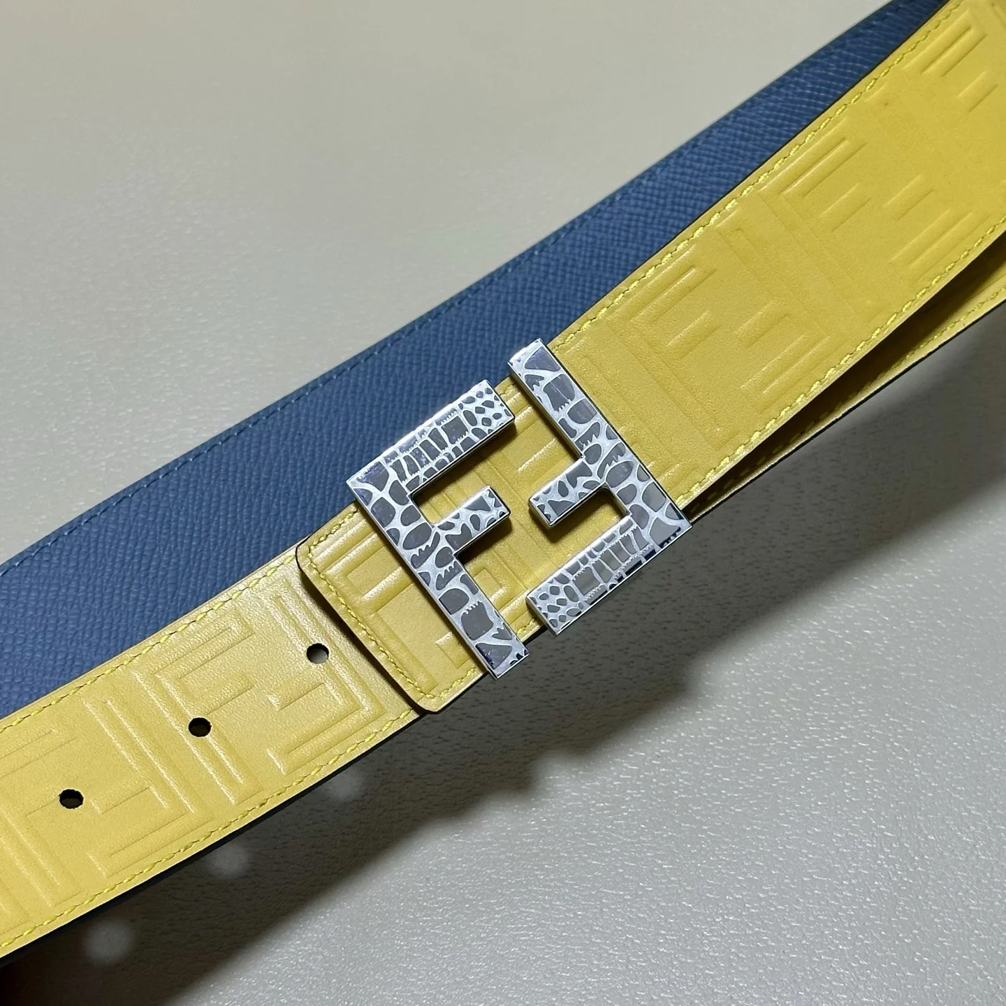 FENDl (Fendi) 40MM wide double-sided original calfskin paired with a single ruthenium-palladium plated buckle, perfect hand feel, oil edge, outstanding design, style noble luxury, fashionable and generous, high-definition real shot, genuine quality, quality assurance, double-sided use