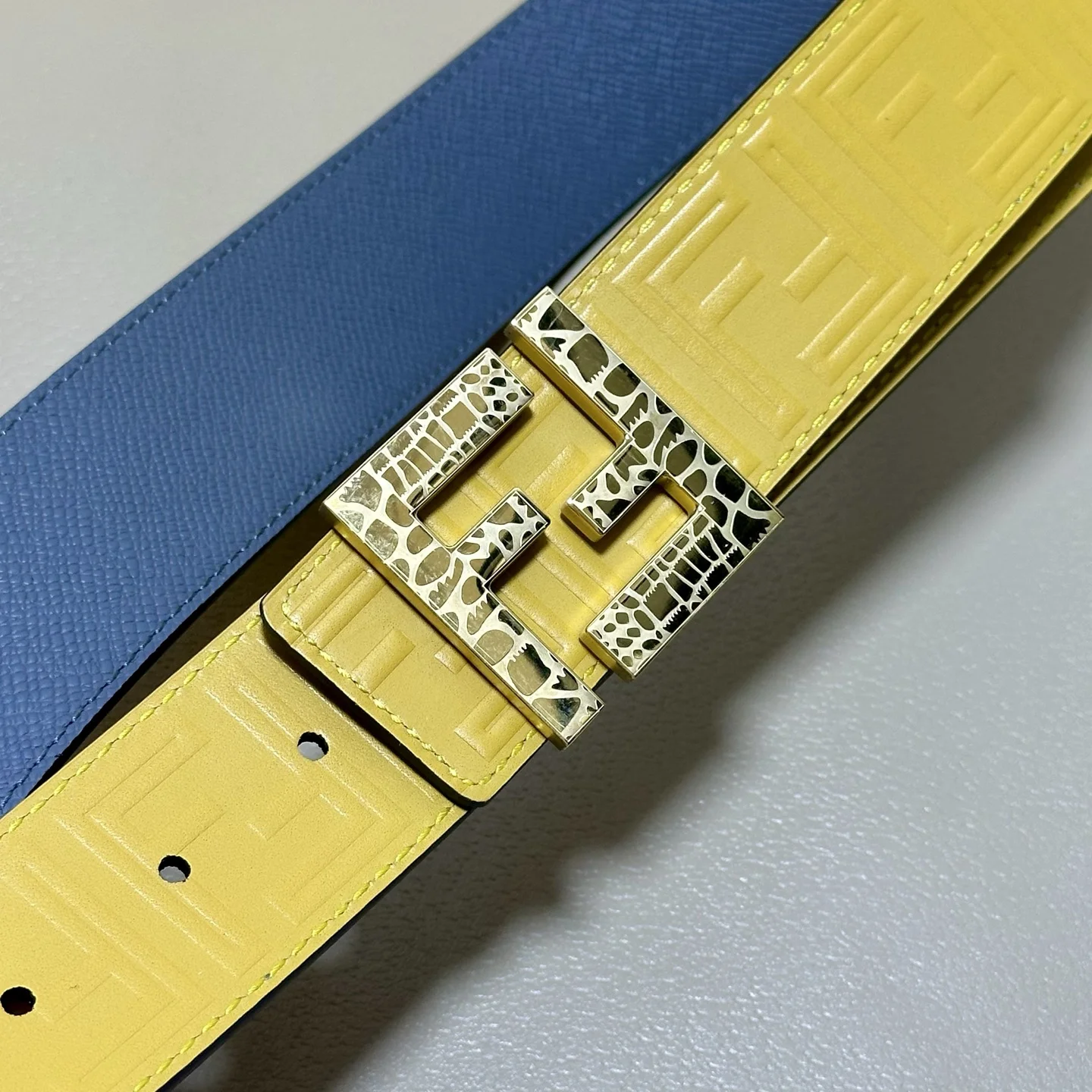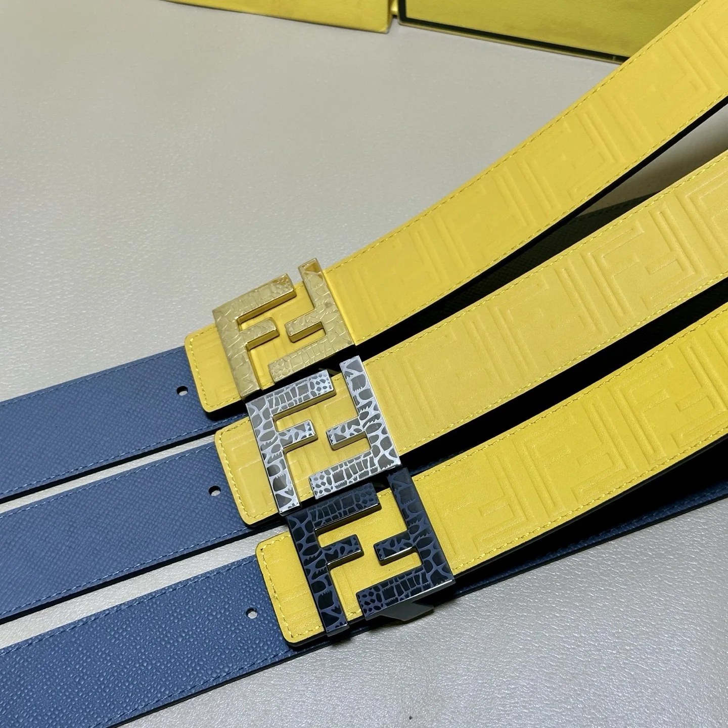 FENDl (Fendi) 40MM wide double-sided original calfskin paired with a single ruthenium-palladium plated buckle, perfect hand feel. Oiled edges, outstanding design, style, noble luxury, fashionable and elegant. High-definition real shots, genuine products at fair prices, quality assurance, double-sided use .