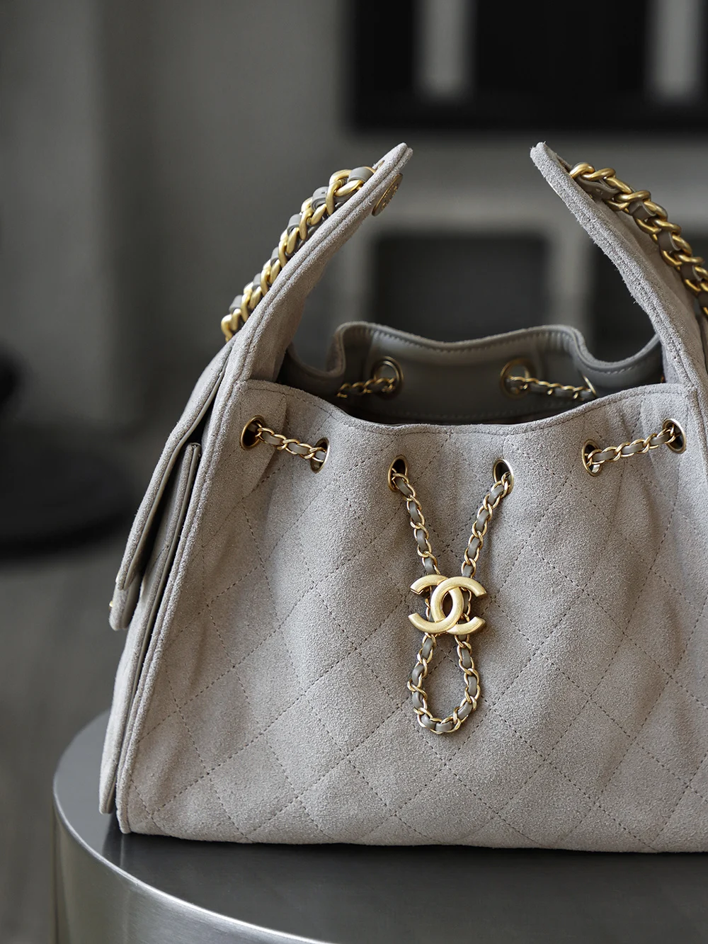 Premium Original Factory 25BAG Suede Small The suede in米灰色 hobo truly presents a cool and refreshing vibe. The essence of米灰色 is to be both elegant and stylish, exuding a sense of relaxed casualness. The drawstring opening paired with a trapezoidal silhouette is both unique and effortless!