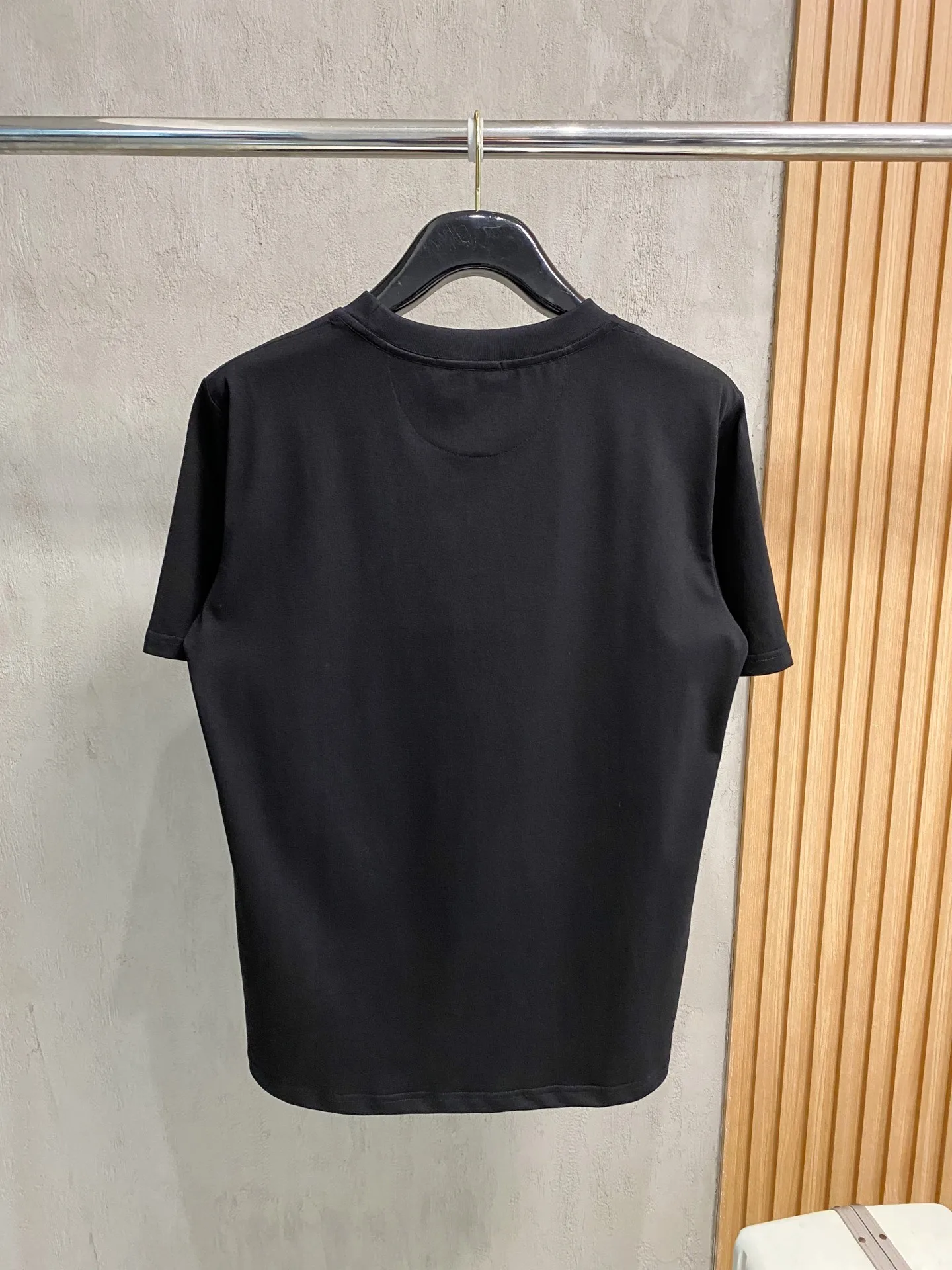The Pra spring and summer classic letter embroidered short-sleeve T-shirt features a minimalist basic style design that embodies a simple yet elegant aesthetic, expressing the brand s attitude and pursuit of reinterpreting basic items with innovative connotations. Custom fabric; colors: black and white; sizes: S-2XL.