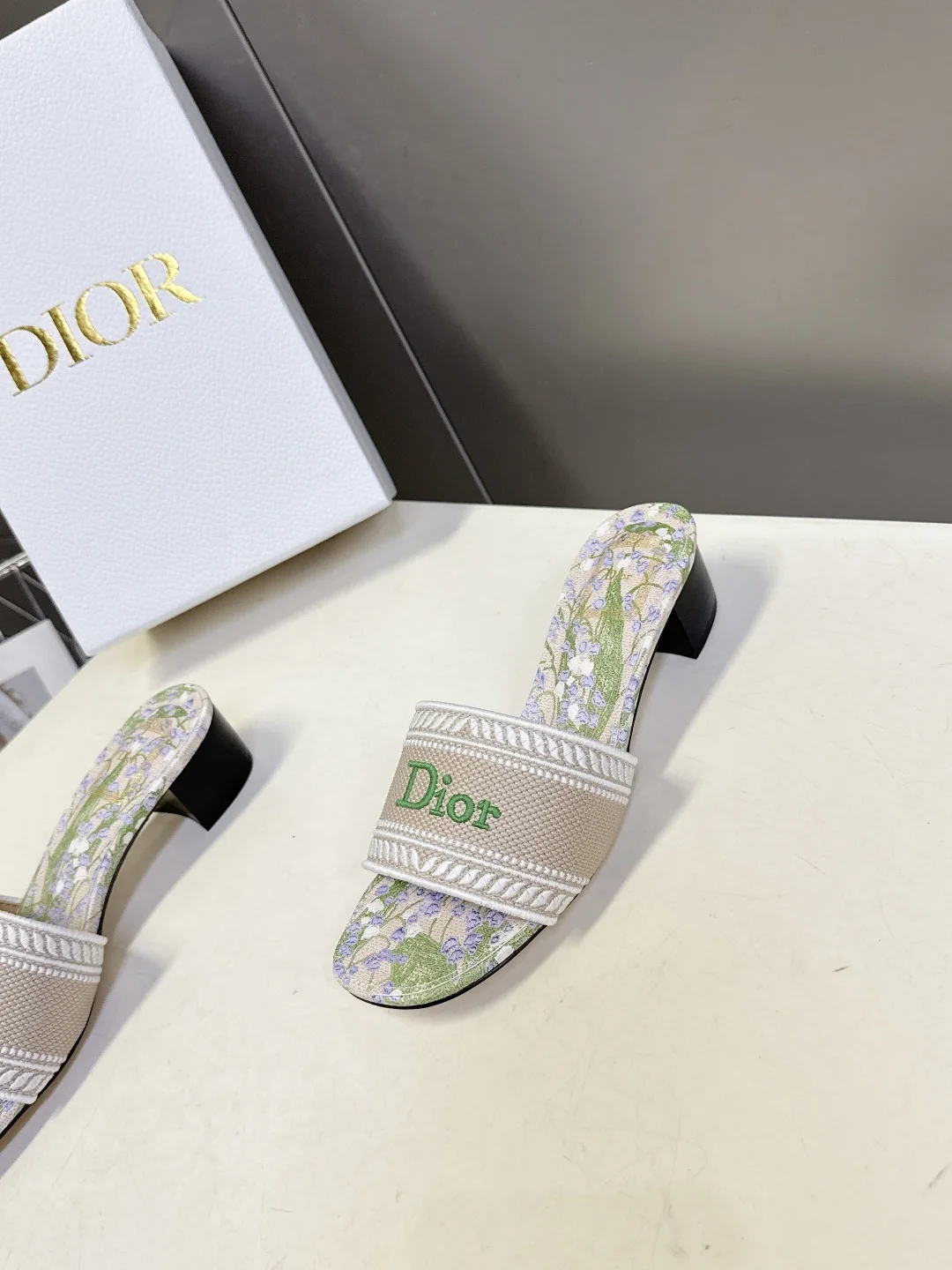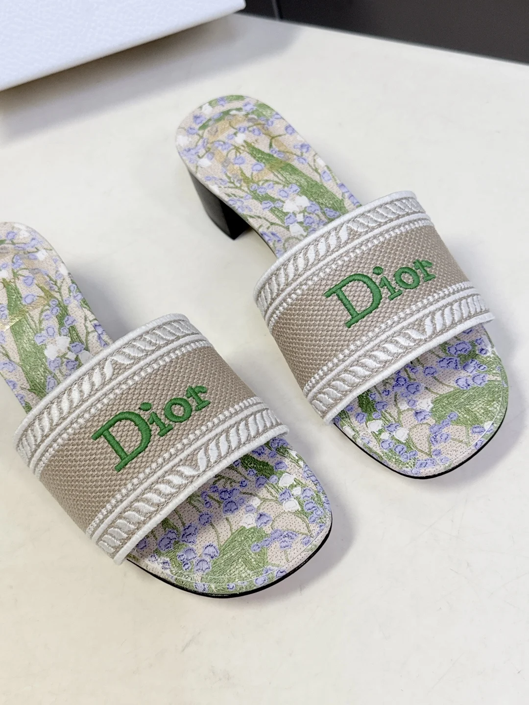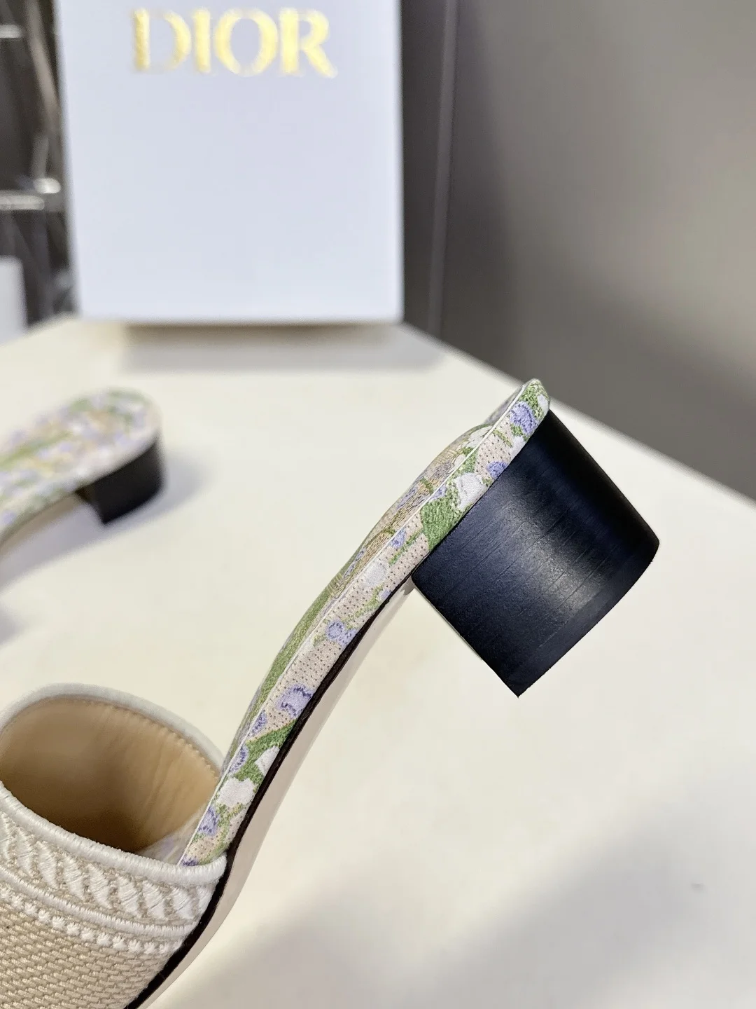 Dior Spring and summer latest embroidered chunky heel slide sandals for women