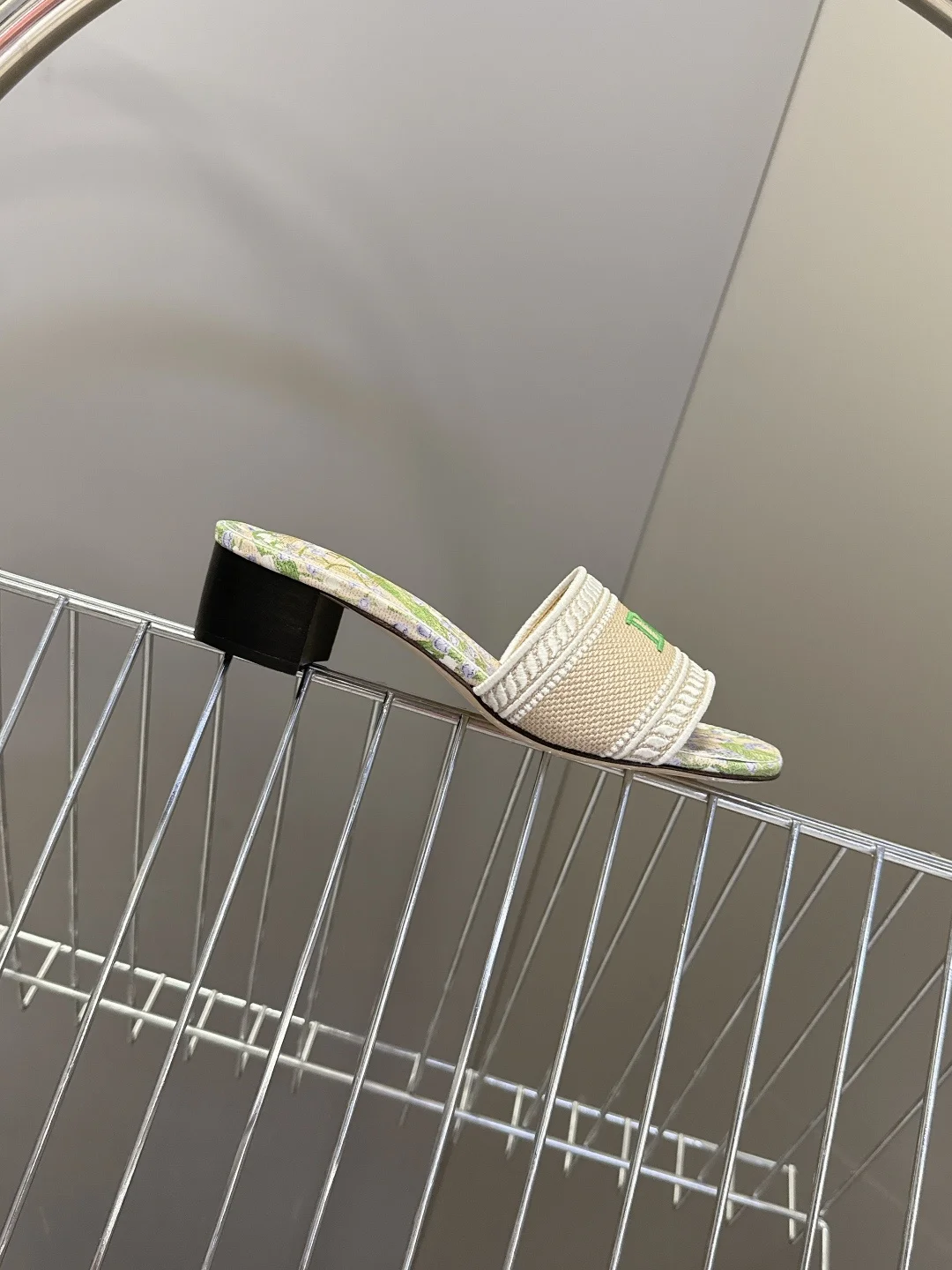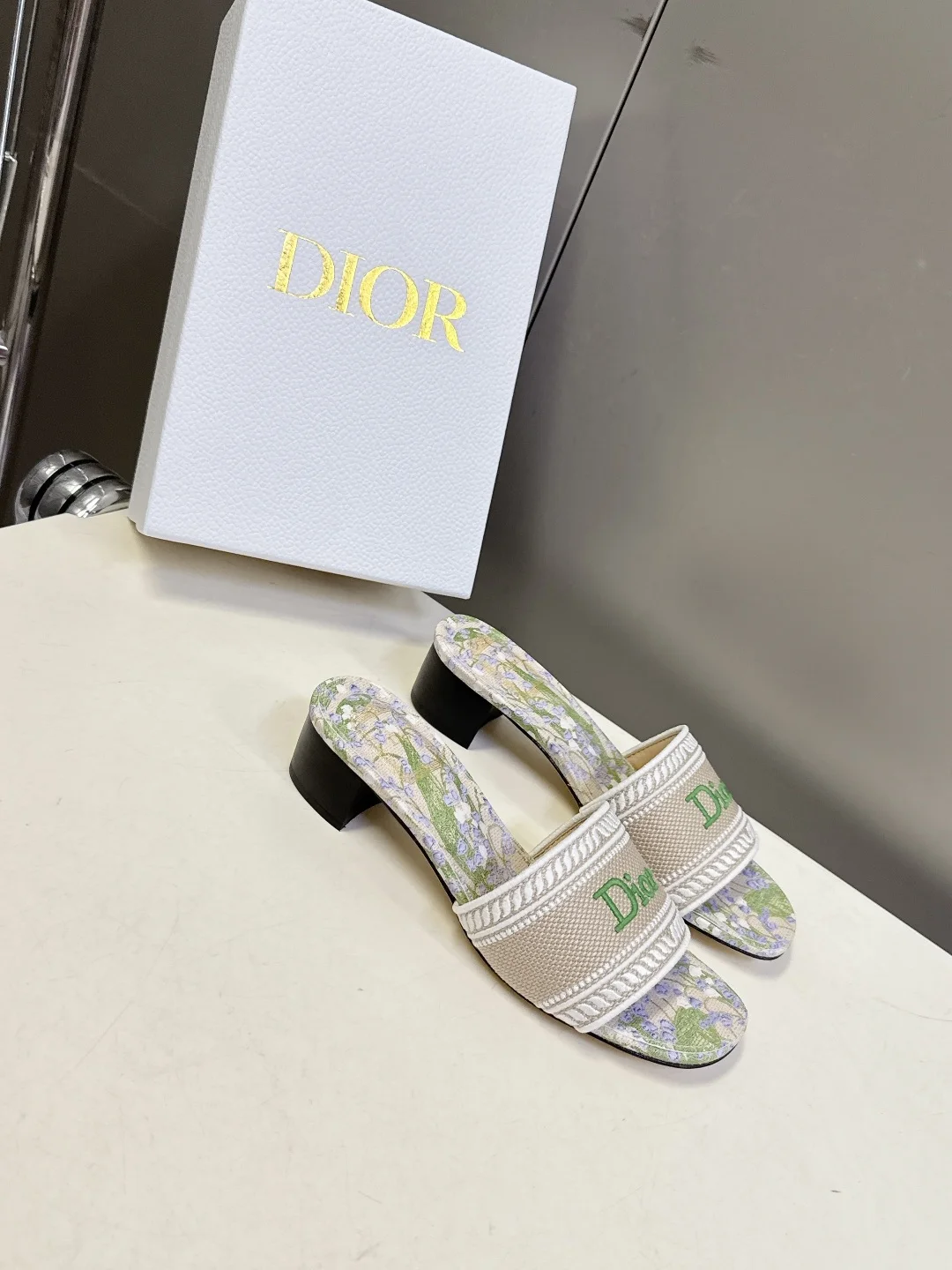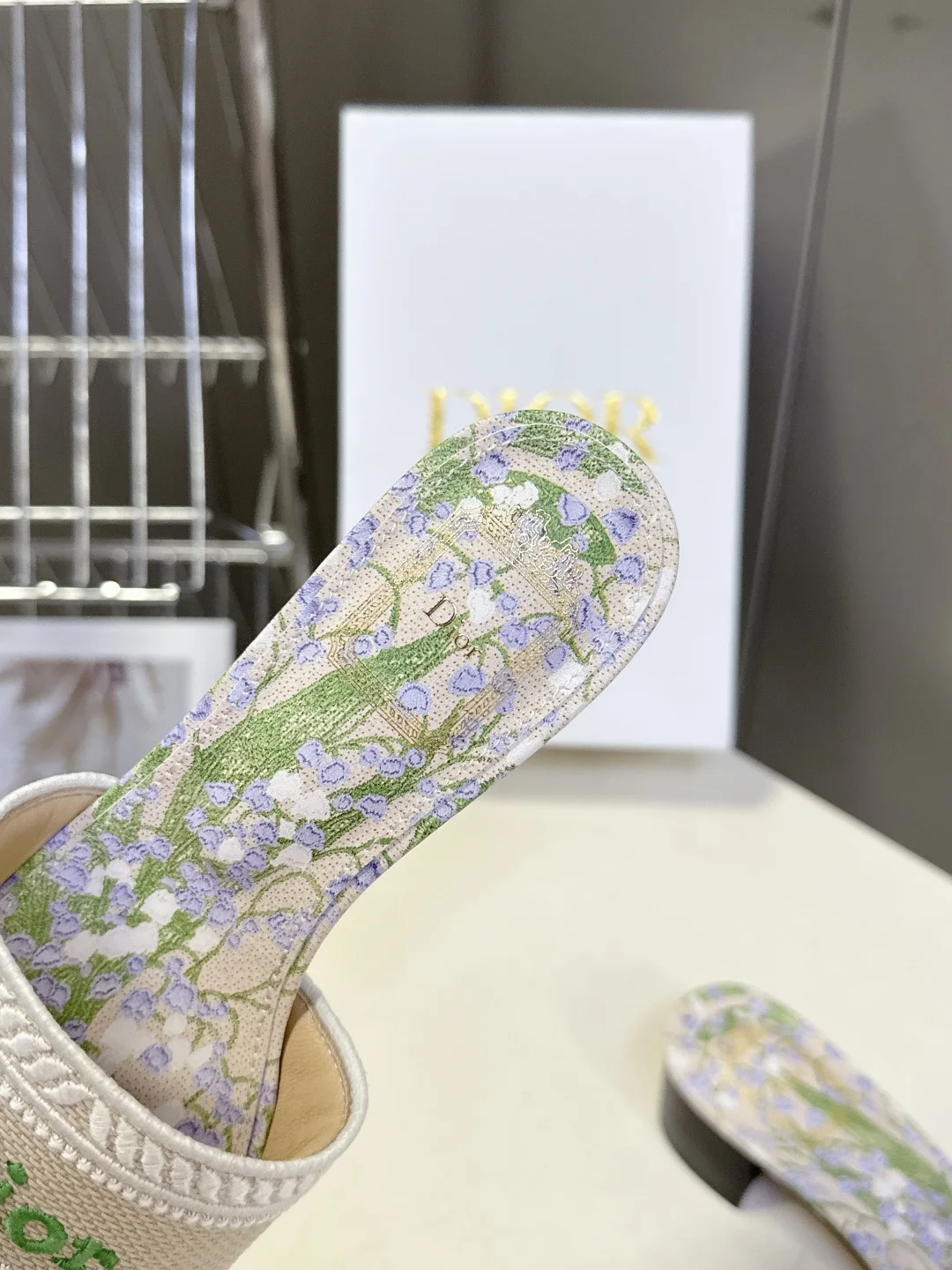 Dior Spring and summer latest embroidered chunky heel slide sandals for women