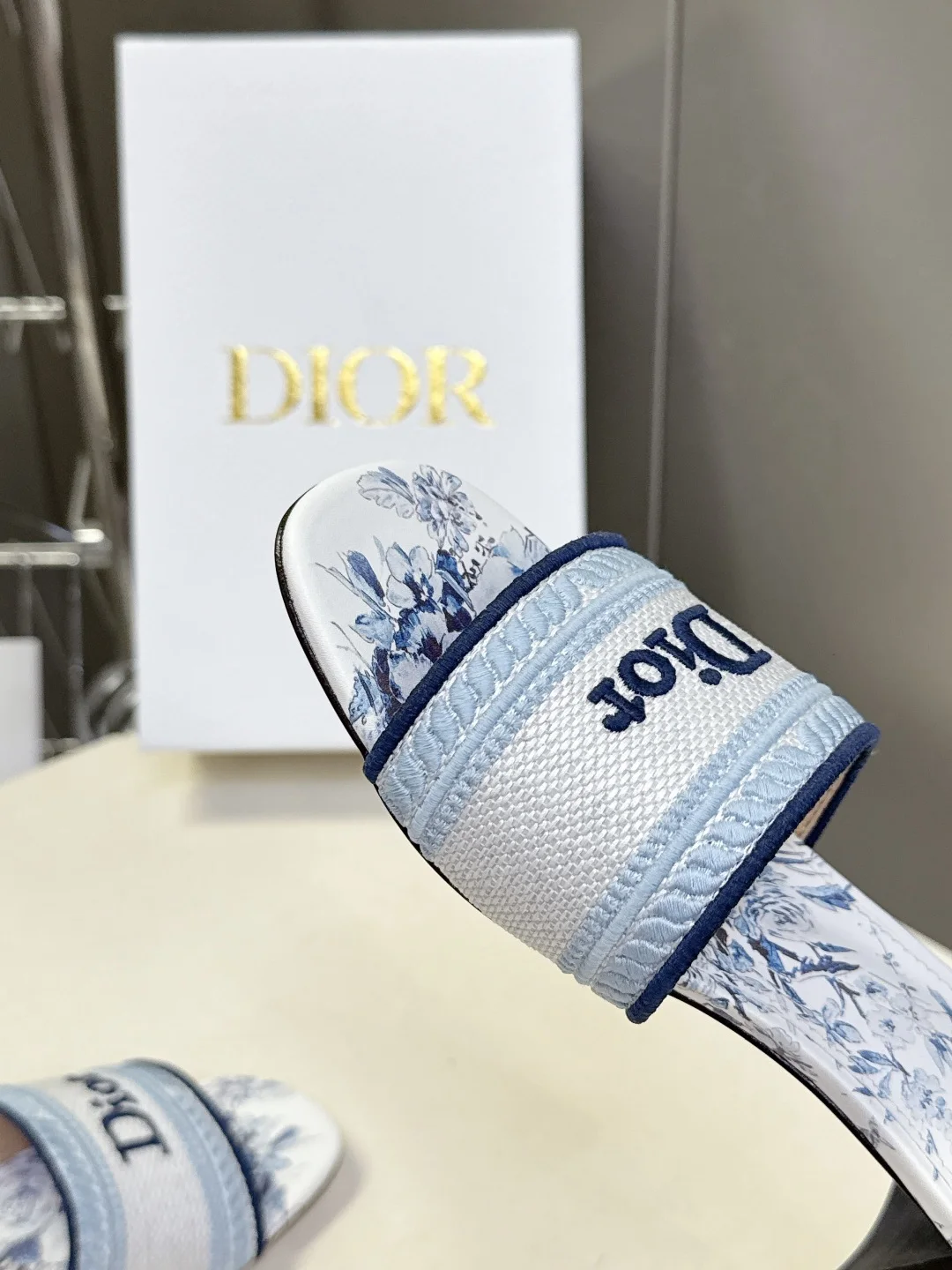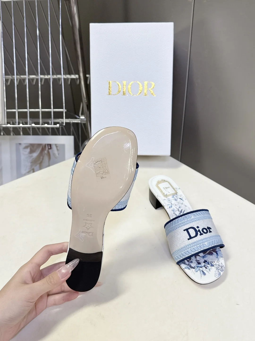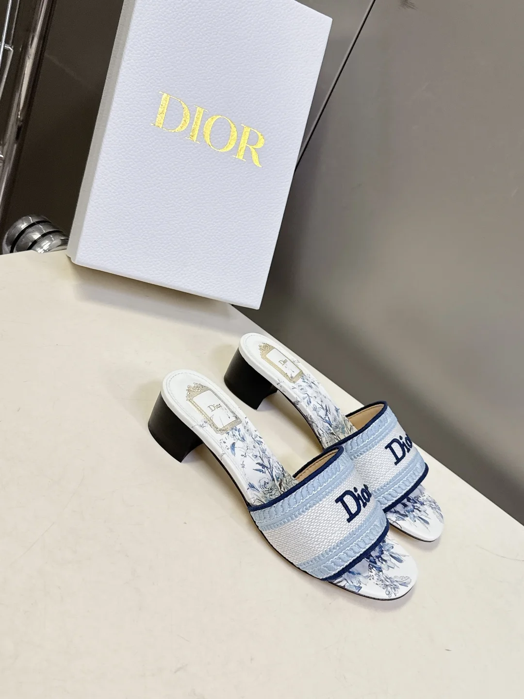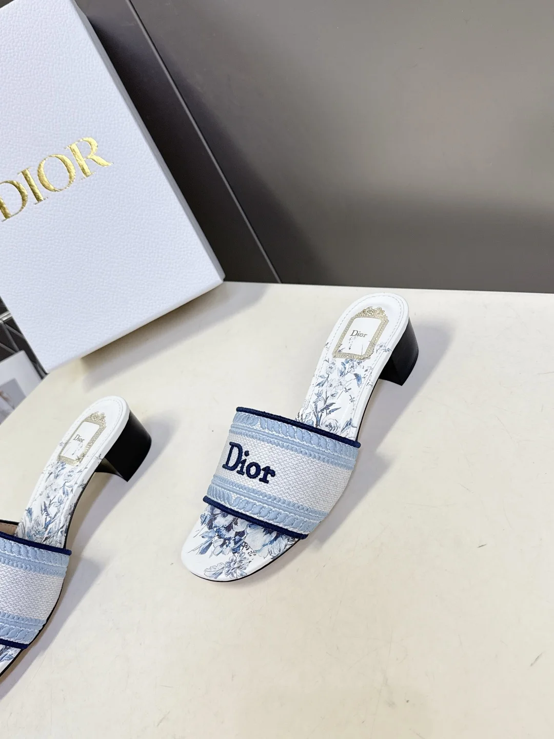 Dior Spring and summer latest embroidered chunky heel slide sandals for women.