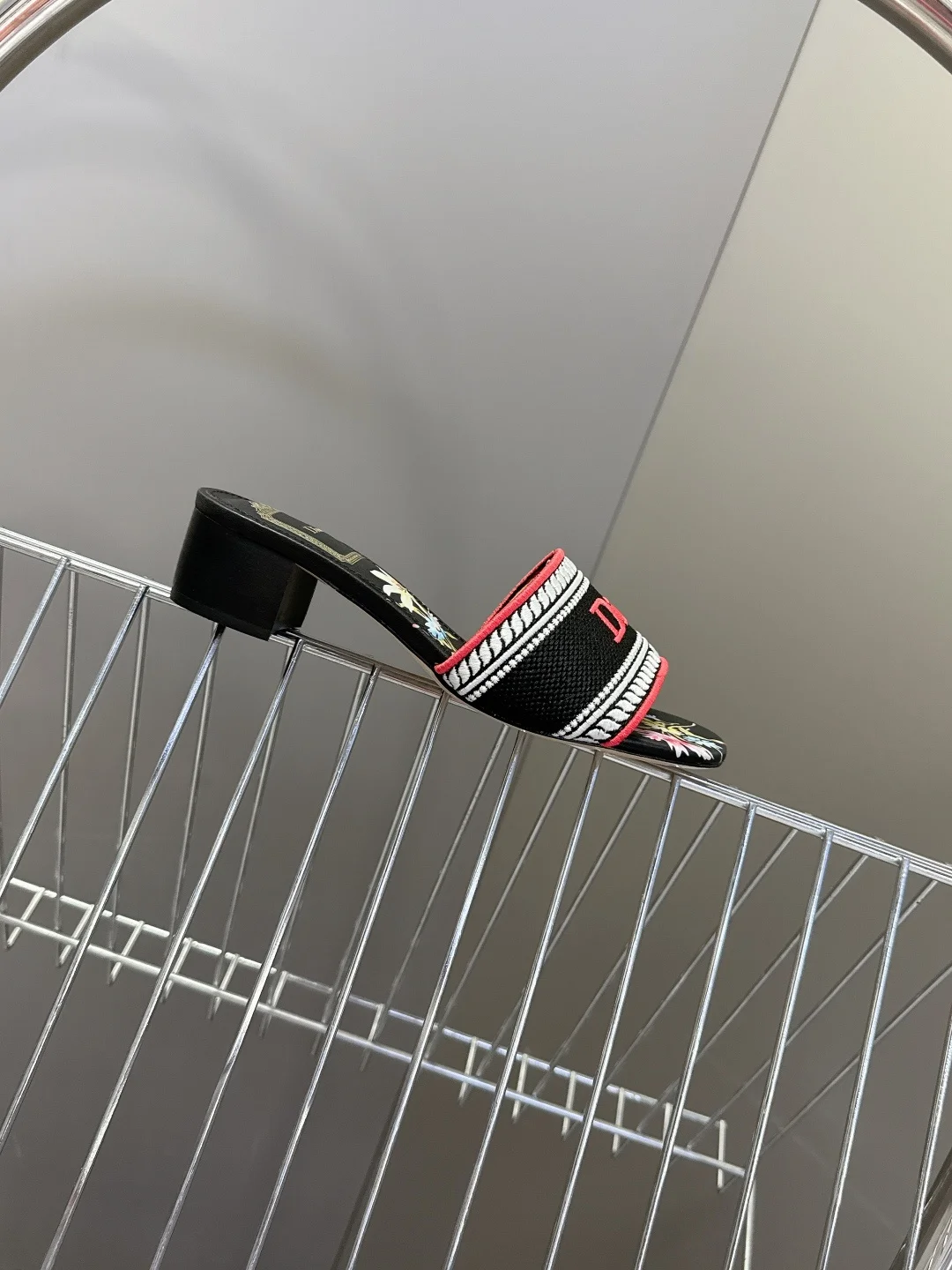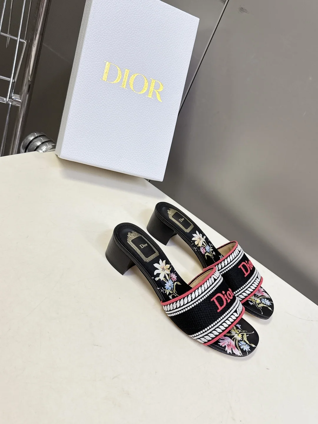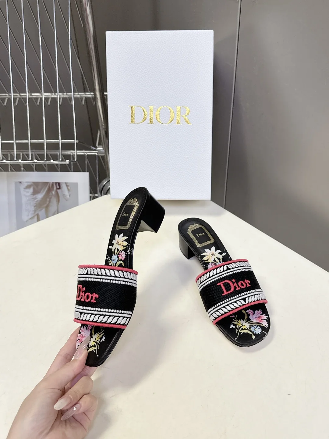 Dior Spring and summer latest embroidered chunky heel slide sandals for women.