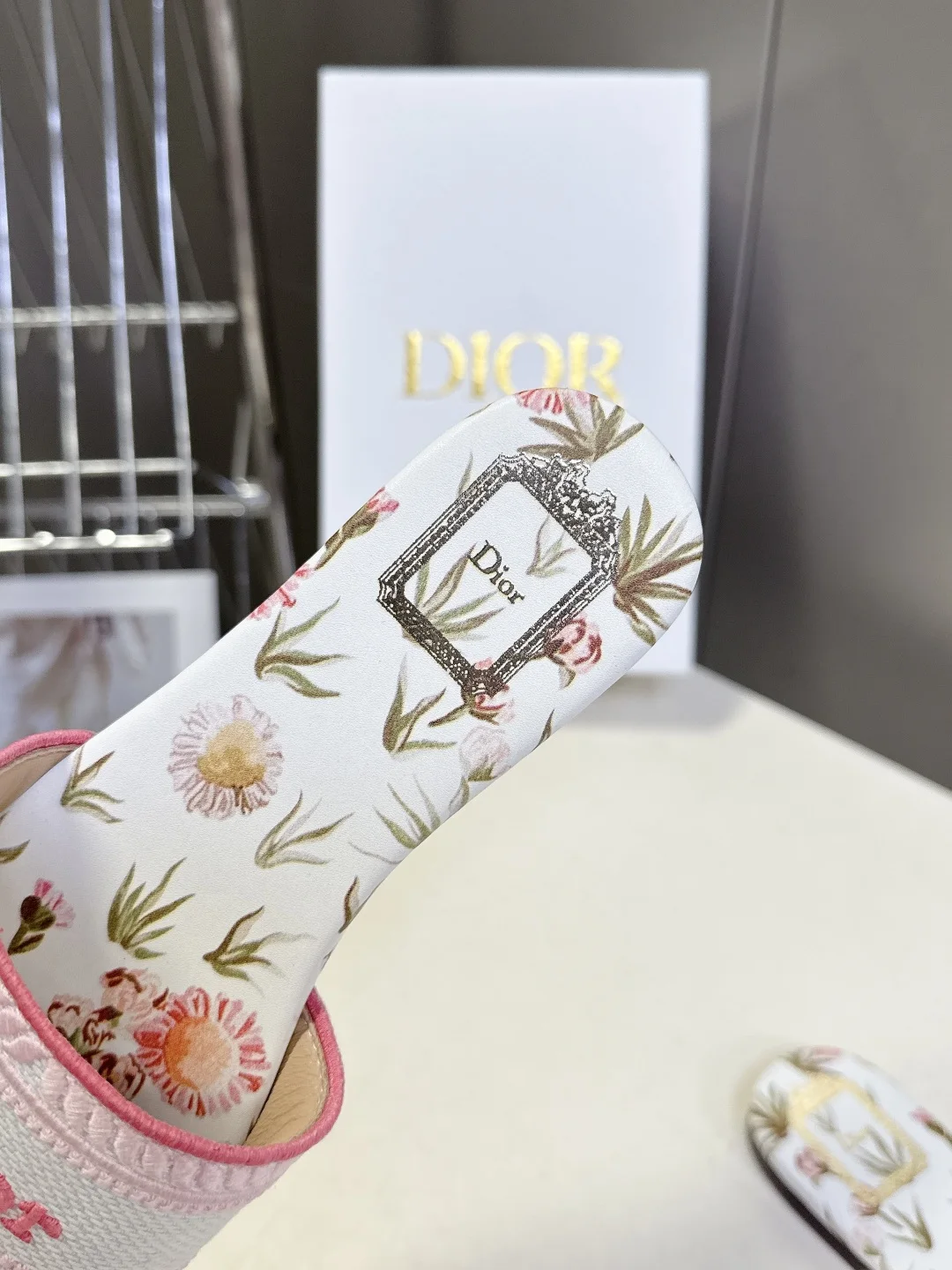 Dior Spring and summer latest embroidered chunky heel slide sandals for women.