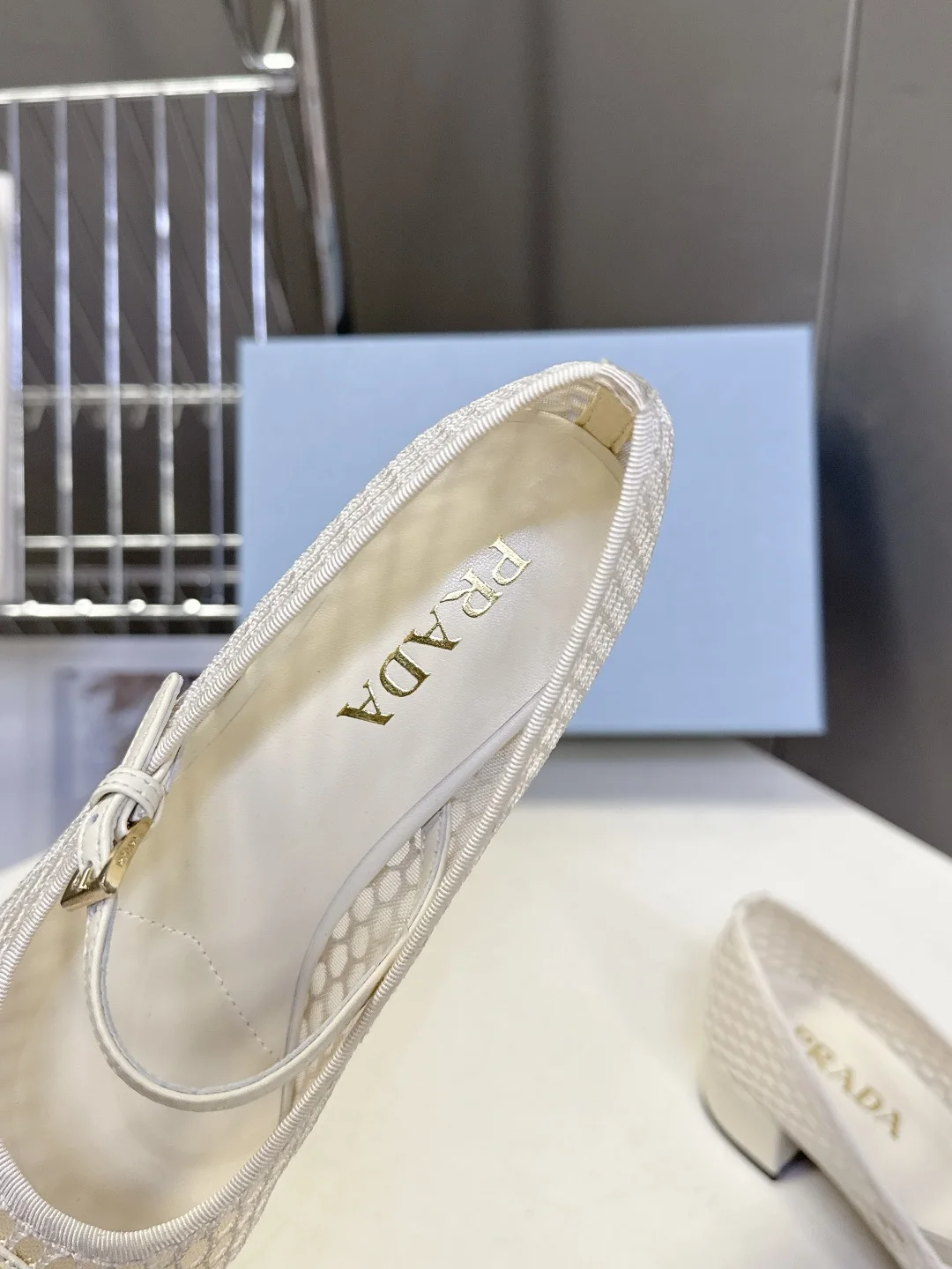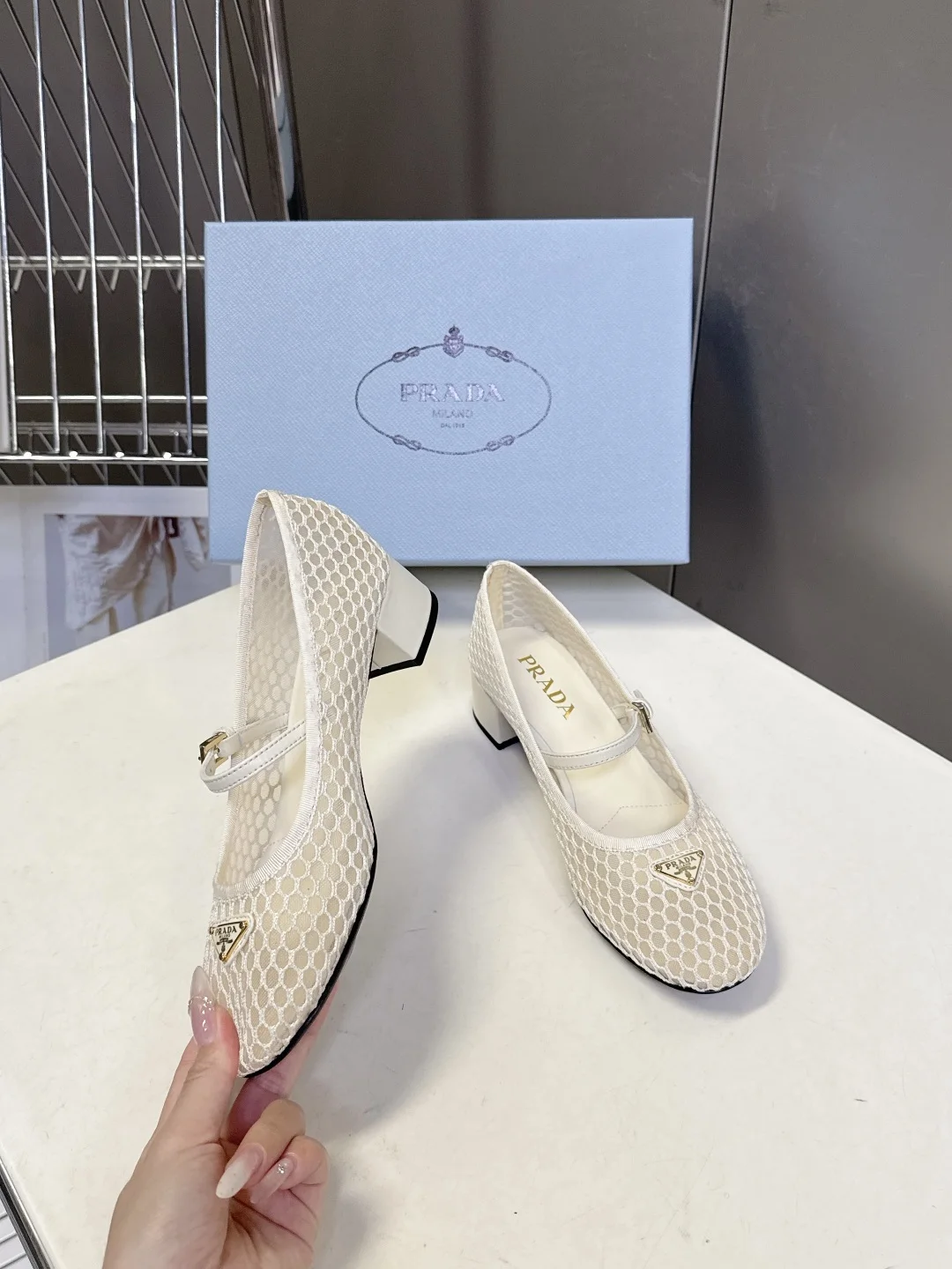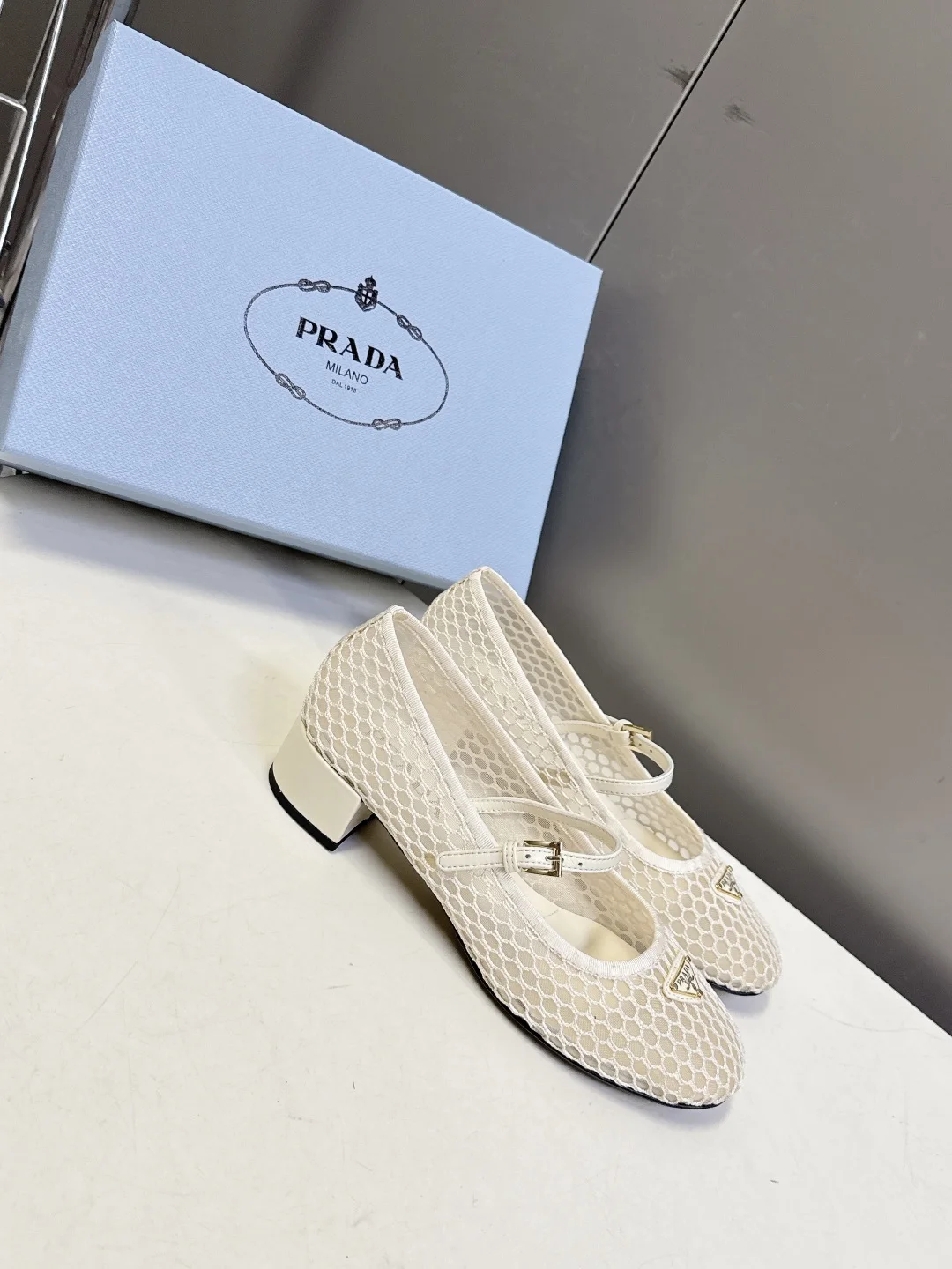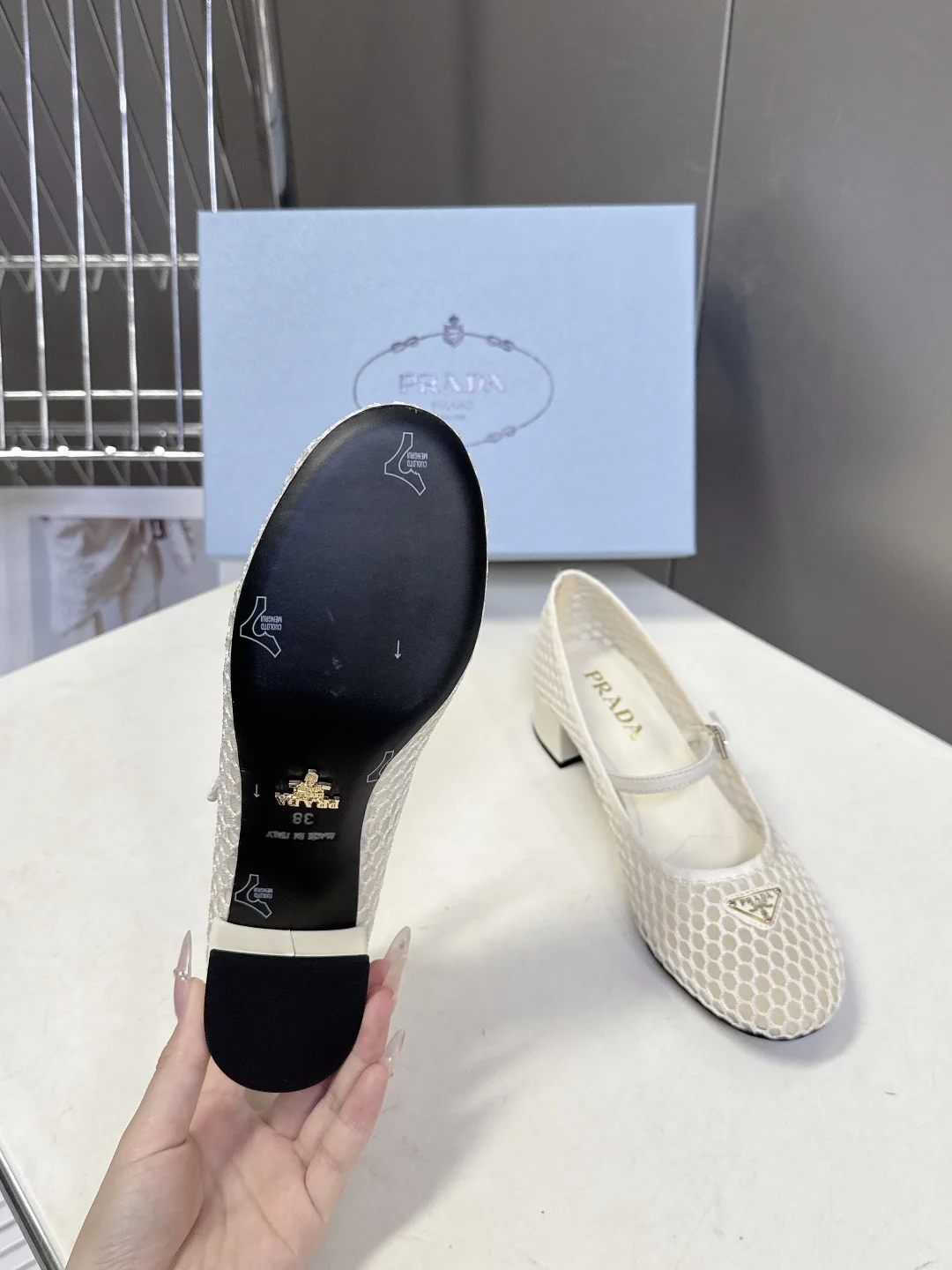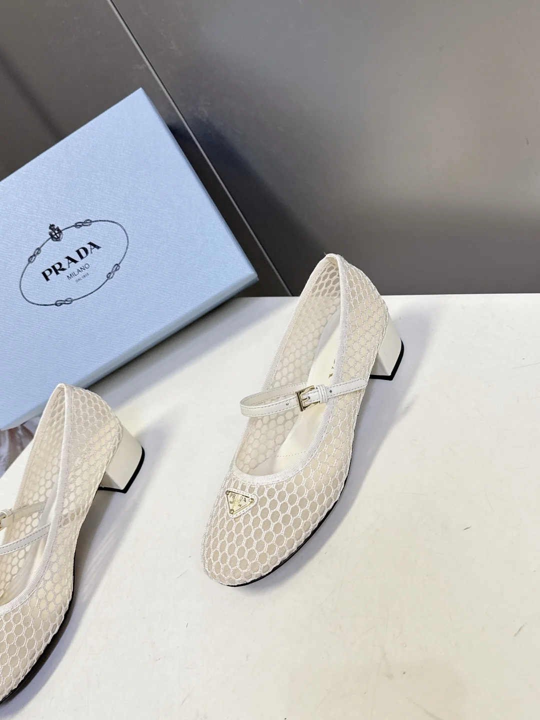 Prada Spring/Summer latest mesh Mary Jane chunky heel shoes