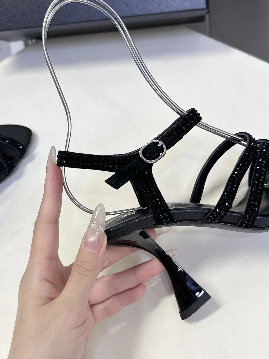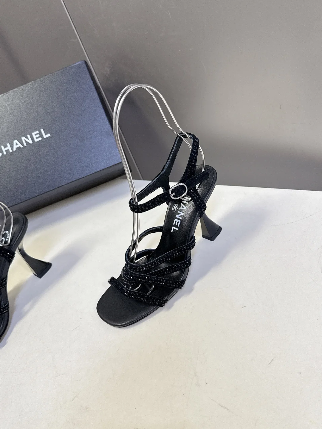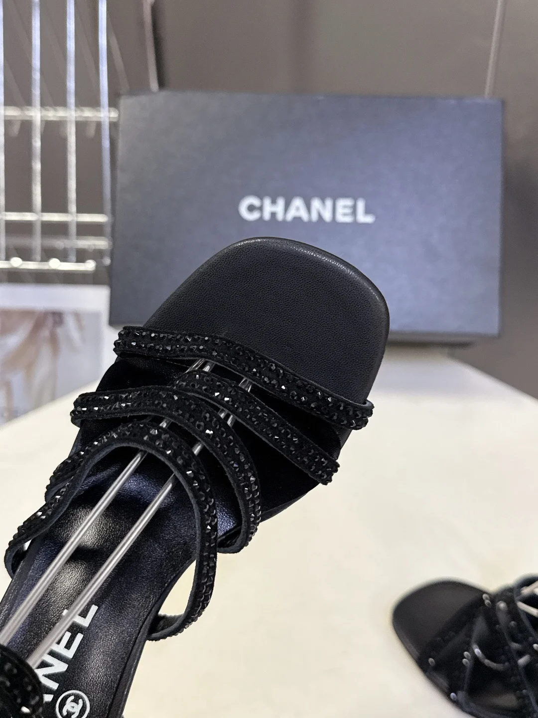 Chanel Spring and summer latest rhinestone strap kitten heel sandals women s sandals