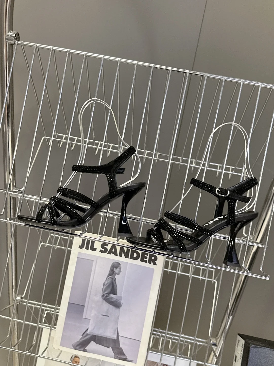 Highly recommended by numerous celebrities and influencers, this is a signature evening party shoe of the brand s French elegance style. It perfectly combines a dazzling design with comfortable wear, making it an essential item for important occasions. The insole is clearly embossed with the CHANEL brand name, and the straps incorporate the brand s classic double C logo, enhancing its recognizability. Multiple parallel straps are adorned with sparkling rhinestones, creating a luxurious atmosphere. Once worn, it instantly brightens the outfit, making it a show-stopping piece for parties and evening events. The kitten heel design features an 8CM curved slender heel that elongates the leg line while being more stable than ultra-high heels, ensuring comfort for prolonged wear. Made with genuine Italian leather outsole. Size: 35-41 (no returns or exchanges for sizes 40 and 41).