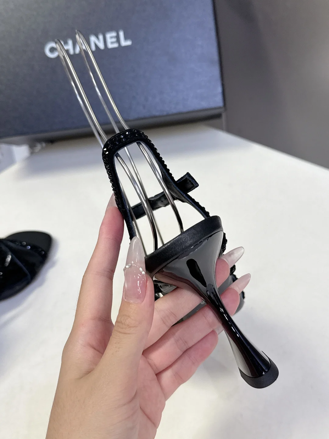 Chanel Spring/Summer latest rhinestone strap kitten heel sandals