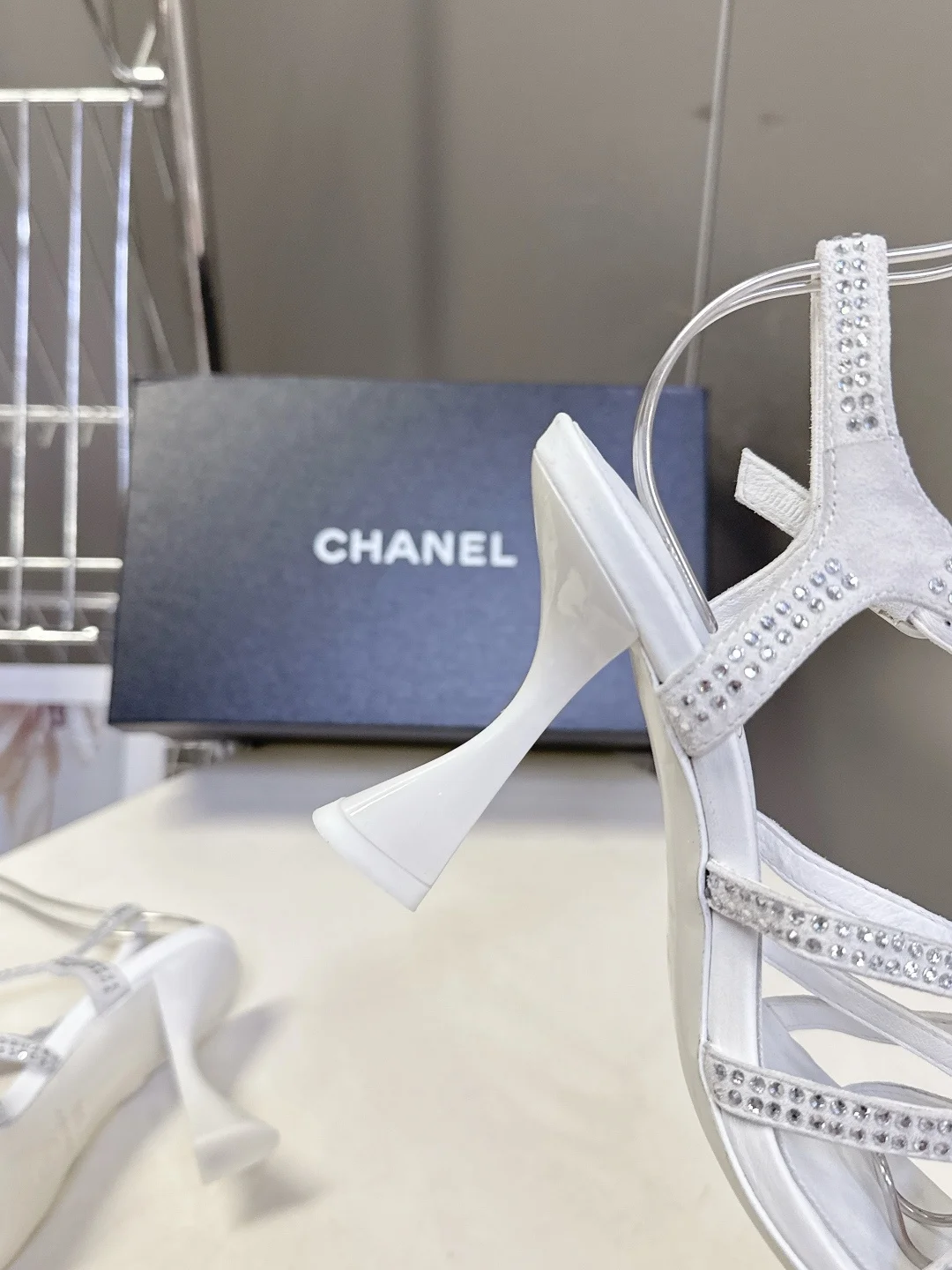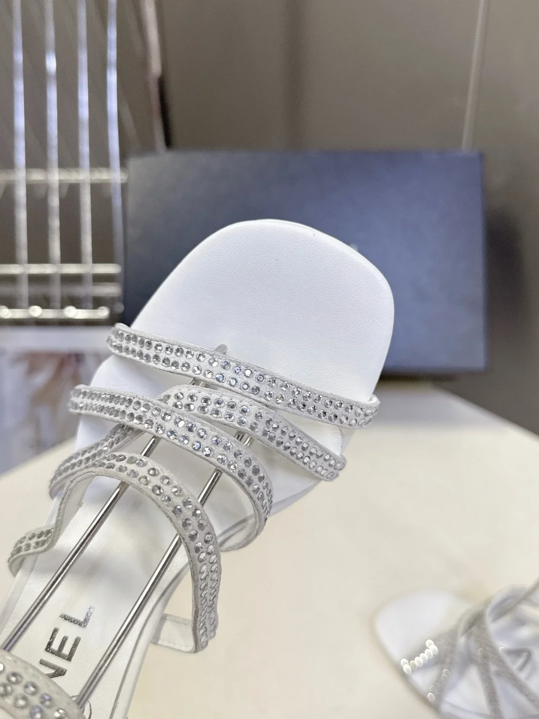 Chanel Spring and summer latest rhinestone strap kitten heel sandals women s sandals