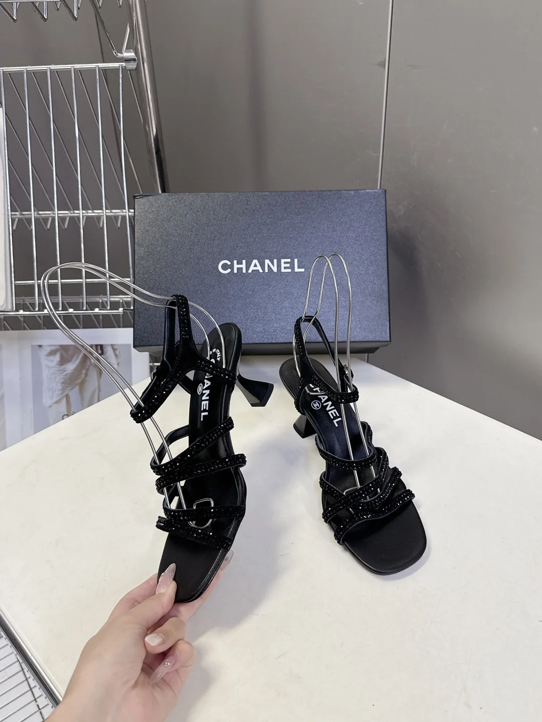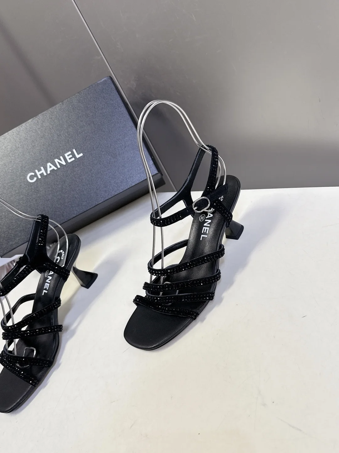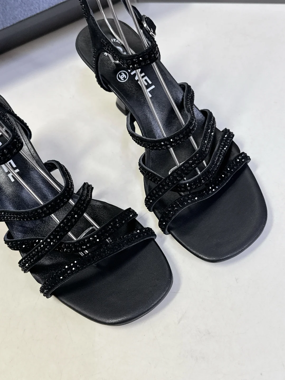 Chanel Spring and summer latest rhinestone strap kitten heel sandals women s sandals