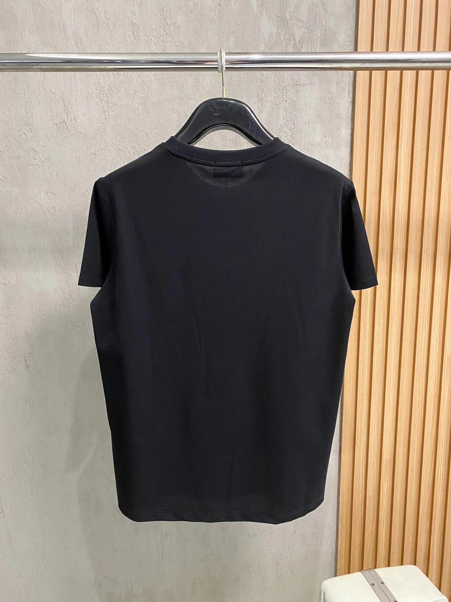 Armani Spring/Summer latest round neck short sleeve high-end custom design, avant-garde and fashionable! Classic brand logo with intricate craftsmanship design (custom silk luster pearl fabric. Contains mulberry silk. The silk luster pearl fabric has a soft and delicate texture with good gloss, overall quality is excellent. Soft to the touch and comfortable to wear. Sizes: S-2XL