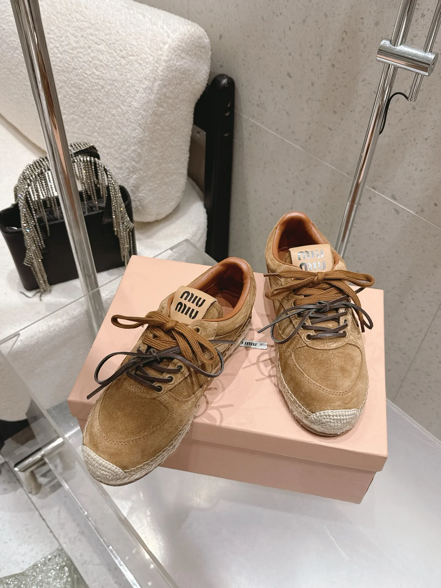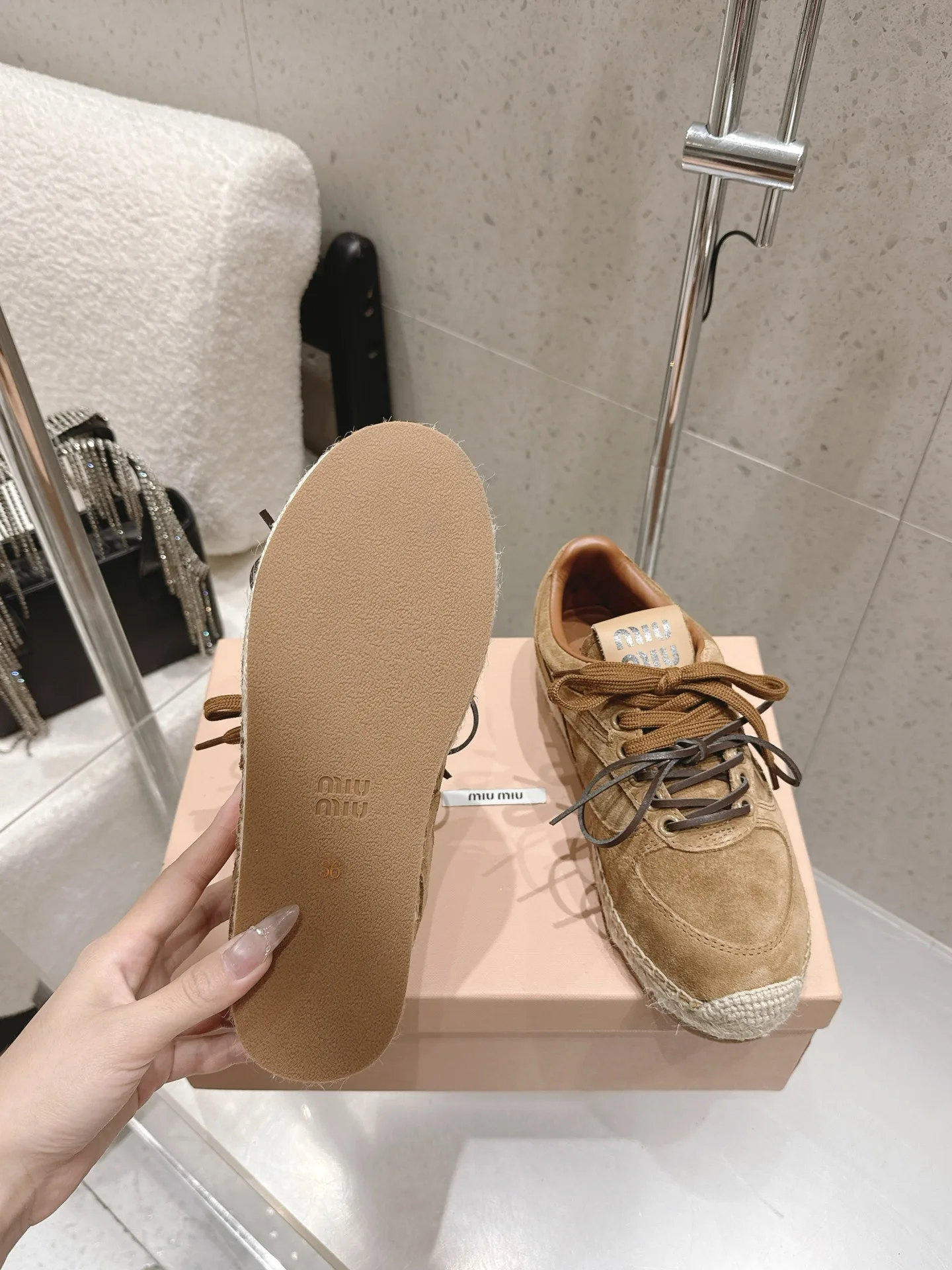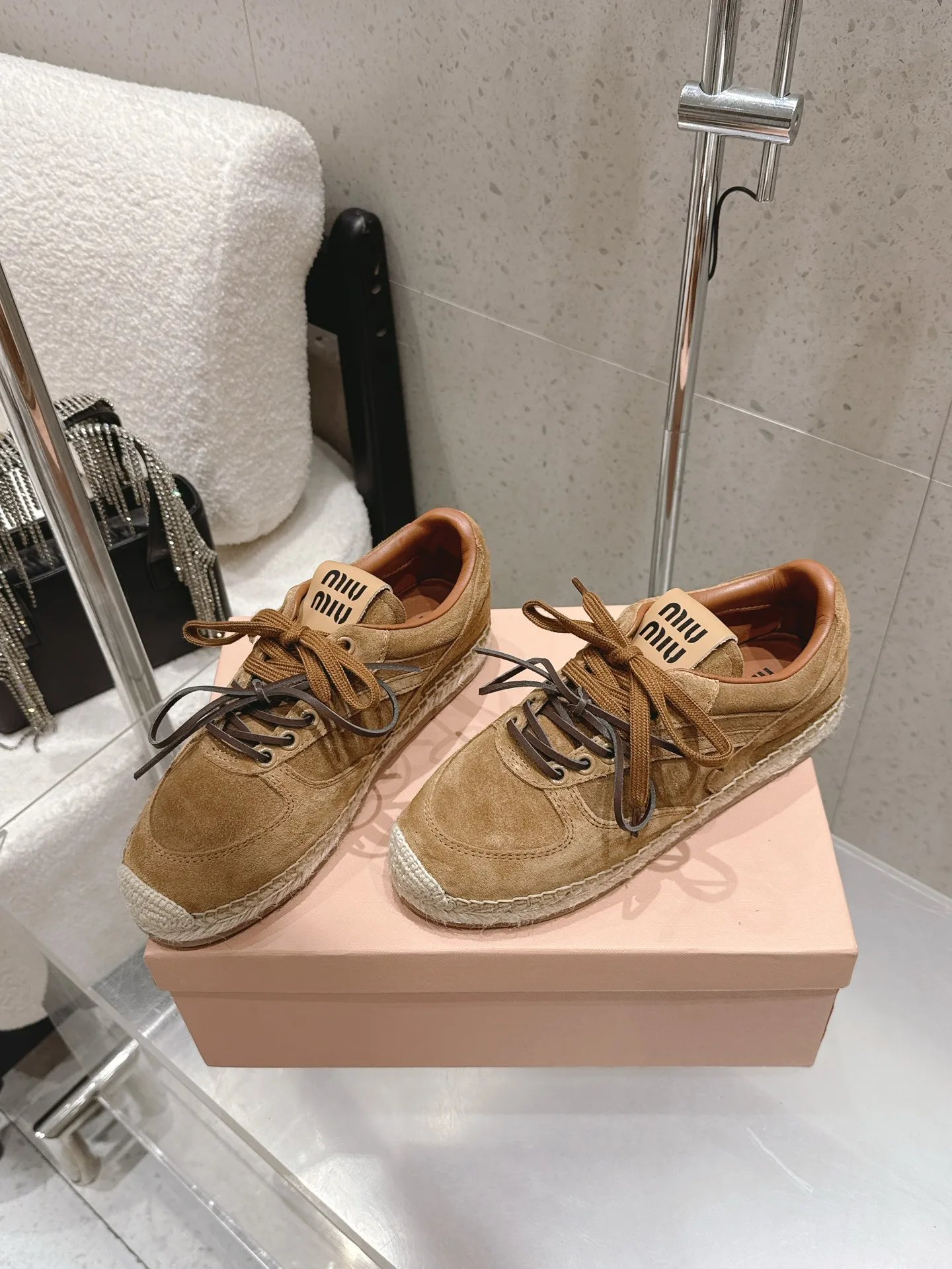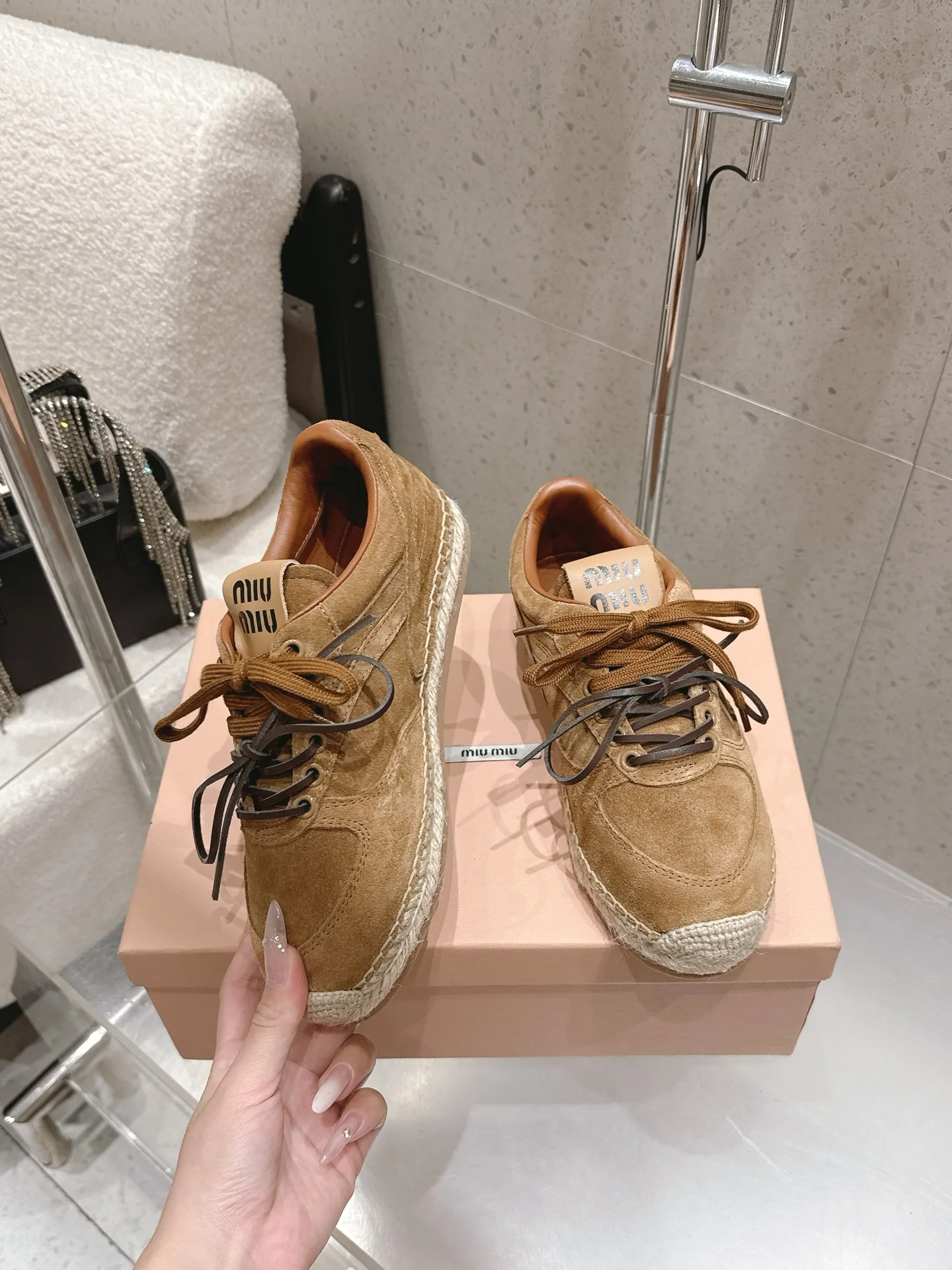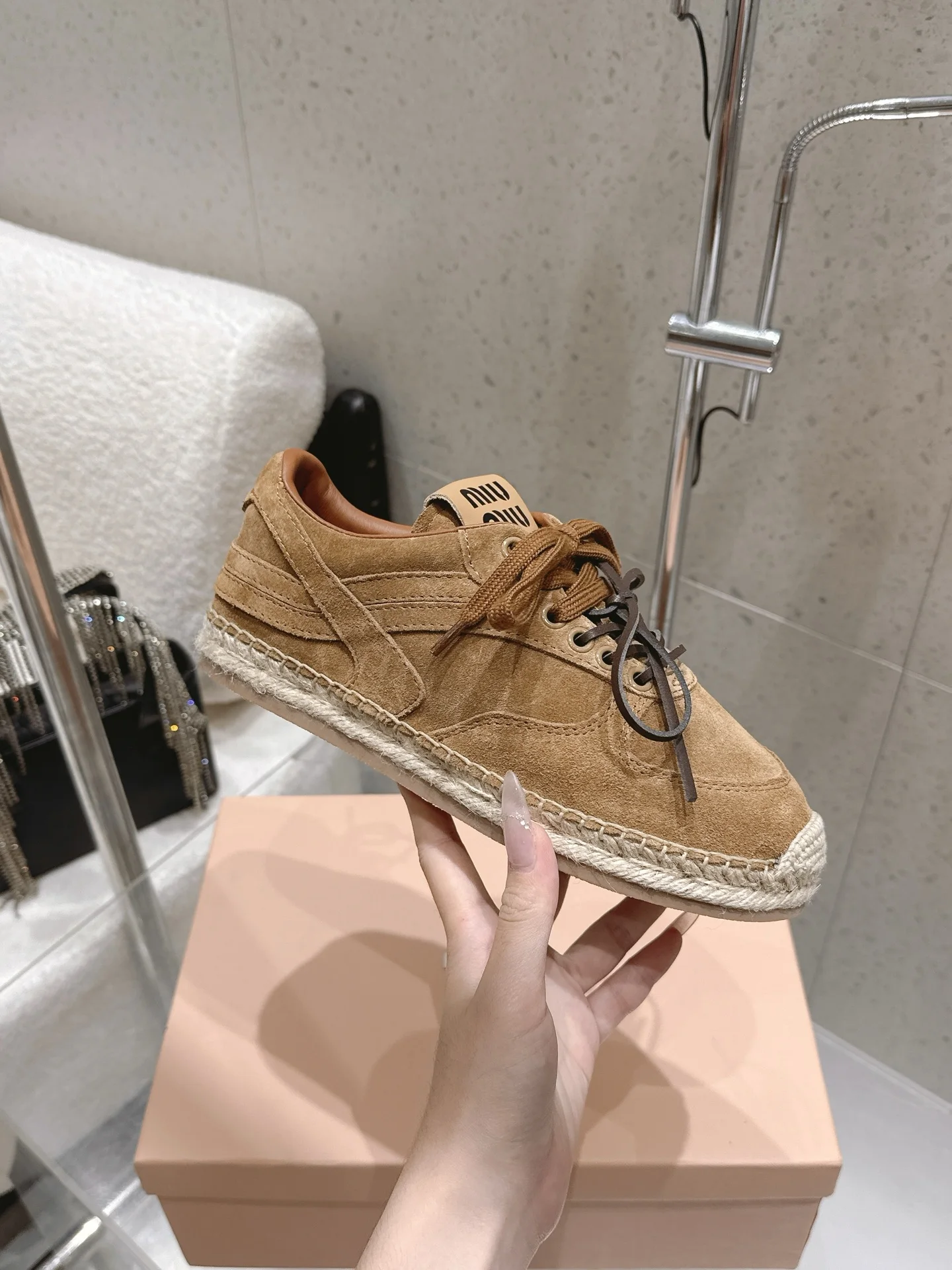 Miu Miu Spring/Summer latest straw-soled training shoes fisherman shoes