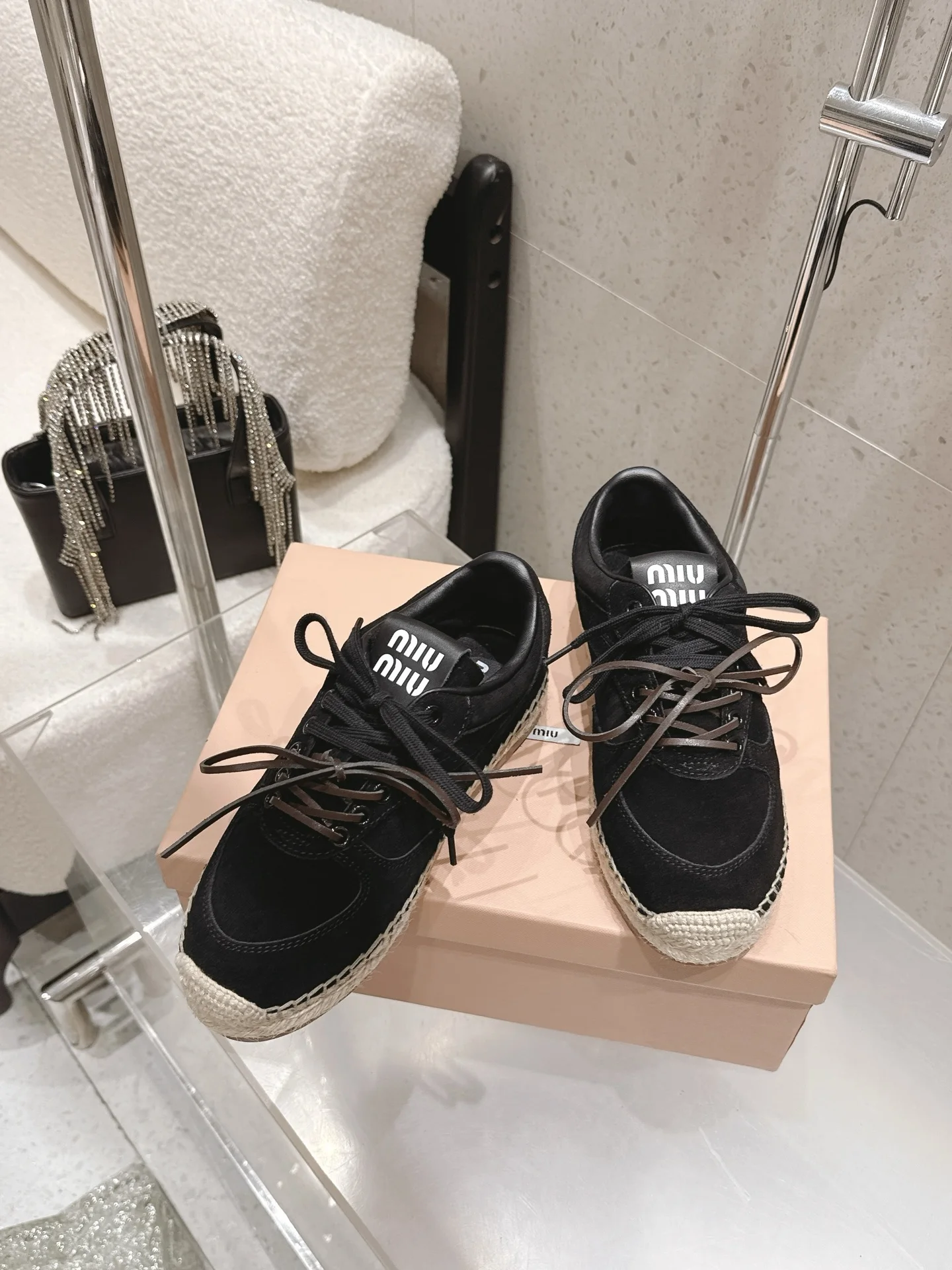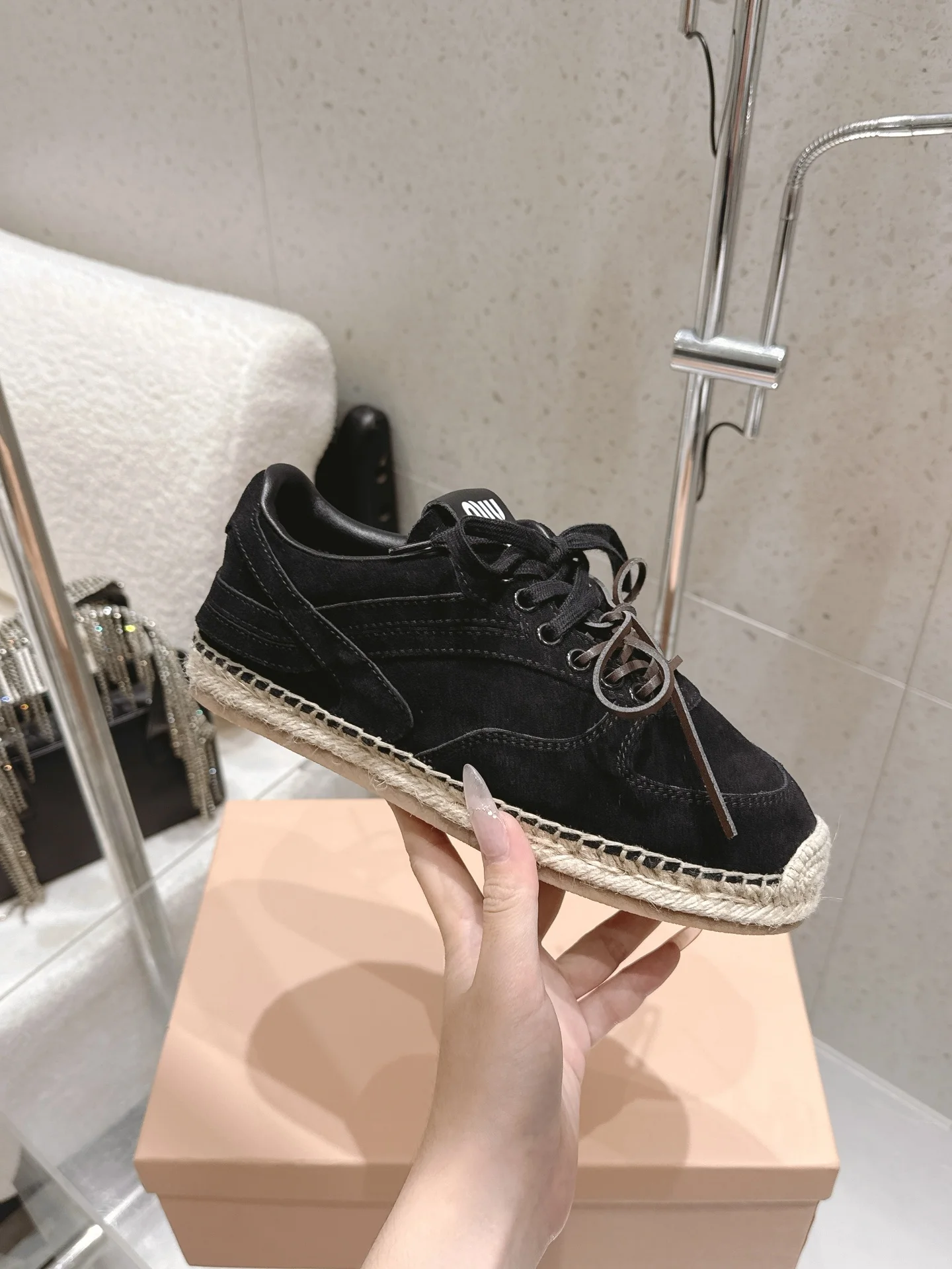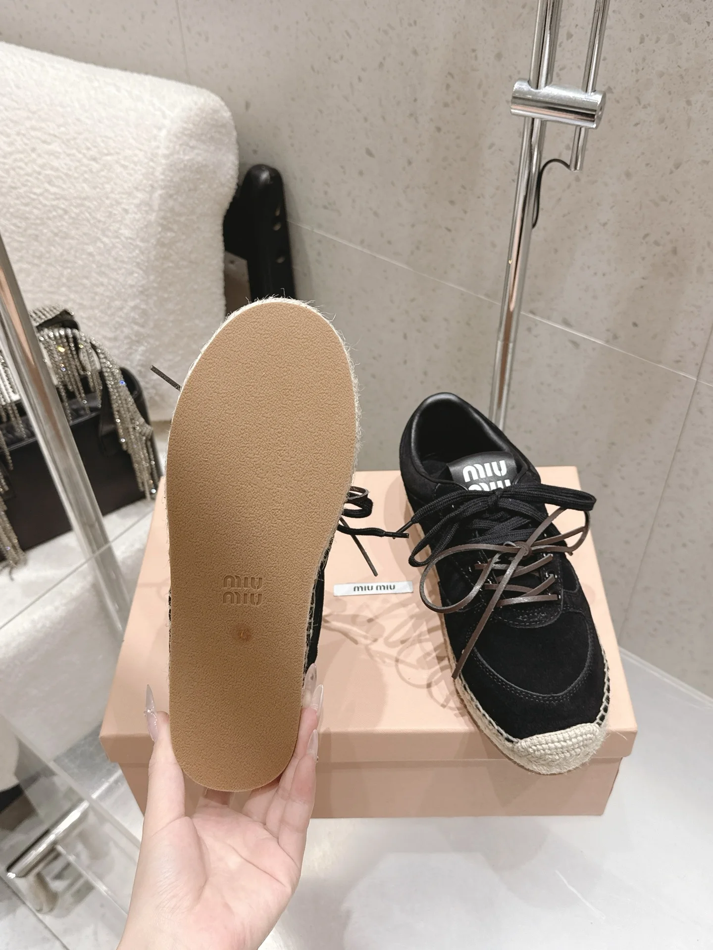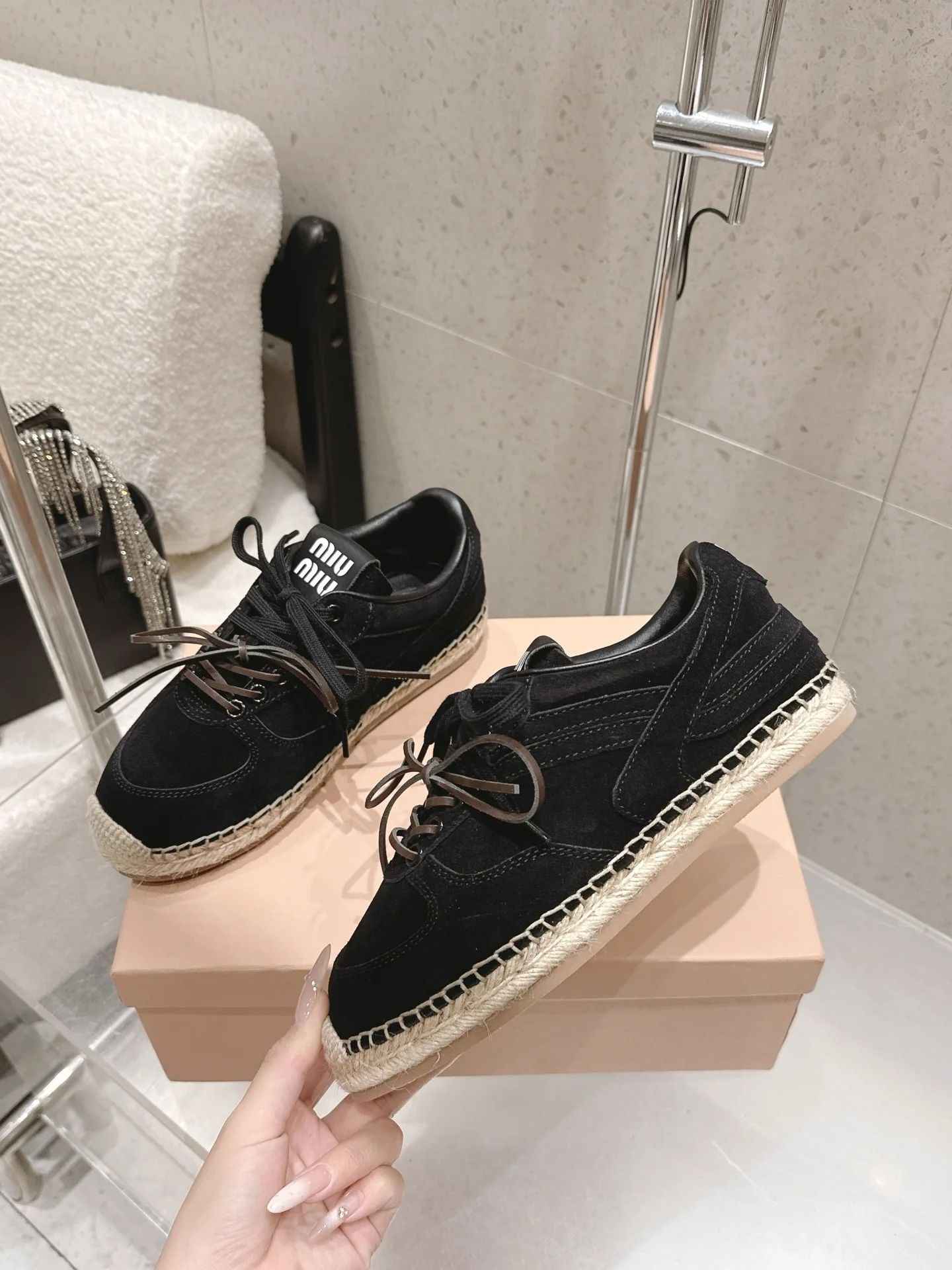 Miu Miu Spring/Summer latest straw-soled training shoes fisherman shoes