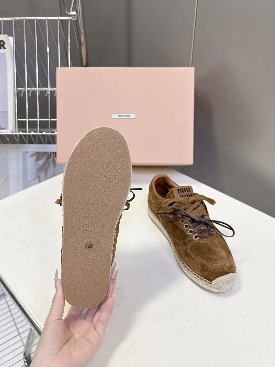 Highly recommended by numerous celebrities and influencers. This is a signature core item of the brand s miu-style girl aesthetic, perfectly blending retro casualness with a youthful vibe, suitable for various styling scenarios. The shoe is surrounded by natural jute rope woven edging, a classic element of fisherman shoes, which brings a retro relaxed feel while enhancing the shoe s recognizability. The tongue/insole features an imprint of