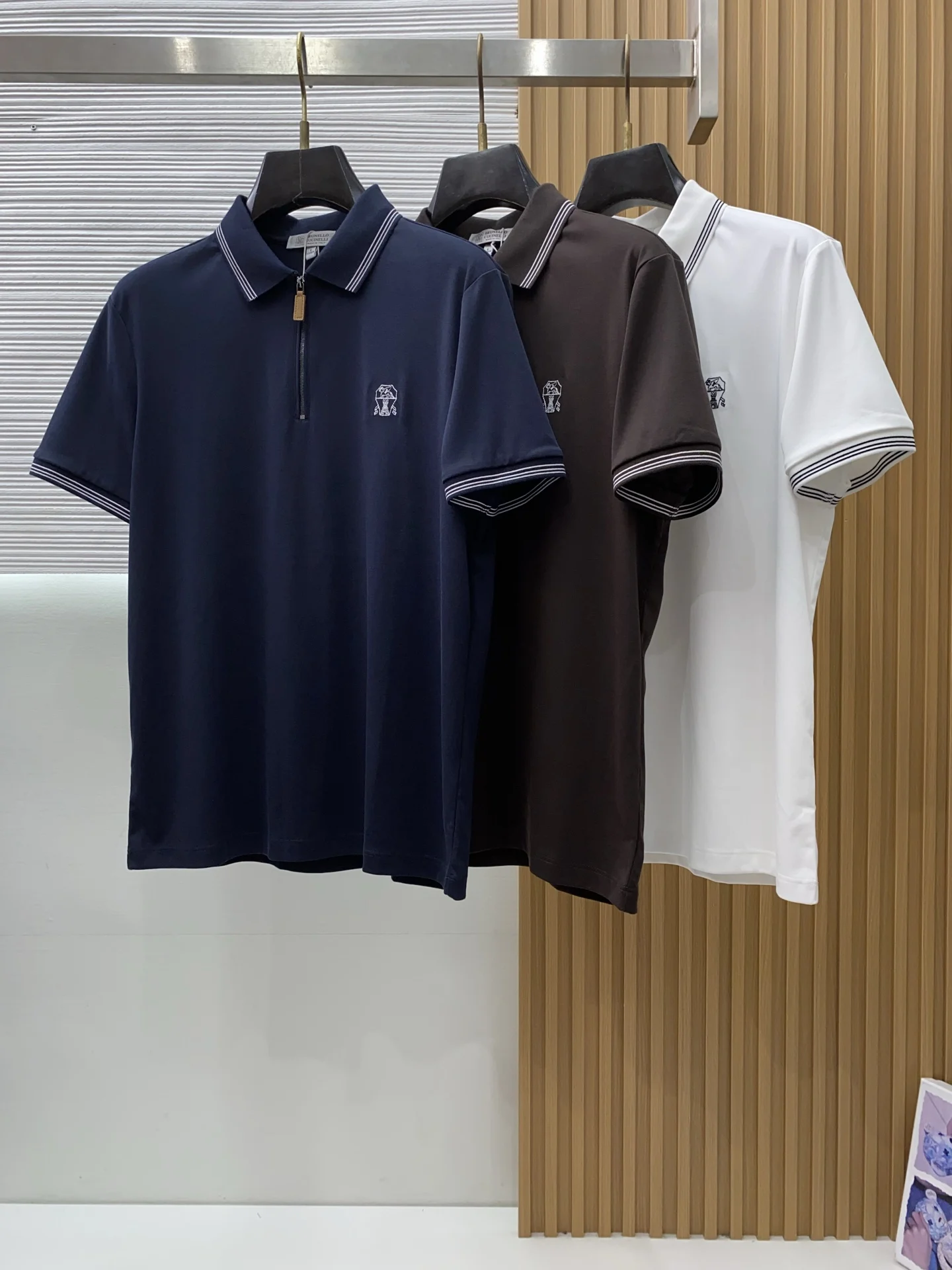 Brunello Cucinelli Spring and Summer New Silk Cotton Polo with Collar for Business