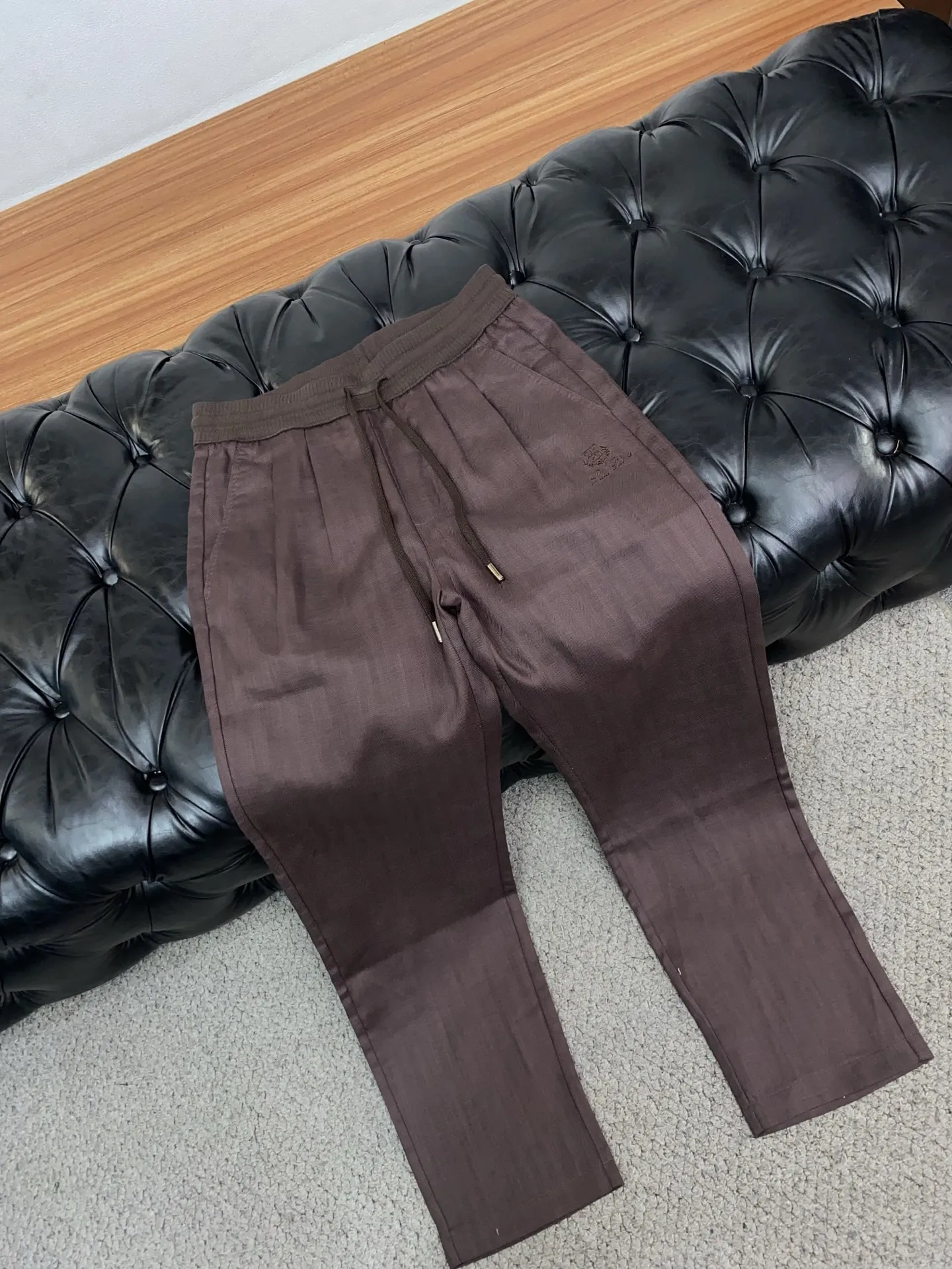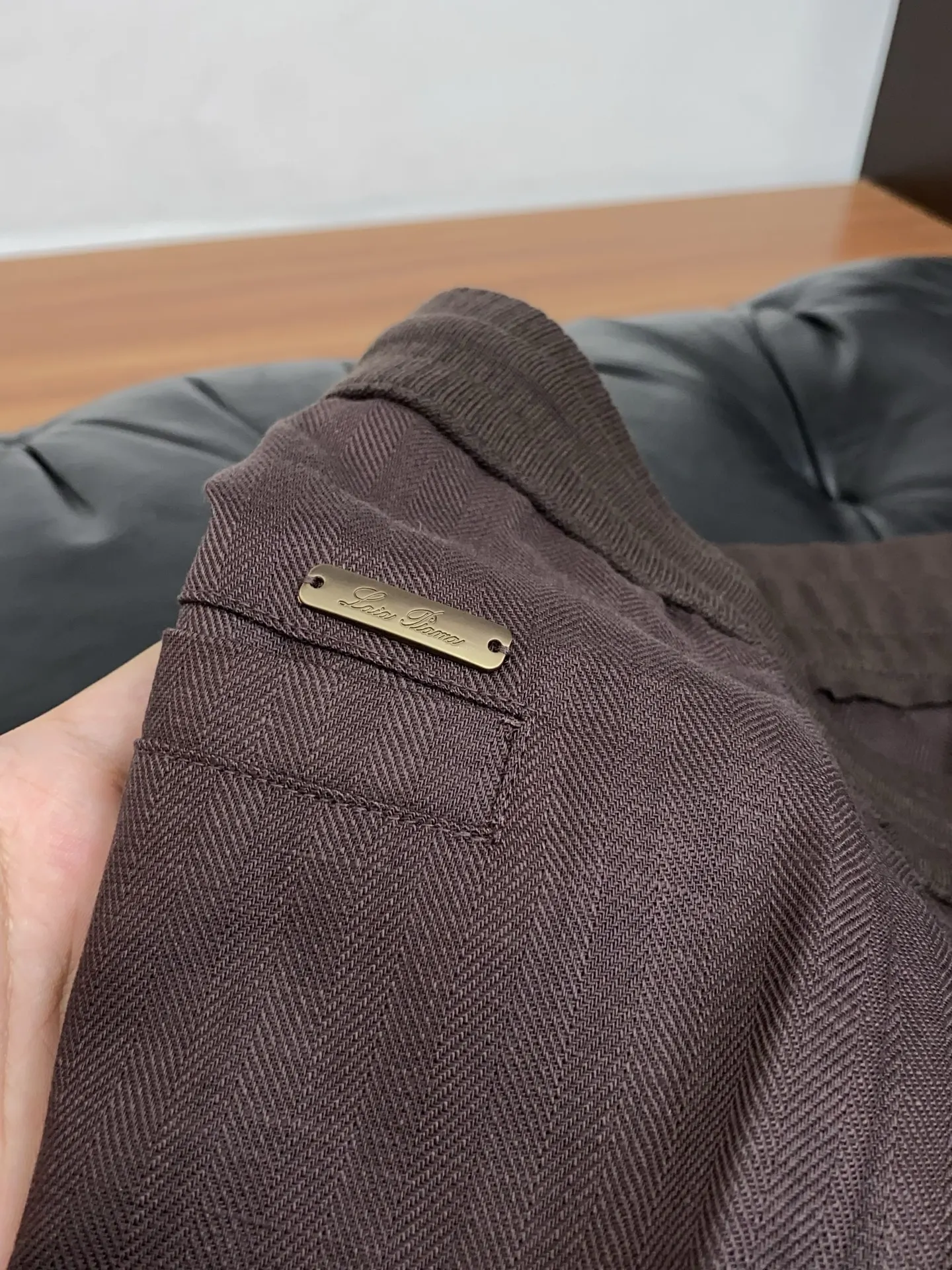 LP Noyou Piana 2026 Spring/Summer New Collection Linen Casual Pants with clean and sharp tailoring, full of urban style. Made from finely woven fabric that feels soft and dry, the fit is structured and stylish. The hardware is exquisite, making it a great choice for business casual. With so many top-quality materials, it creates a high-end product with unparalleled value, a top choice for high-end fashion trendsetters.