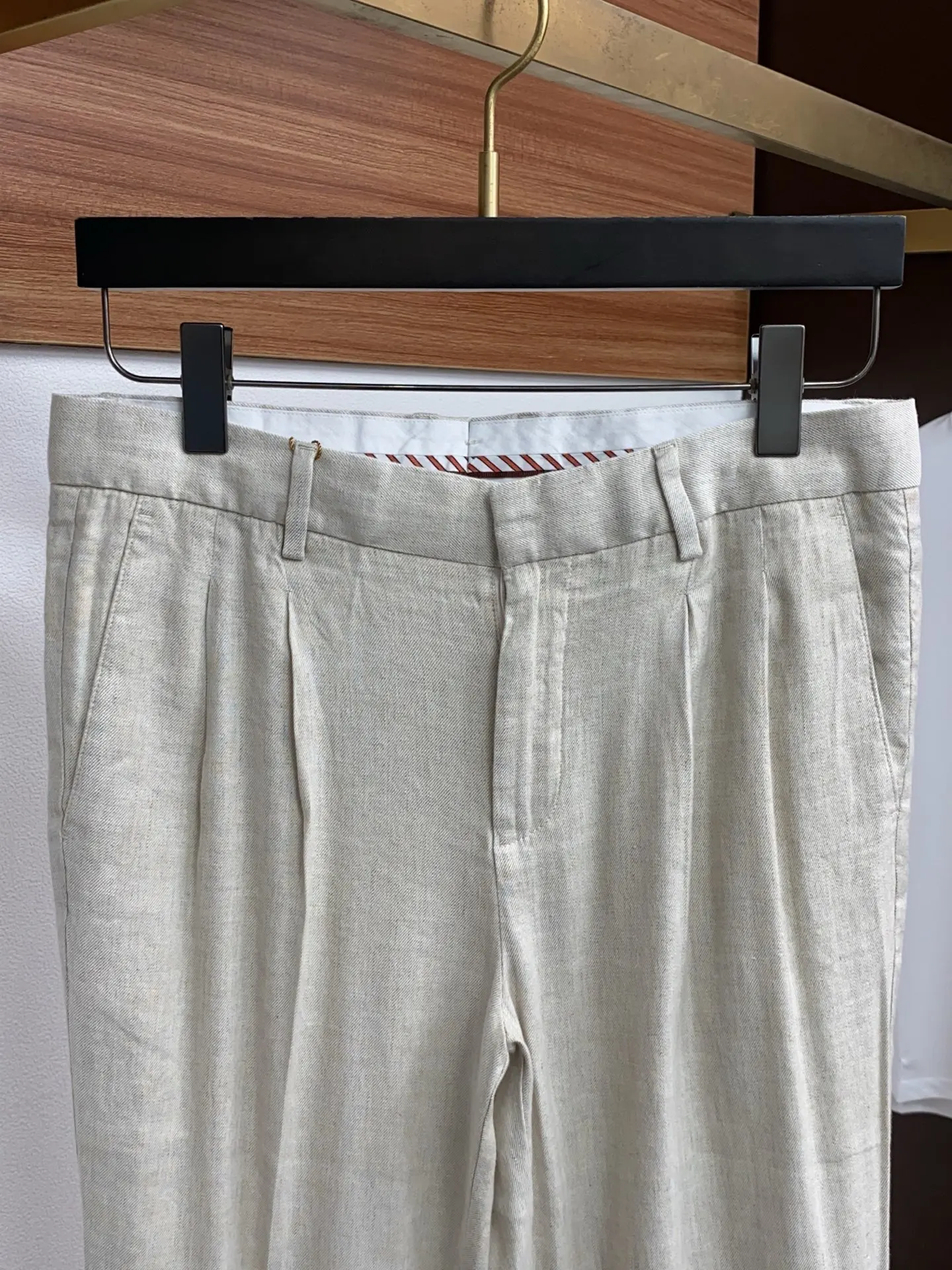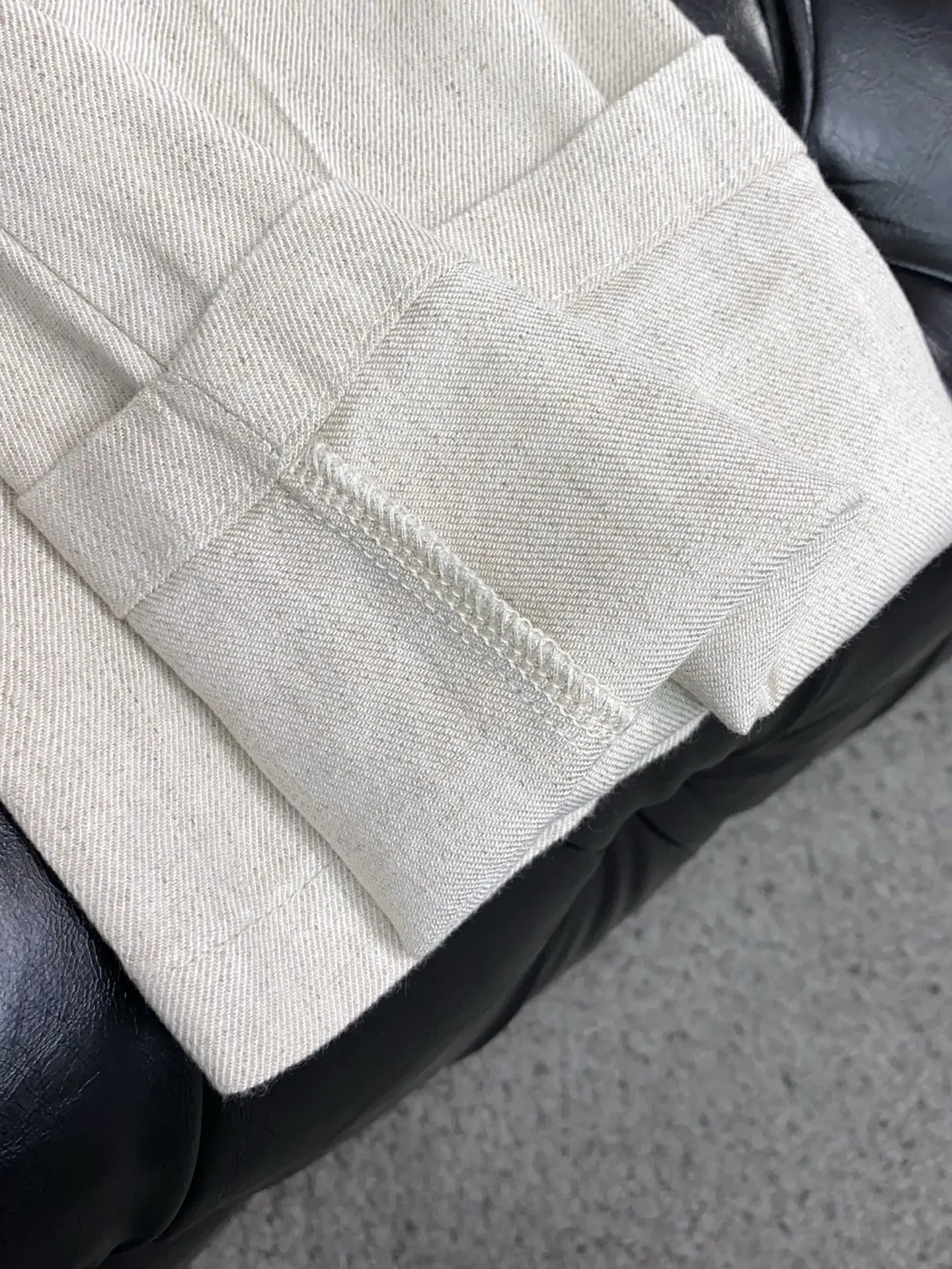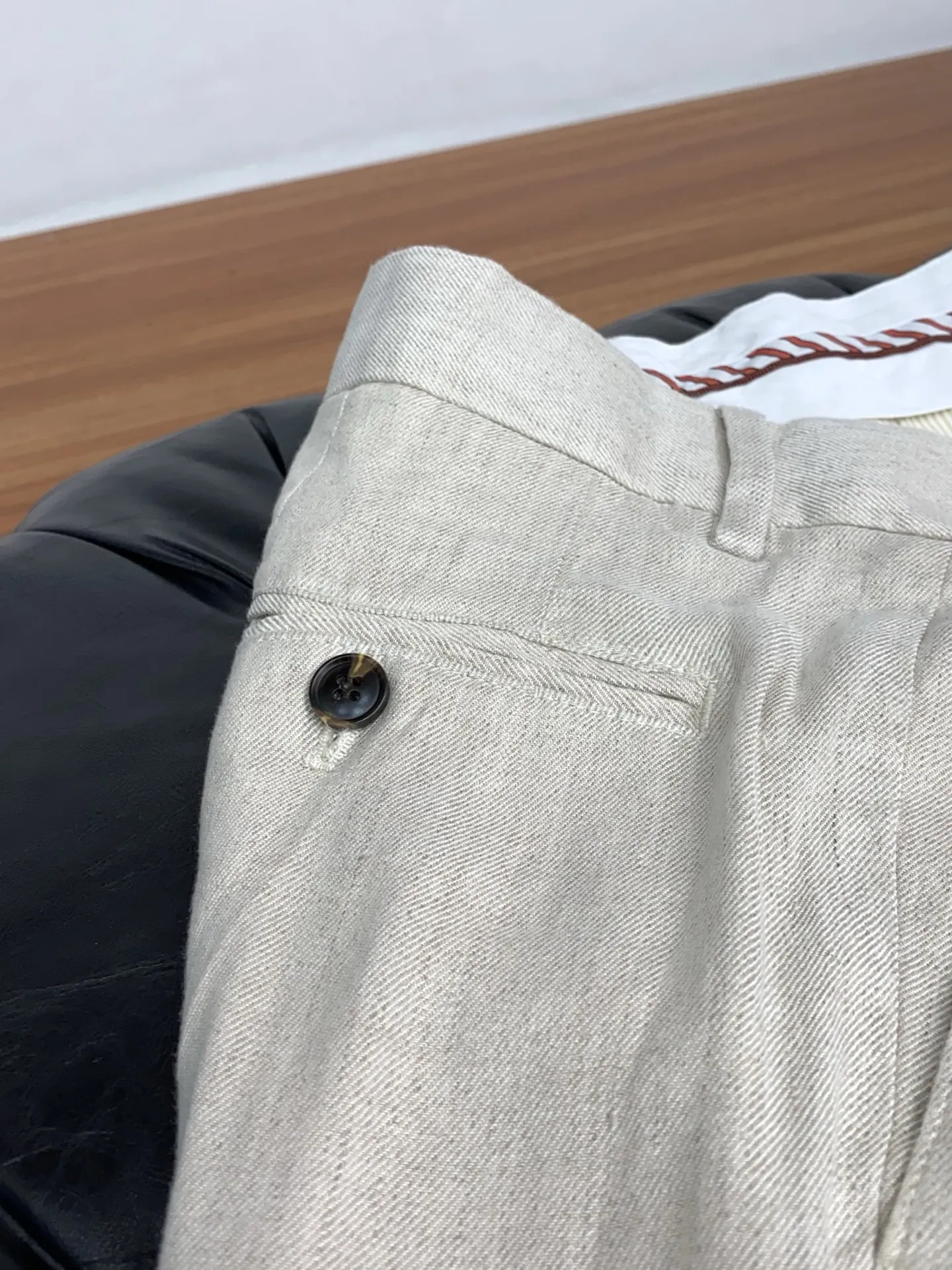 LP Noyou Pianya 2026 Spring/Summer New Collection Linen Suit Casual Pants with clean and sharp tailoring, full of urban style. Made from finely woven fabric that feels soft and dry, the fit is structured and stylish. The hardware is exquisite, making it very attractive for both business and casual wear. With so many top-quality materials, it creates an unparalleled sense of value in high-end products, making it the first choice for high-end fashion trendsetters.