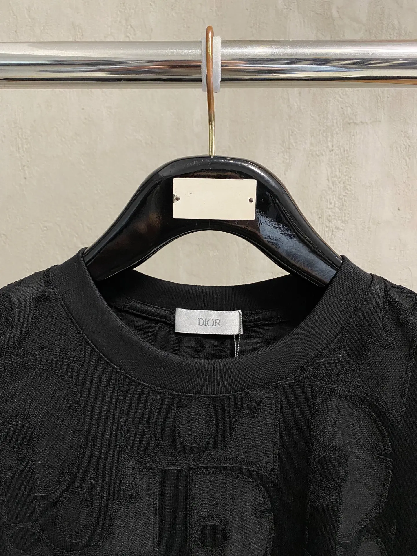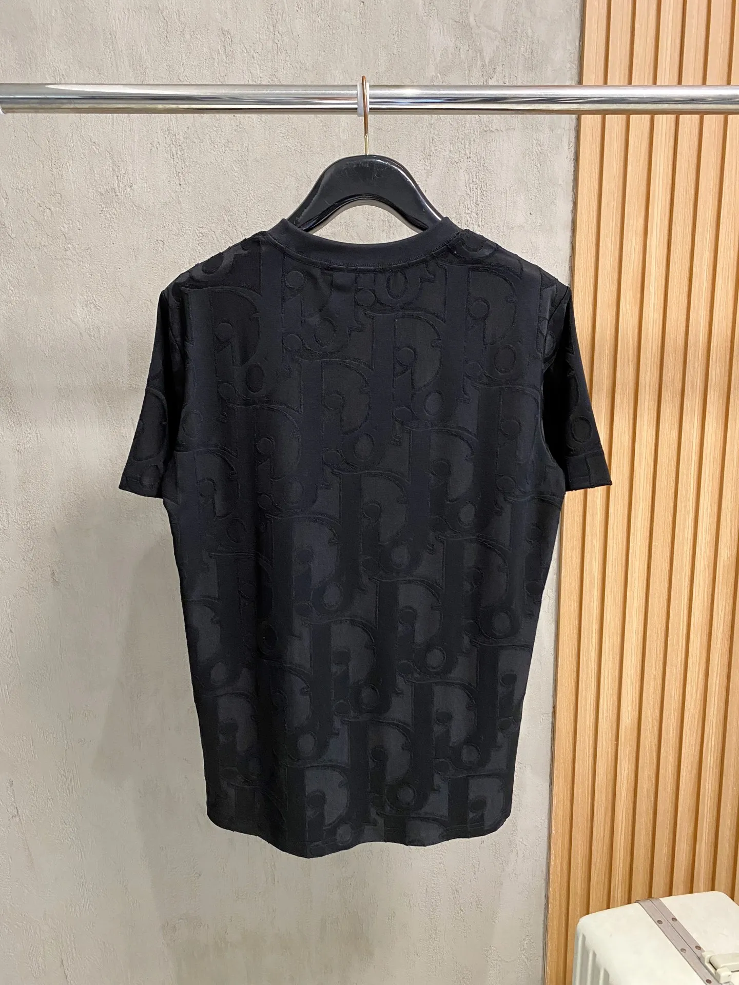 Dio 26ss new products, the official website is always undefeated, classic styles, permanent boutique, eternal co-branded CD letter all-over dark pattern logo, heavy craftsmanship, unisex, short-sleeve t-shirt custom fabric, original development. This piece is from the 2025 beachwear limited series, featuring a full logo jacquard towel that highlights the classic Obliave flower, paired with a S-shaped round neck and stitching, unique in style. Colors: Black, White.