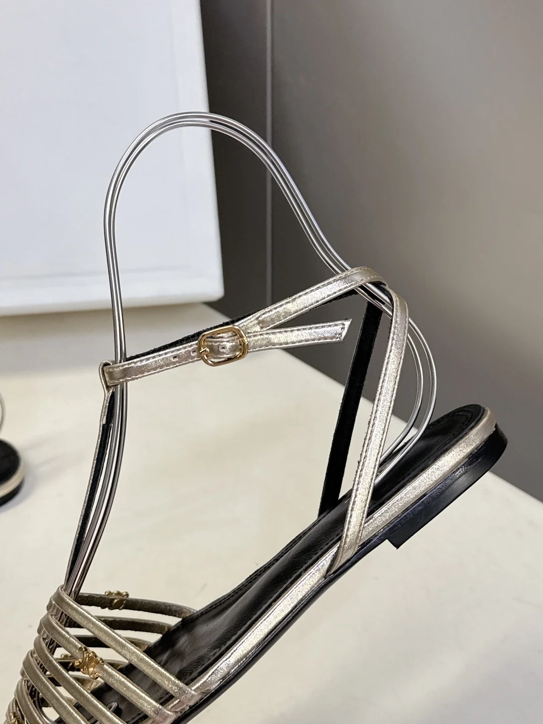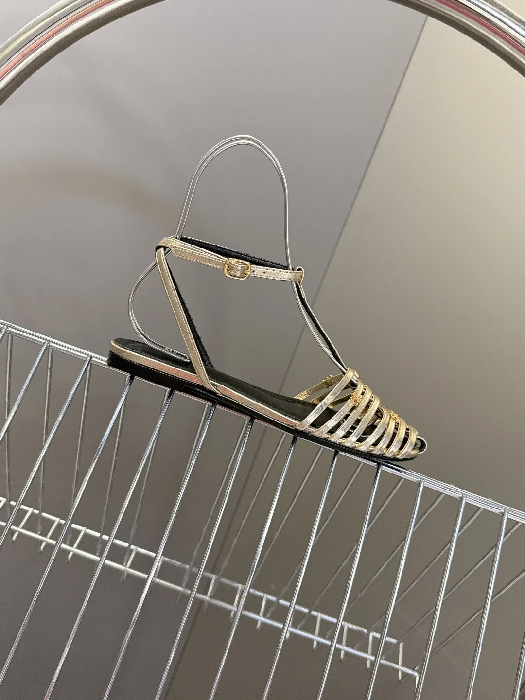 A favorite among numerous celebrities and influencers, this item represents the brand s French minimalist aesthetic, perfectly suited for various summer vacation and daily commuting outfits. The toe area features a design woven from multiple parallel leather strips, which is both vintage and breathable, embodying the classic essence of Roman sandals while also flattering the foot shape. The insole is clearly embossed.