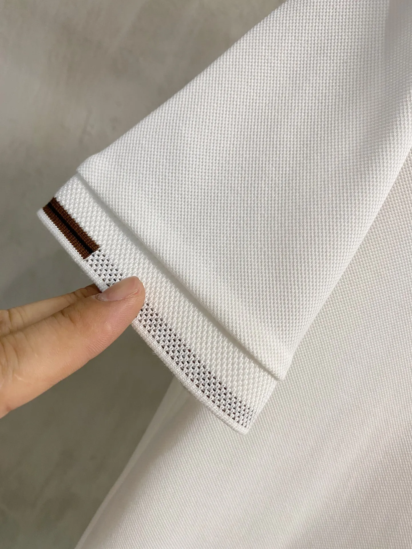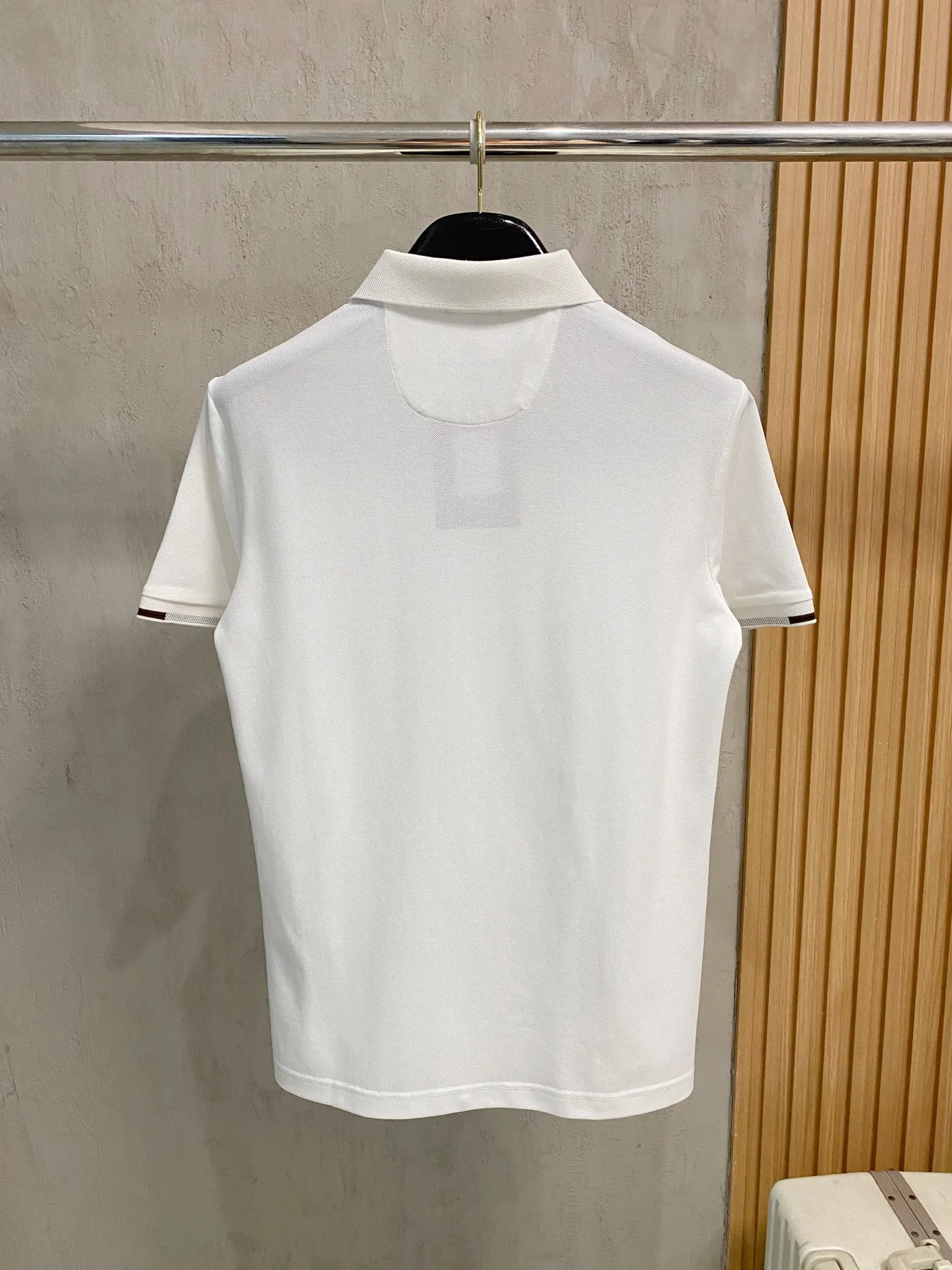 Crafted from 100% custom-woven mesh pique, the fabric features a uniformly arranged mesh texture on the surface, providing excellent breathability and moisture-wicking properties, with a comfort level far superior to ordinary single-sided sweat fabric! The classic brand logo on the chest is created using top-notch embroidery technology, making the logo three-dimensional, clear, and full, with extraordinary quality, making it a classic piece whether worn alone or layered! The exquisite cutting craftsmanship ensures that every detail is handled with precision and delicacy, unmatched by typical low-end products on the market, making it a must-have basic versatile polo shirt for men!
