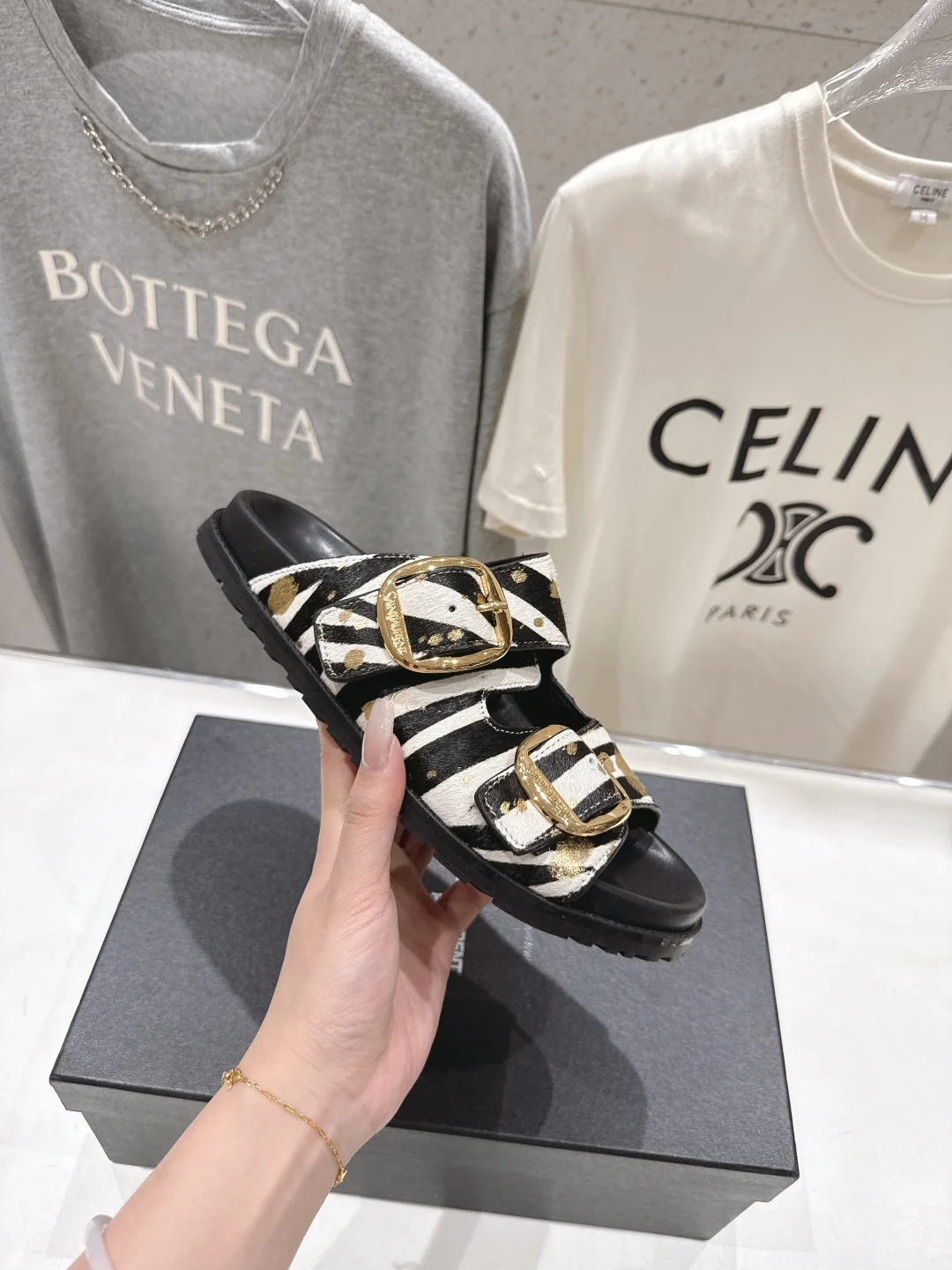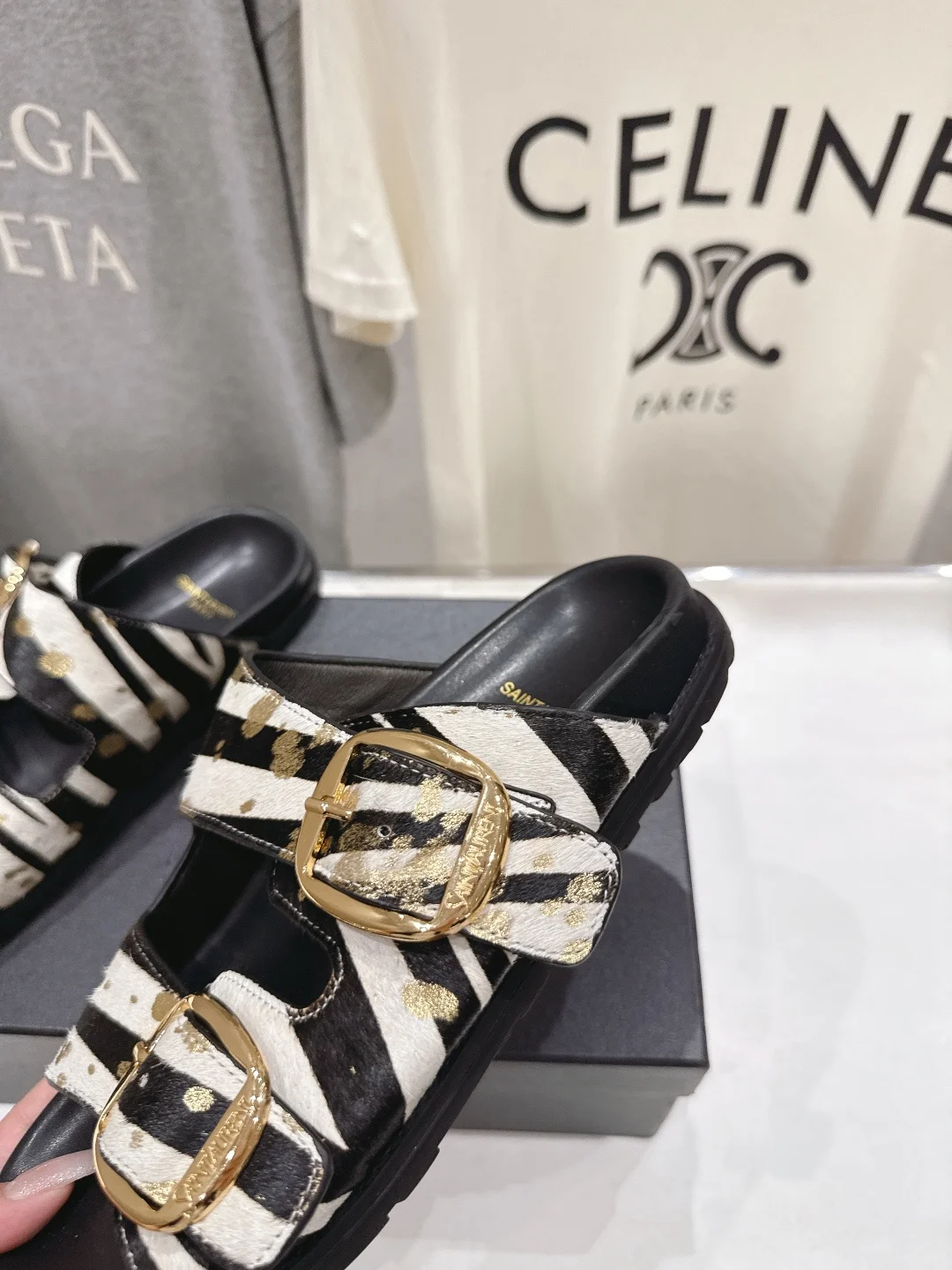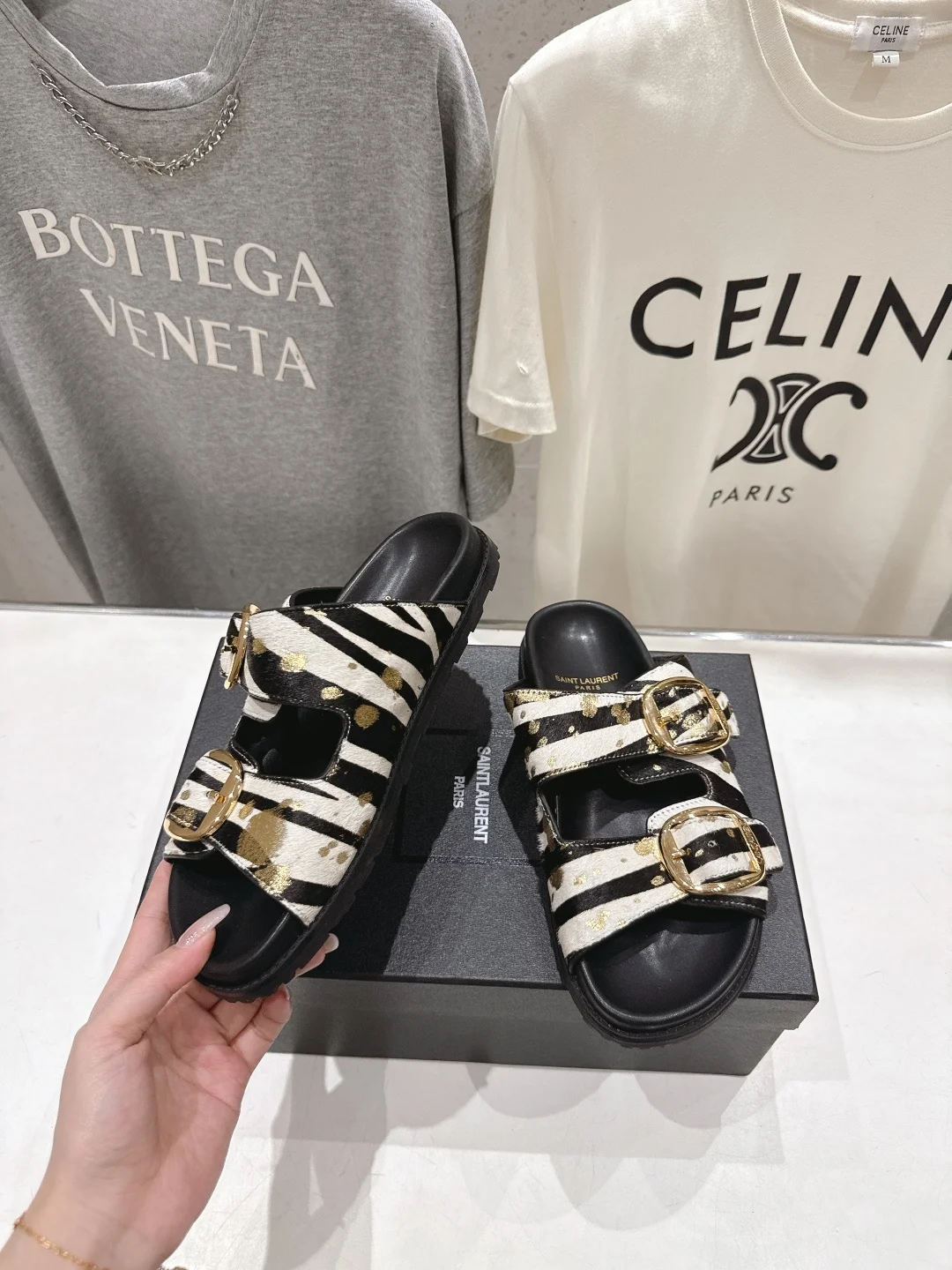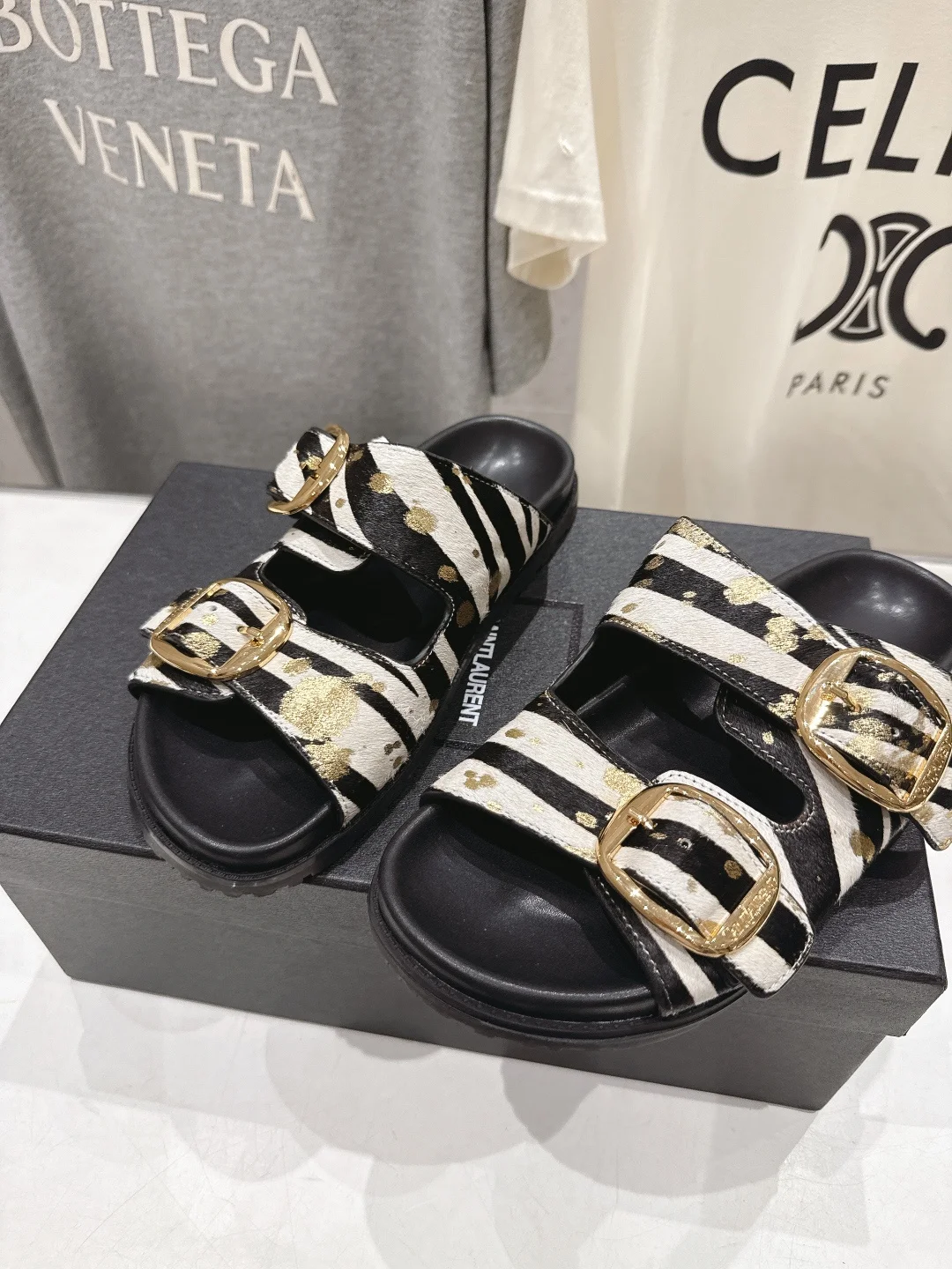 SAINT LAURENT F013 Saint Laurent YSL 2026SS Summer New Double-Buckle Flat Beach Slippers, the perfect choice for streetwear, a hot-selling item that is sold out in stores.
