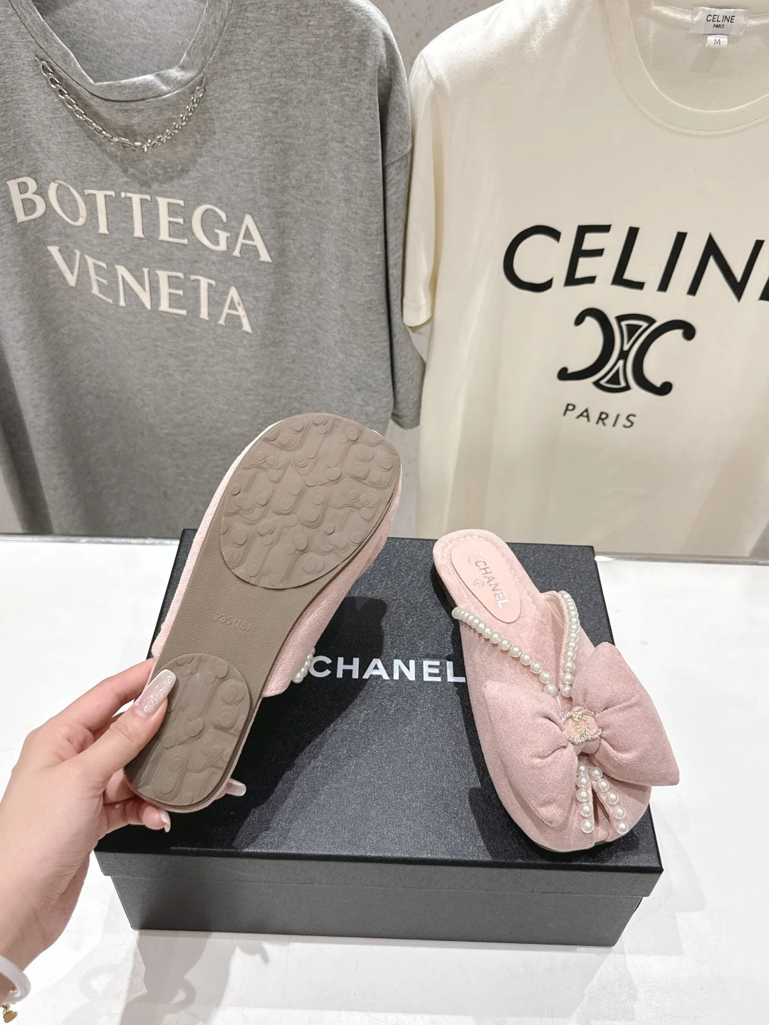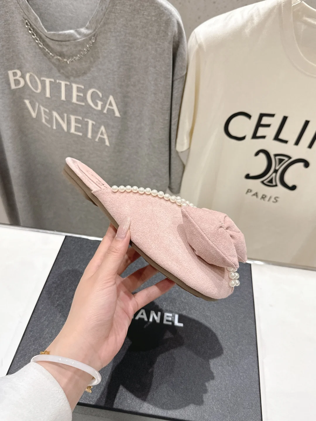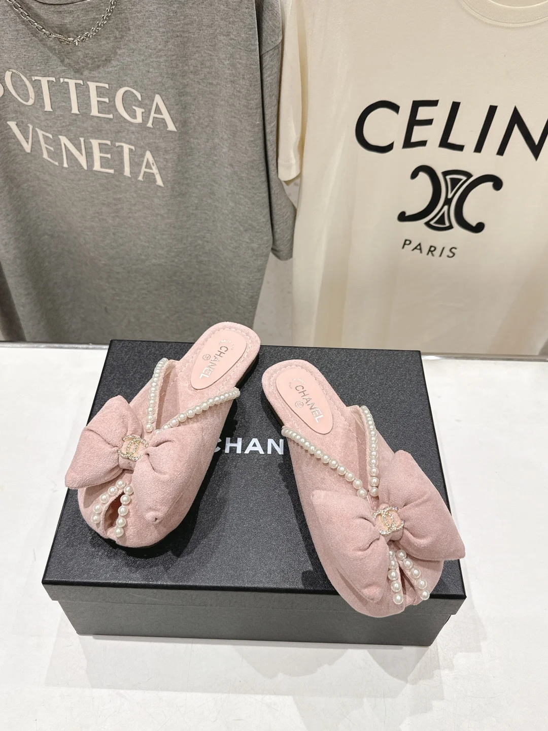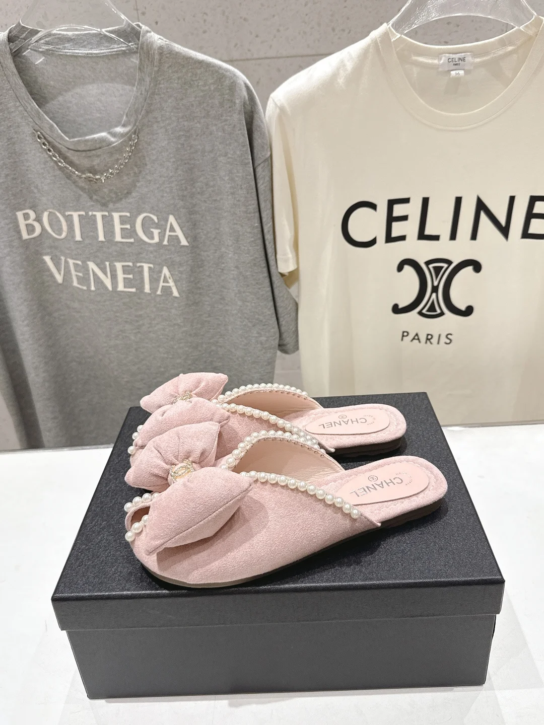 Chanel* F036 Little香奈儿 2026ss Summer New Pearl Bow Flat Slippers