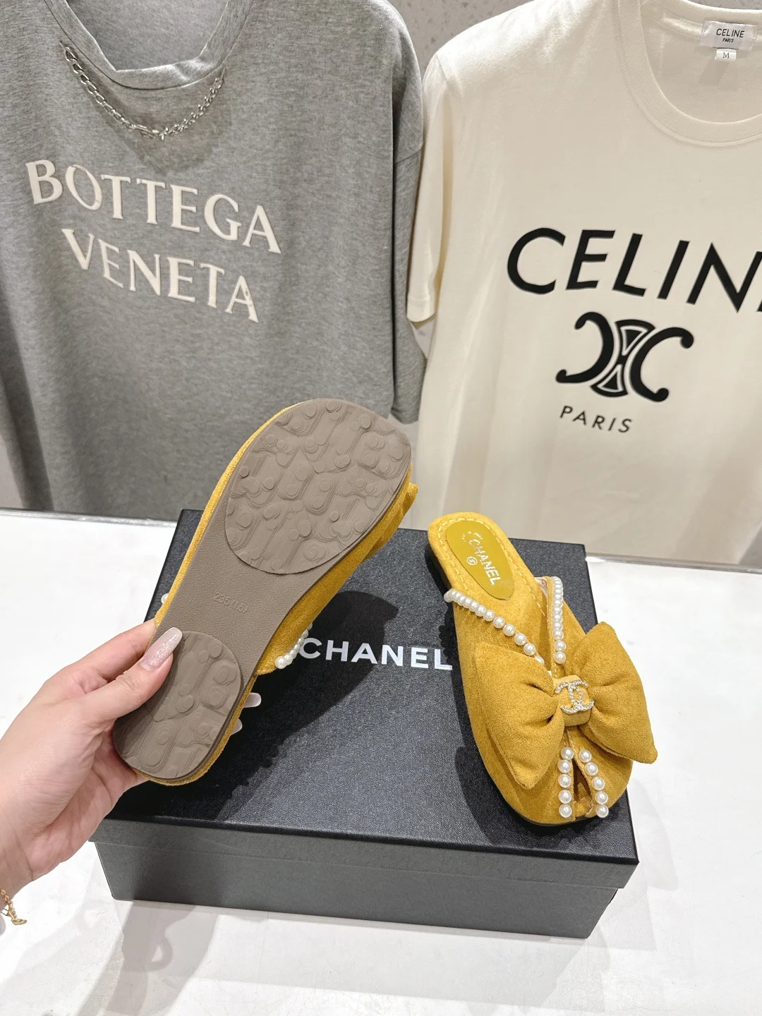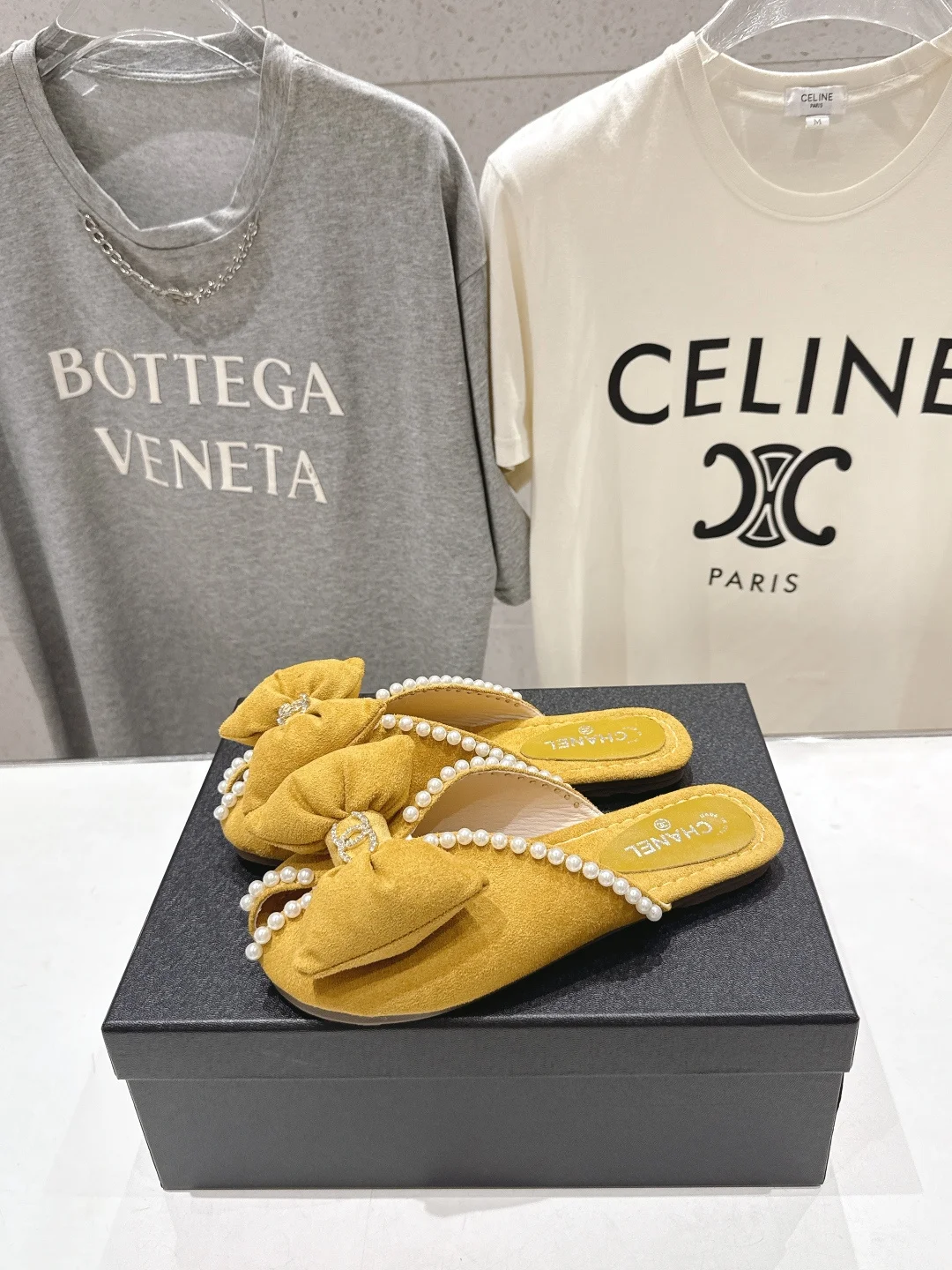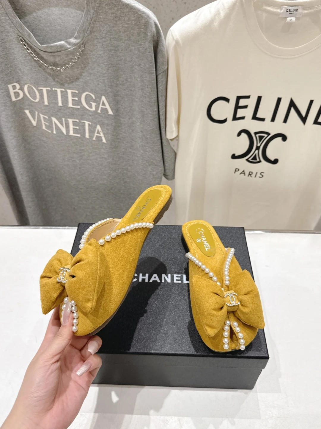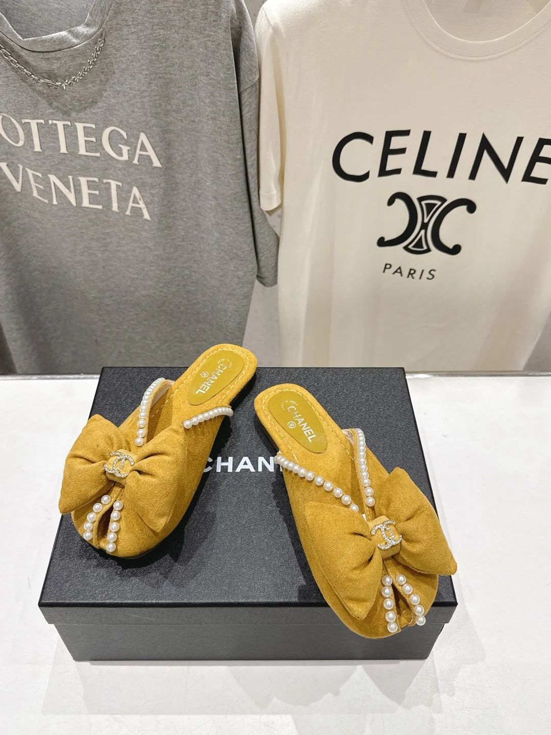 Chanel Summer New Pearl Bow Flat Slippers Women s Flat Slippers