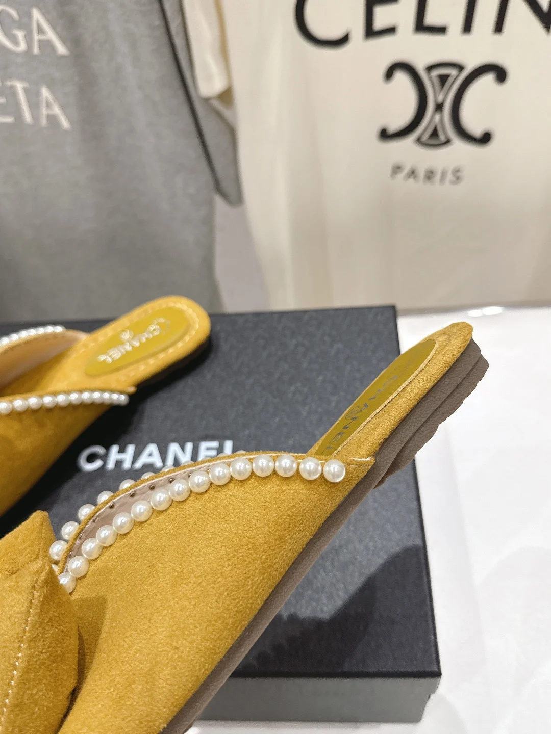 Chanel* F036 Little香奈儿 2026ss Summer New Pearl Bow Flat Slippers