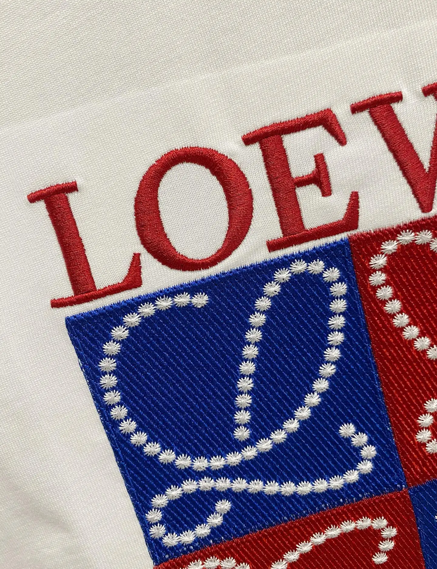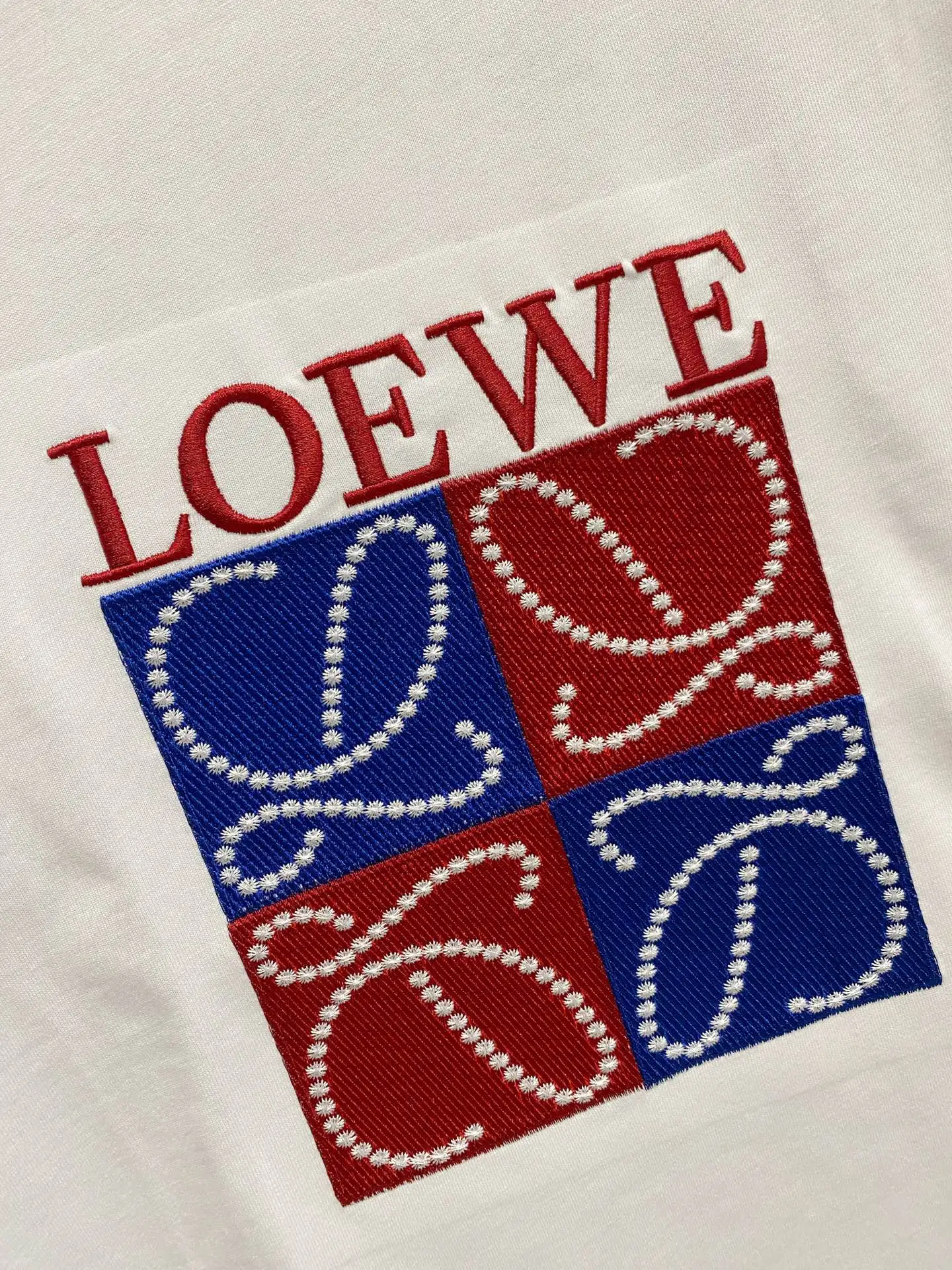 Loew* 2026 Spring/Summer New Collection Classic Personalized Totem Three-Dimensional Embroidery Craft Logo Custom Fabric Short Sleeve T-Shirt UnisexColor: Black, WhiteSize: S-2XL
