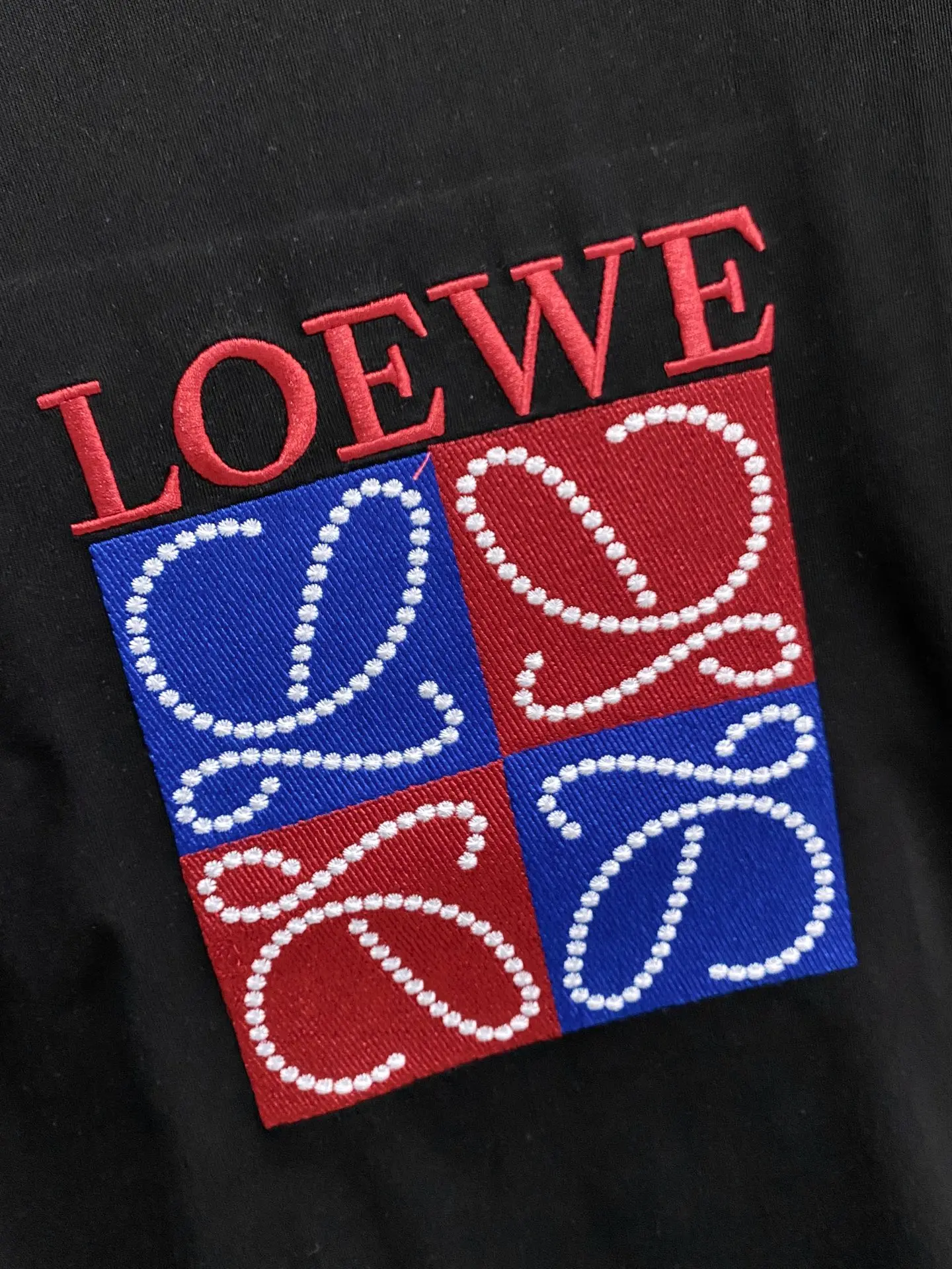 Loew* 2026 Spring/Summer New Collection Classic Personalized Totem Three-Dimensional Embroidery Craft Logo Custom Fabric Short Sleeve T-Shirt UnisexColor: Black WhiteSize: S-2XL
