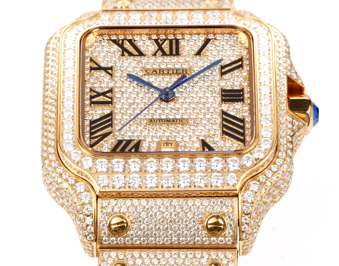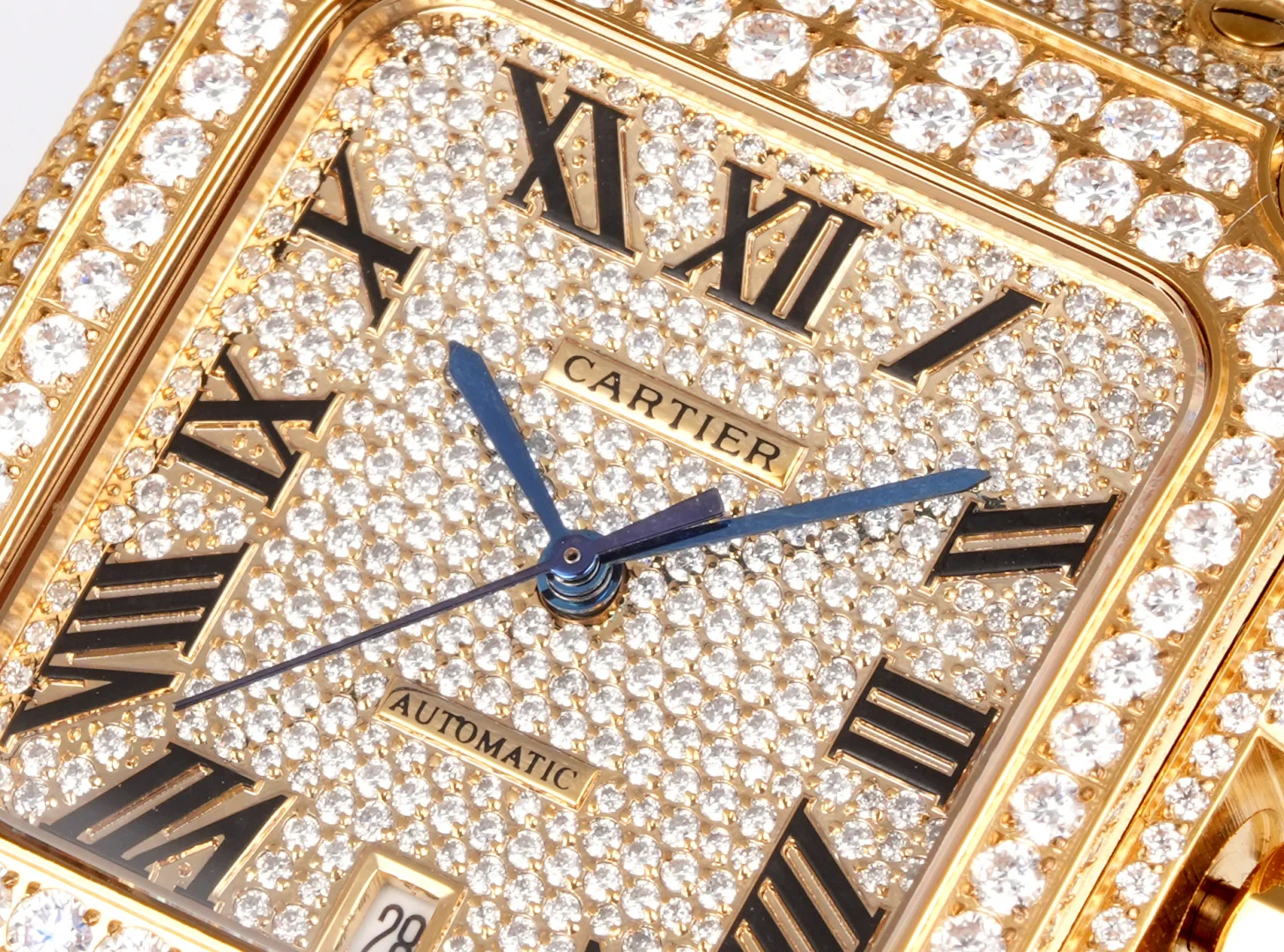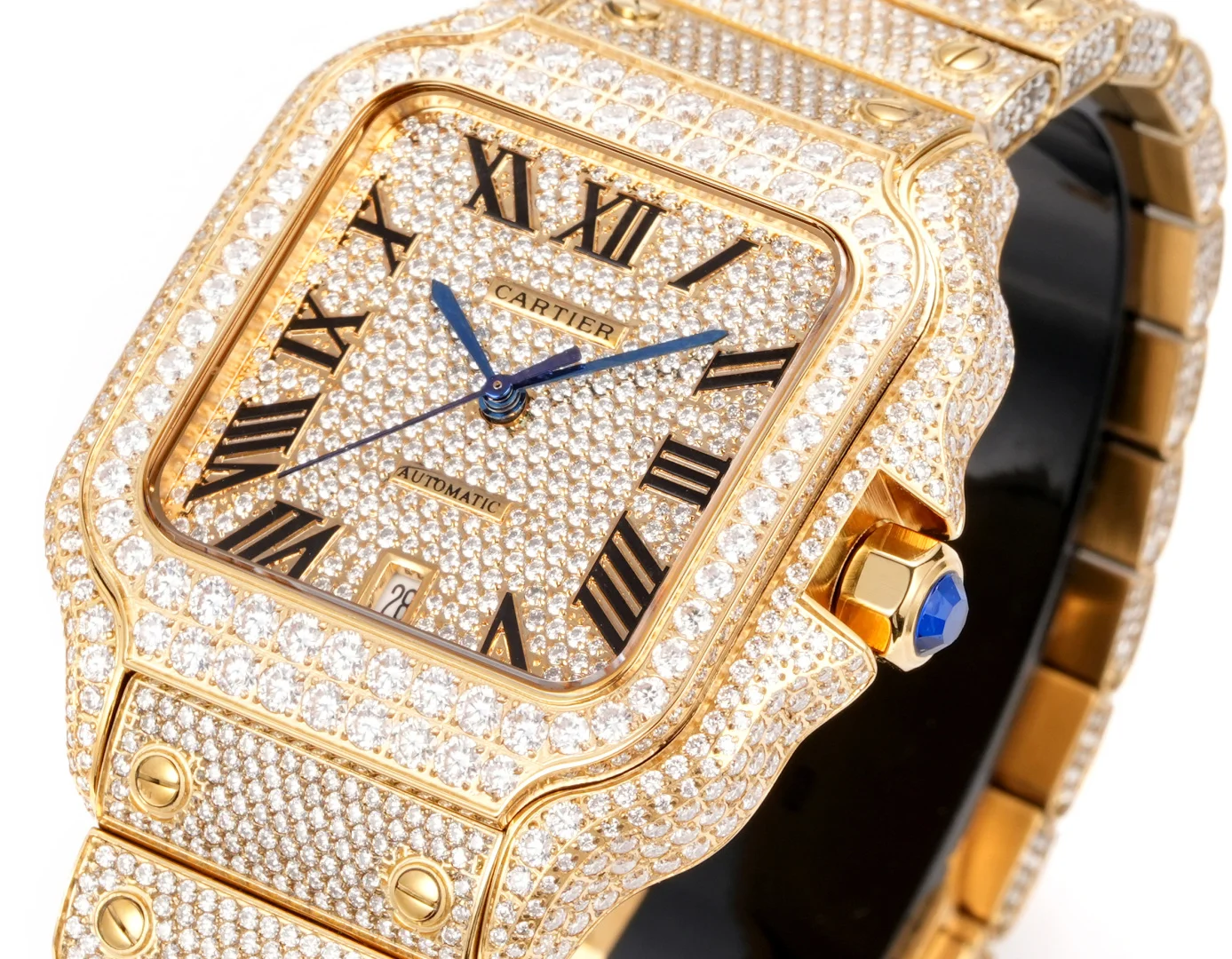 Extremely luxurious! Very limited stock! The Starry Sky Cartier Santos Starry Sky Moissanite version features a fully handcrafted watch set with D color VVS grade moissanite diamonds (Moissanite diamond). All stones can be tested with a professional testing pen. Moissanite diamonds (Moissanite diamond) have a refractive index of 2.65-2.69 (diamond 2.42), exhibiting the same brilliance as diamonds.