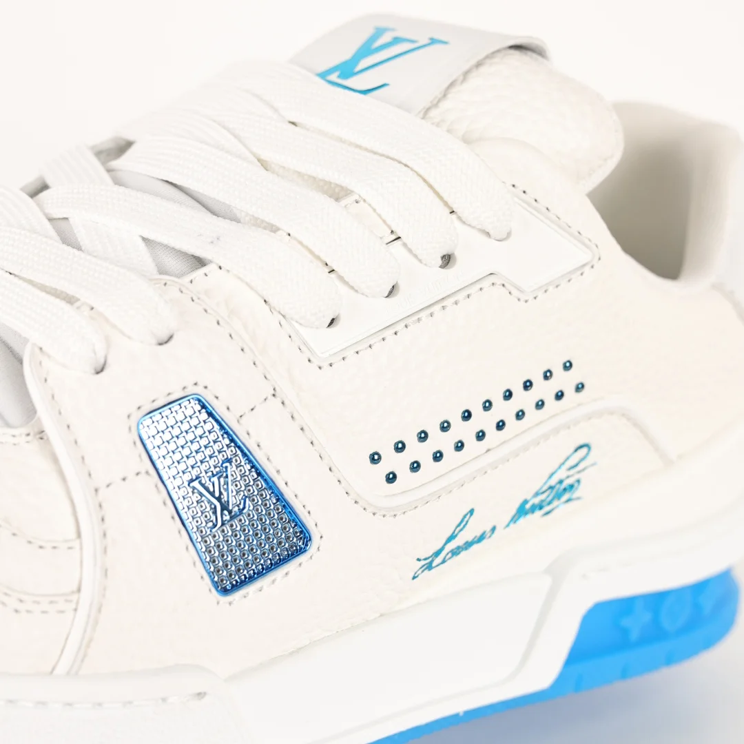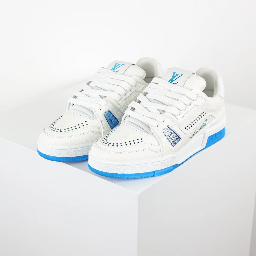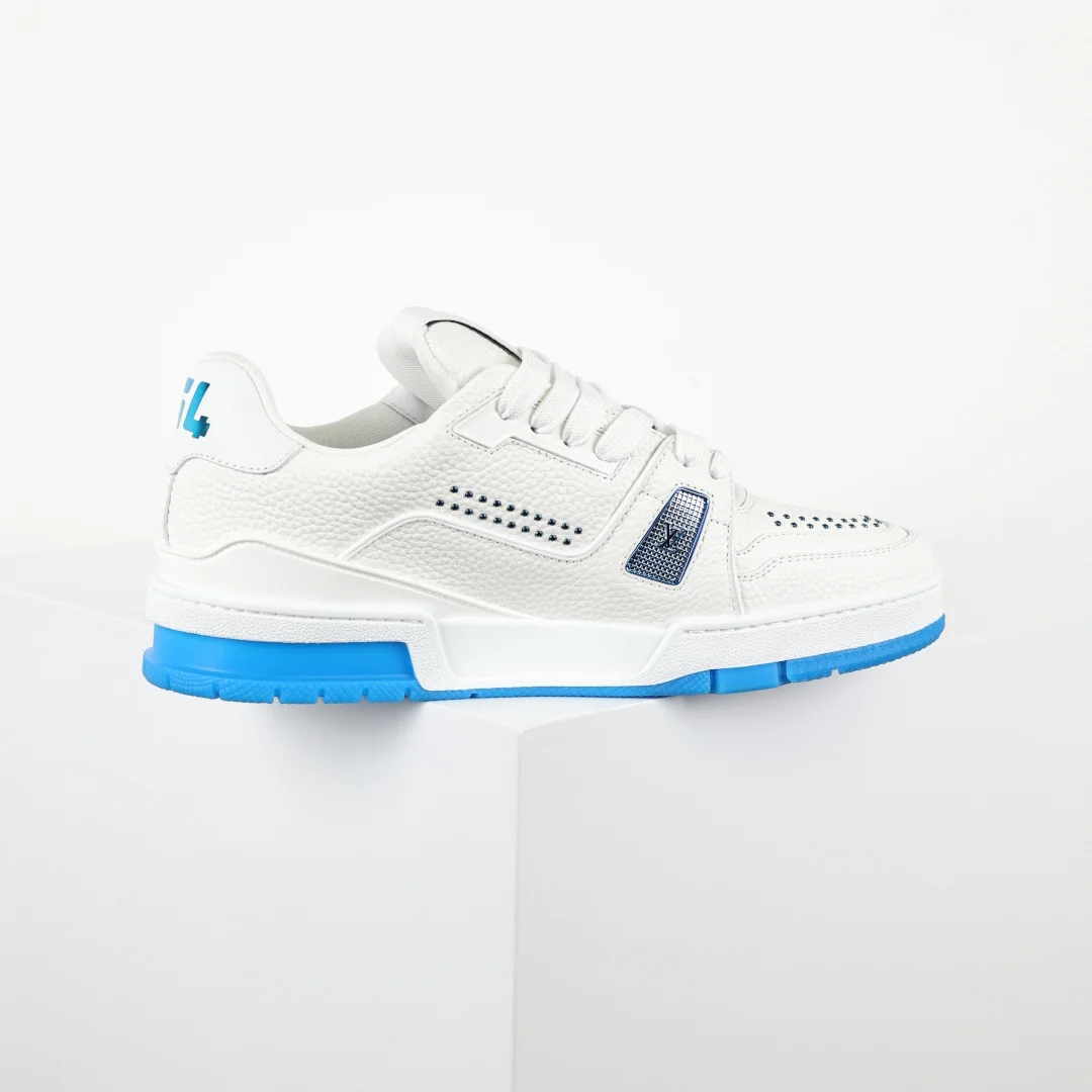 Lv Trainer X1 Max Version High Luxury Classic Peak White Blue Rivets