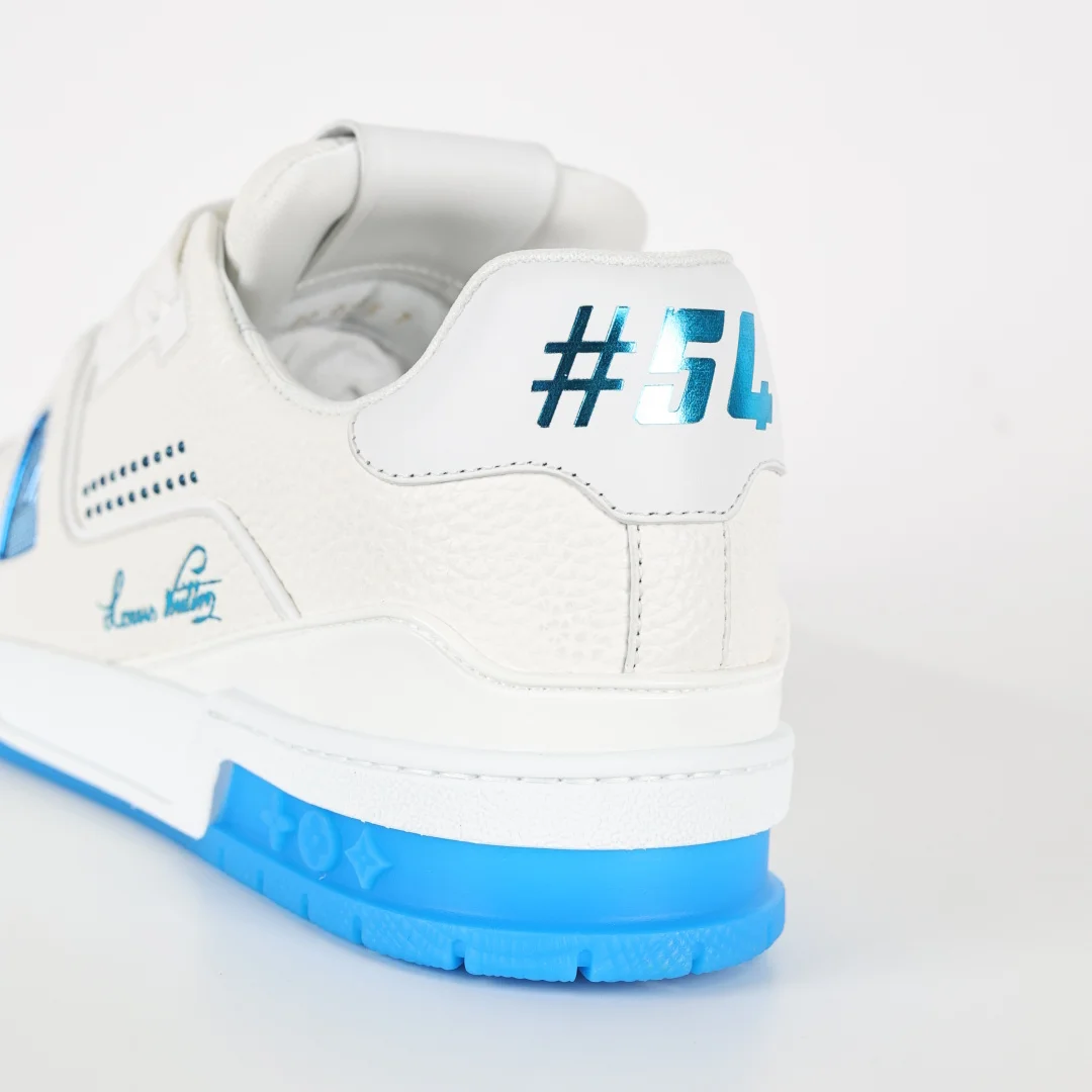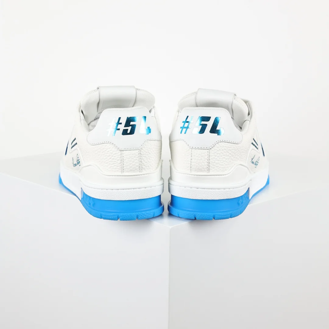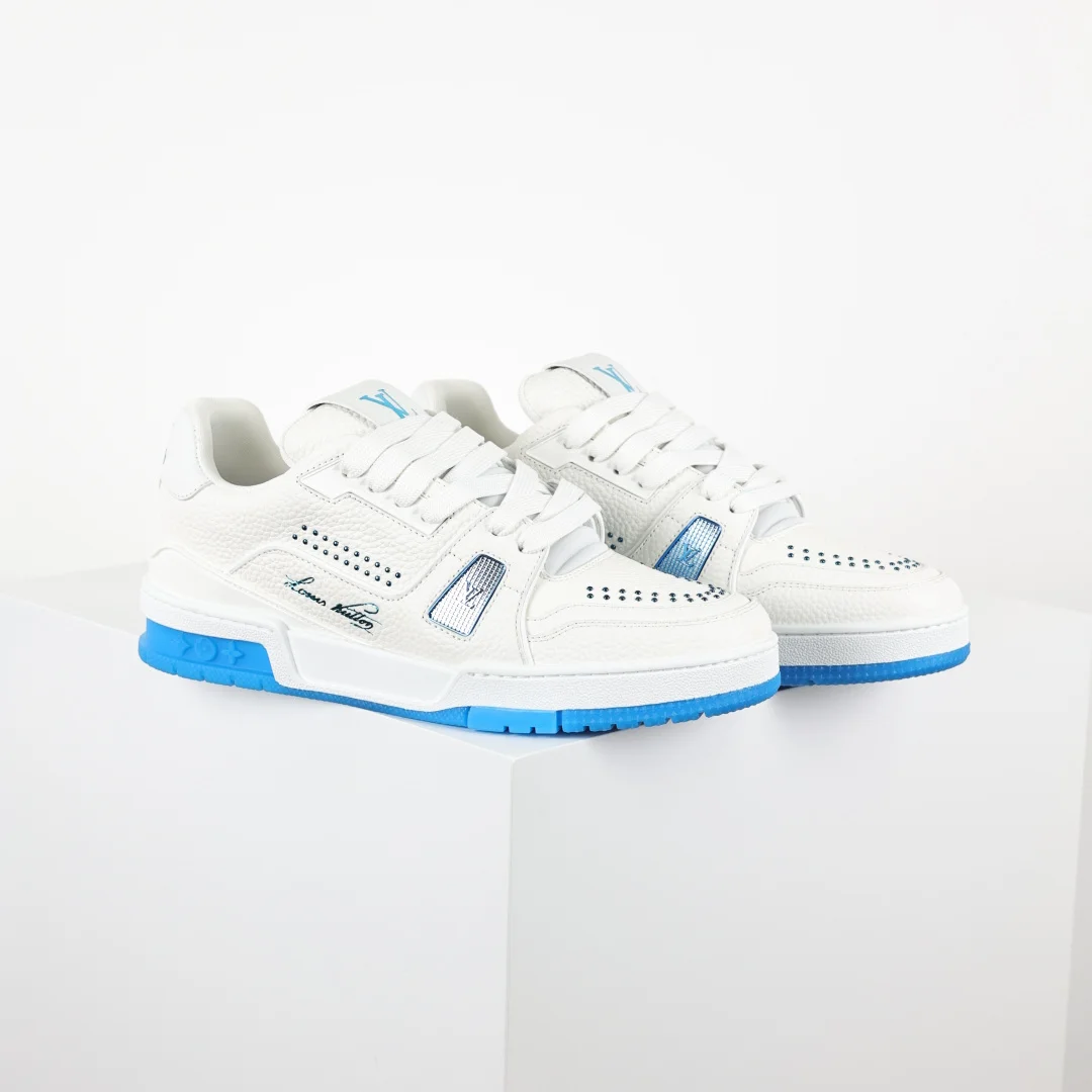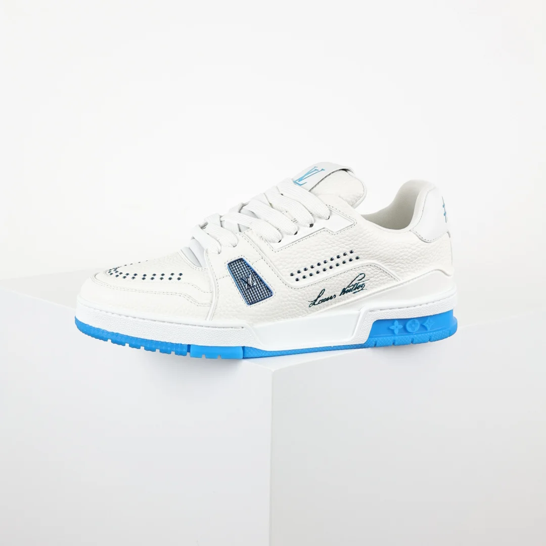 Lv Trainer X1 Max Version High Luxury Classic Peak White Blue Rivets