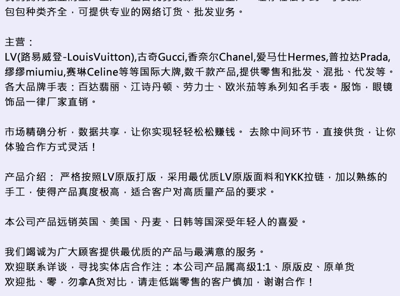 欢迎联系详谈,寻找实体店合作注:本公司产品属高级1:1、原版皮、原单货
